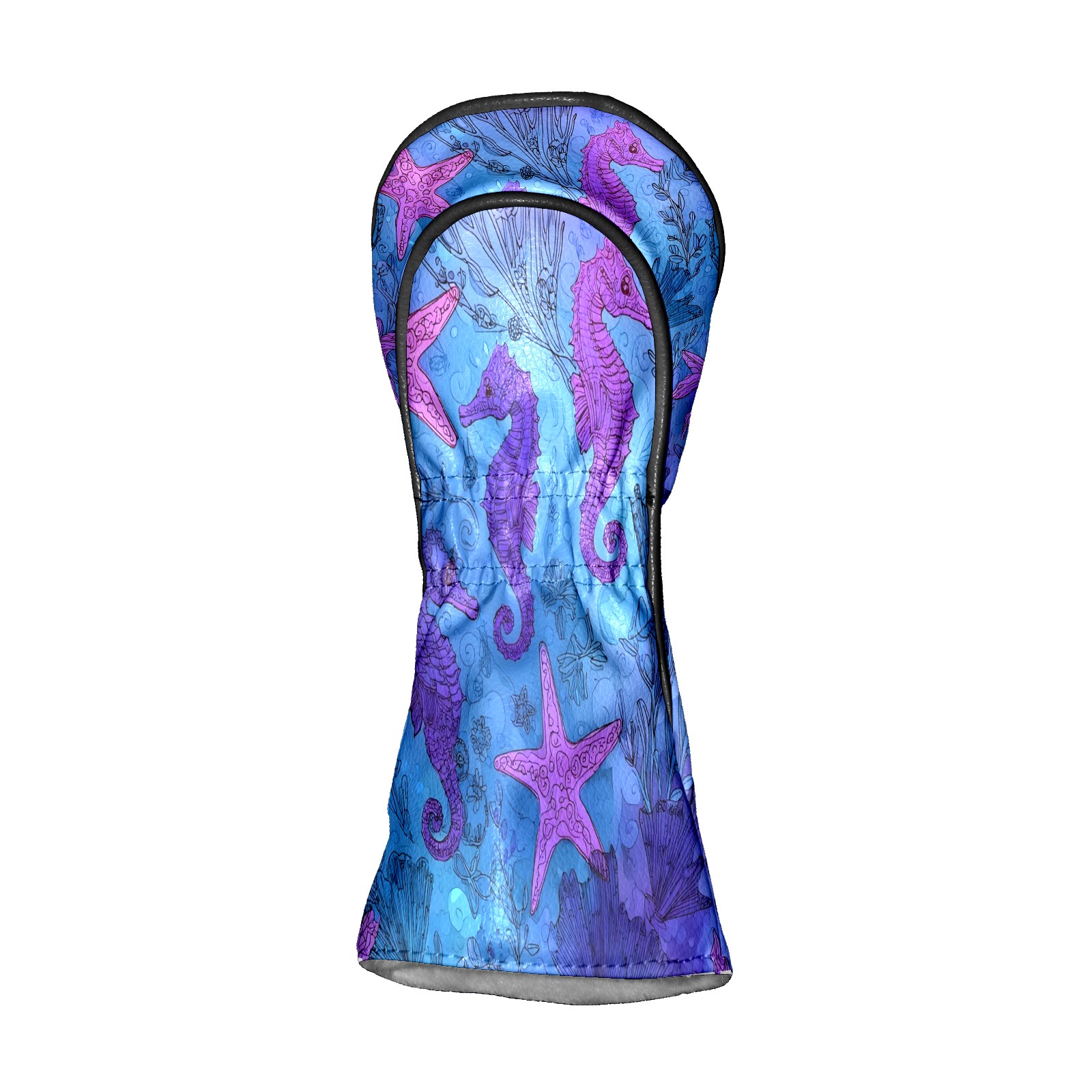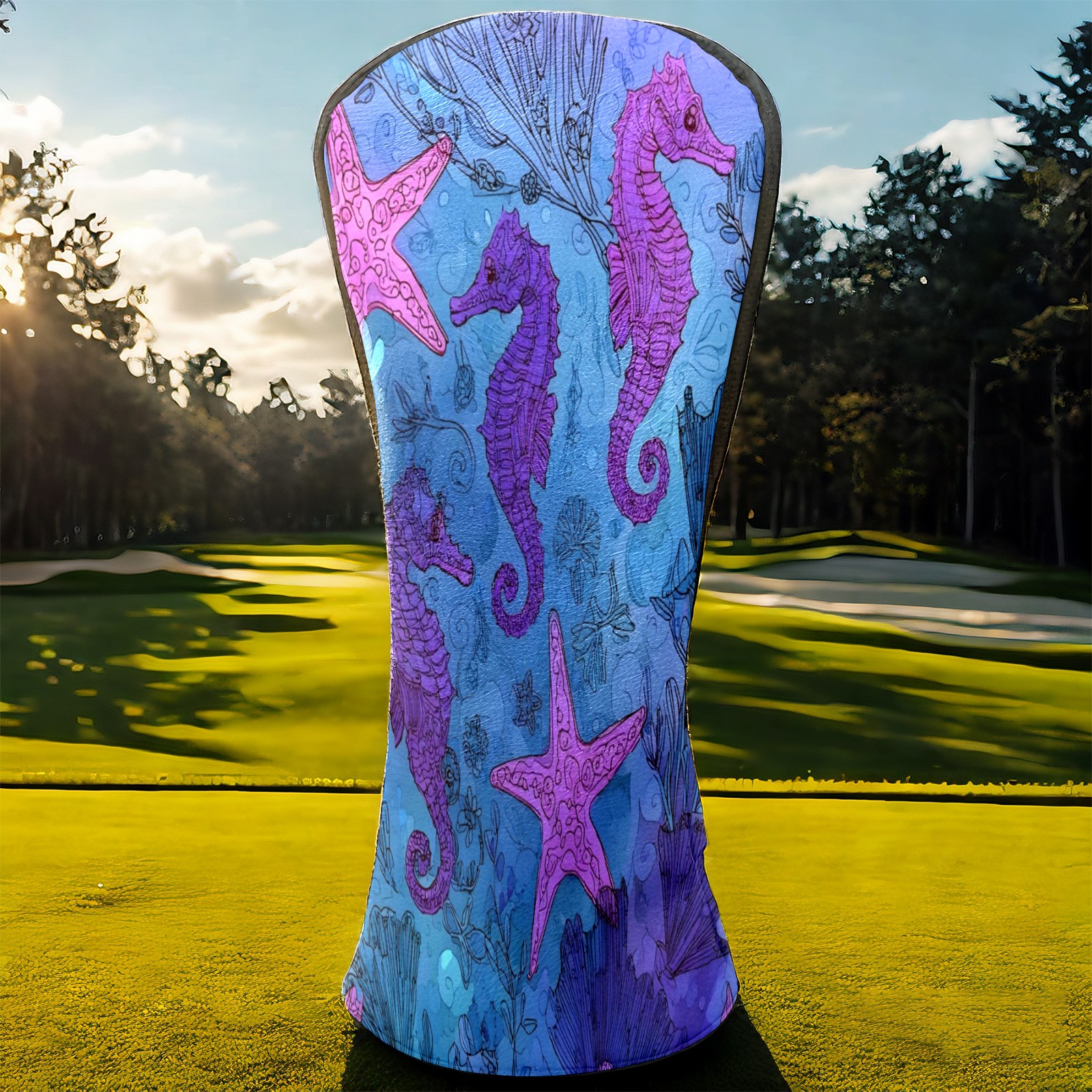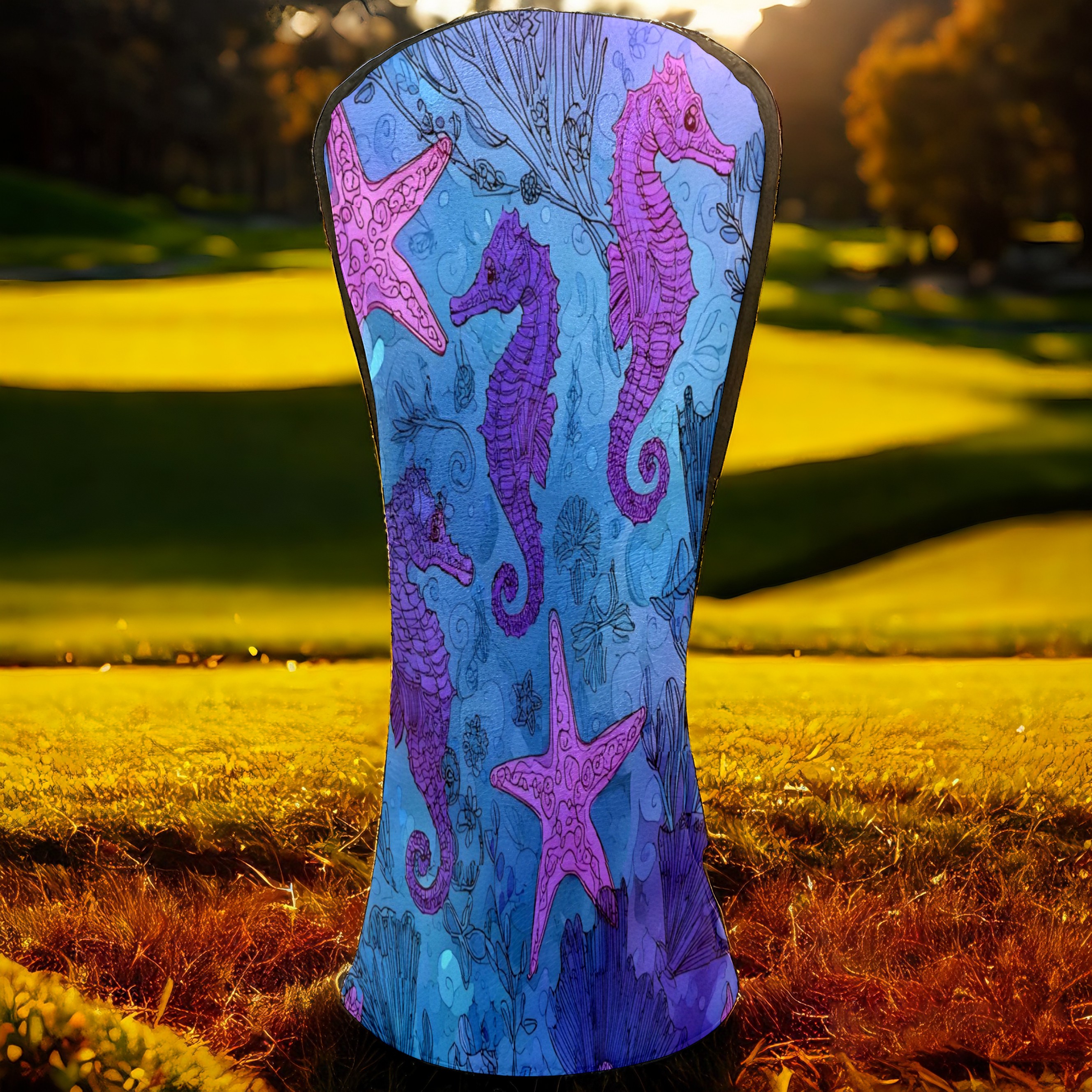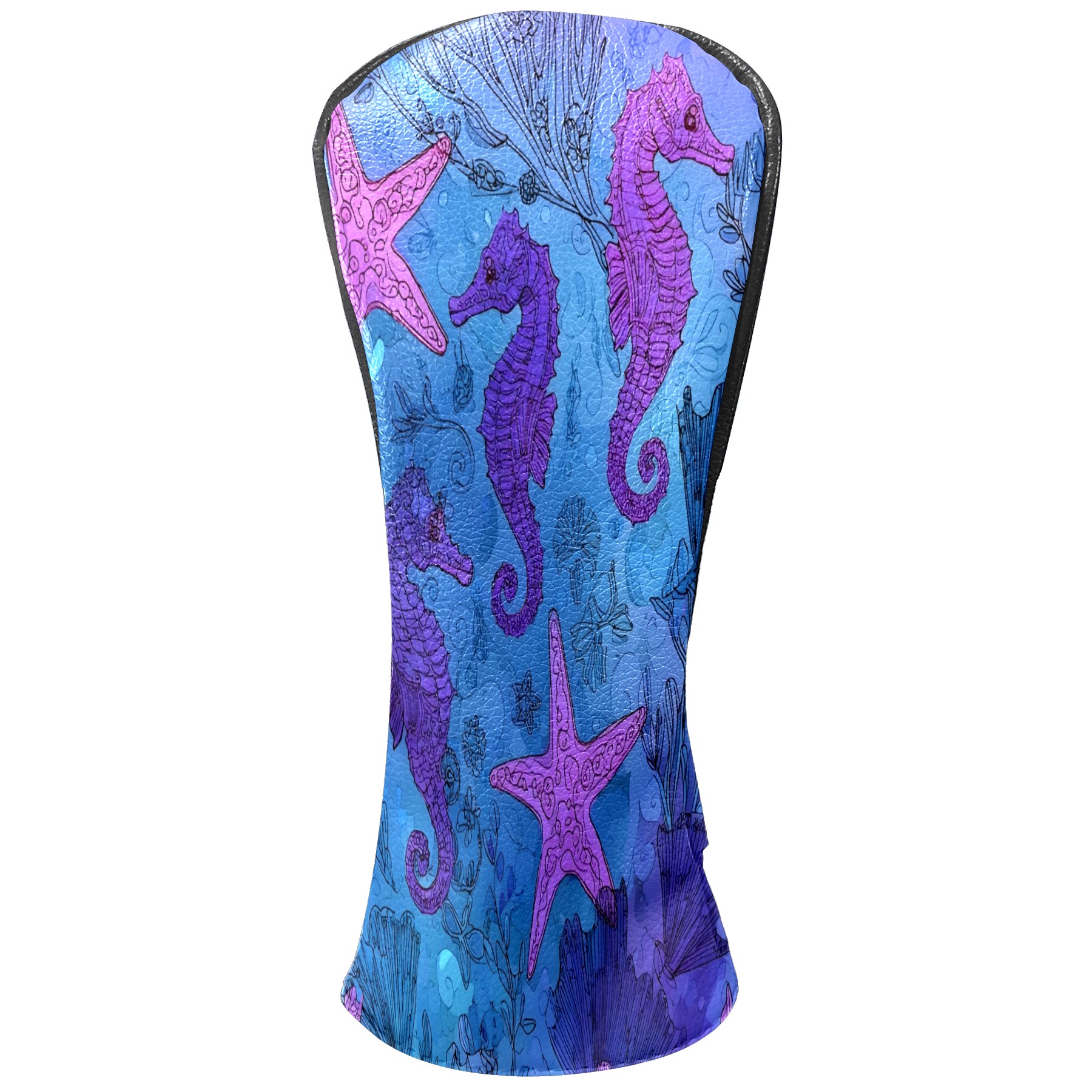 Golf Club Head Covers Blue Purple Starfish Seahorses Design for Driver & Hybrid, Waterproof PU Leather with Plush Velvet Lining, Scratch Protection & Secure Fit, Ideal Golf Gift for Men Women