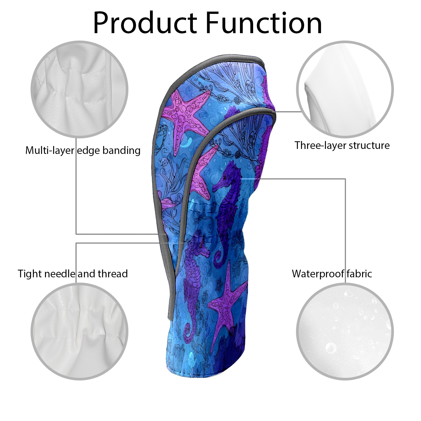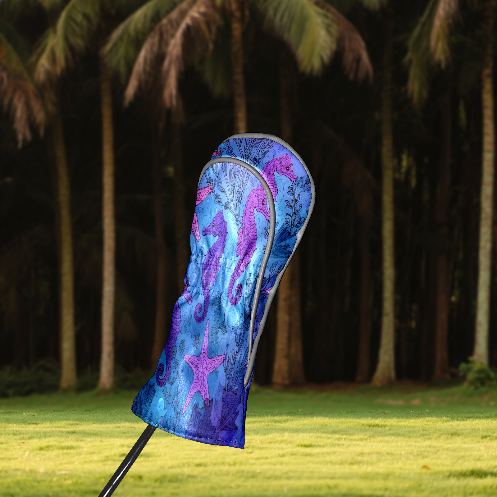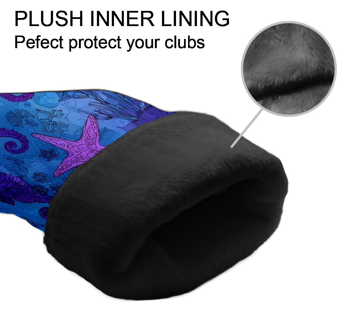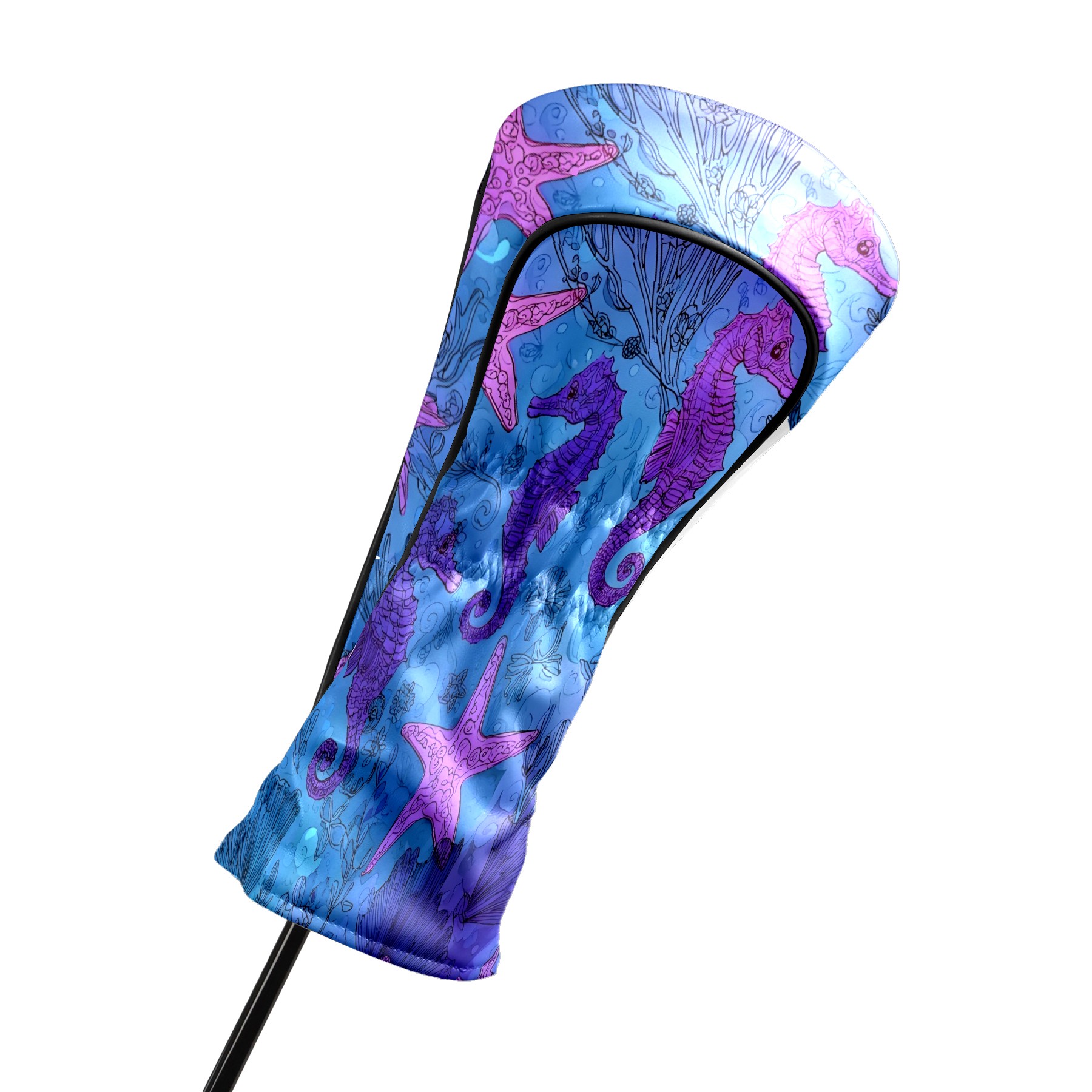 Golf Club Head Covers Blue Purple Starfish Seahorses Design for Driver & Hybrid, Waterproof PU Leather with Plush Velvet Lining, Scratch Protection & Secure Fit, Ideal Golf Gift for Men Women