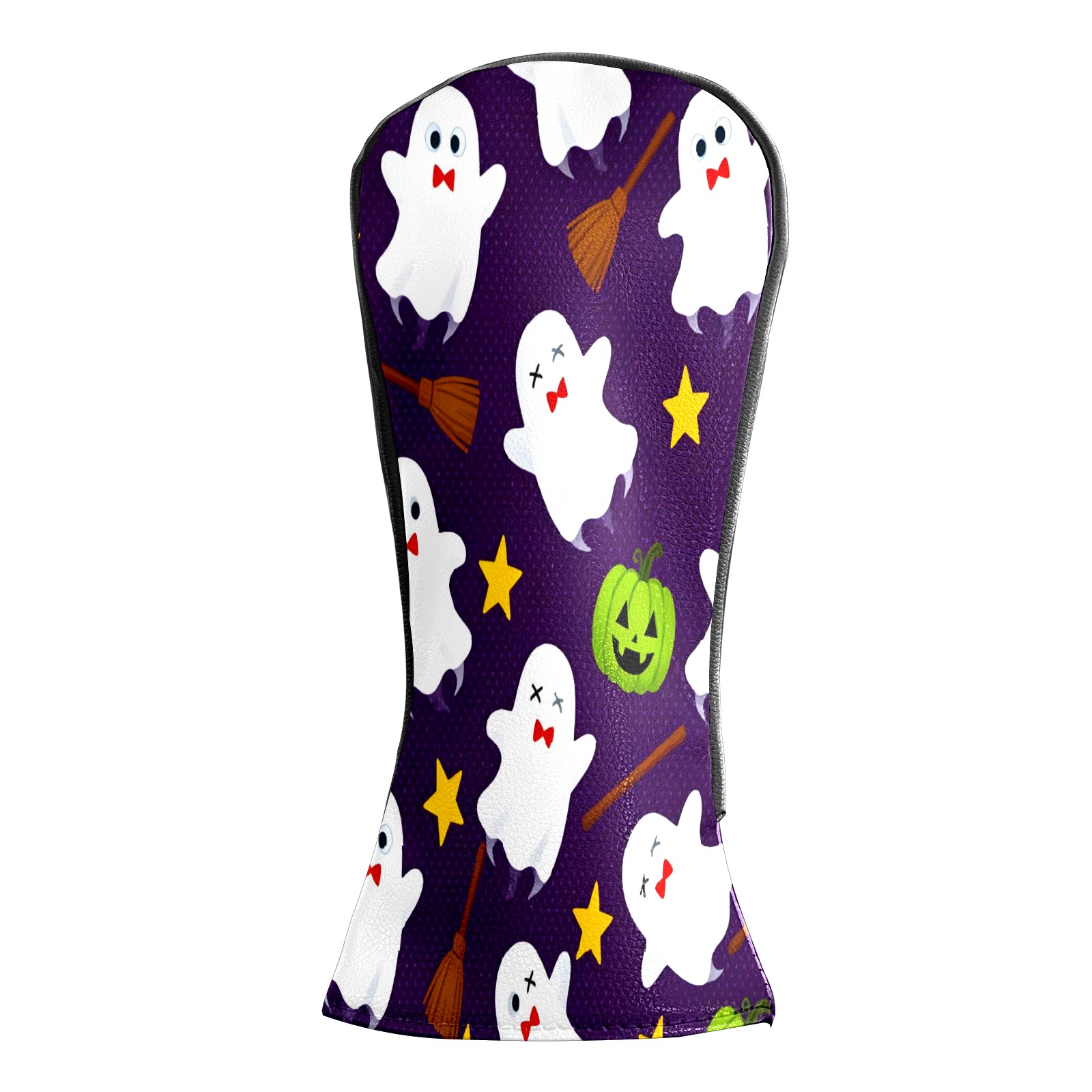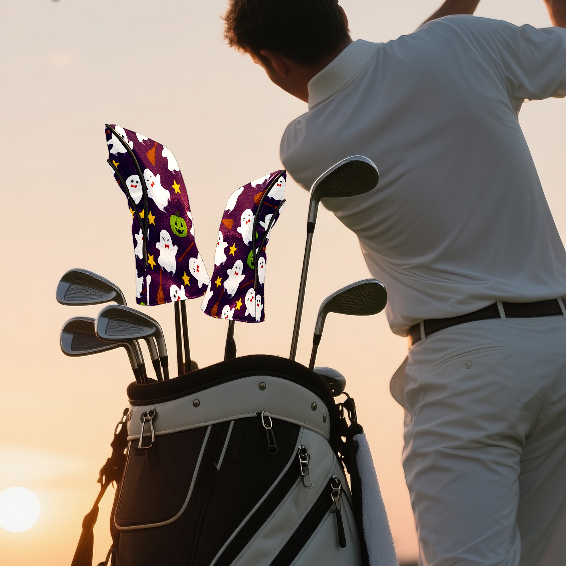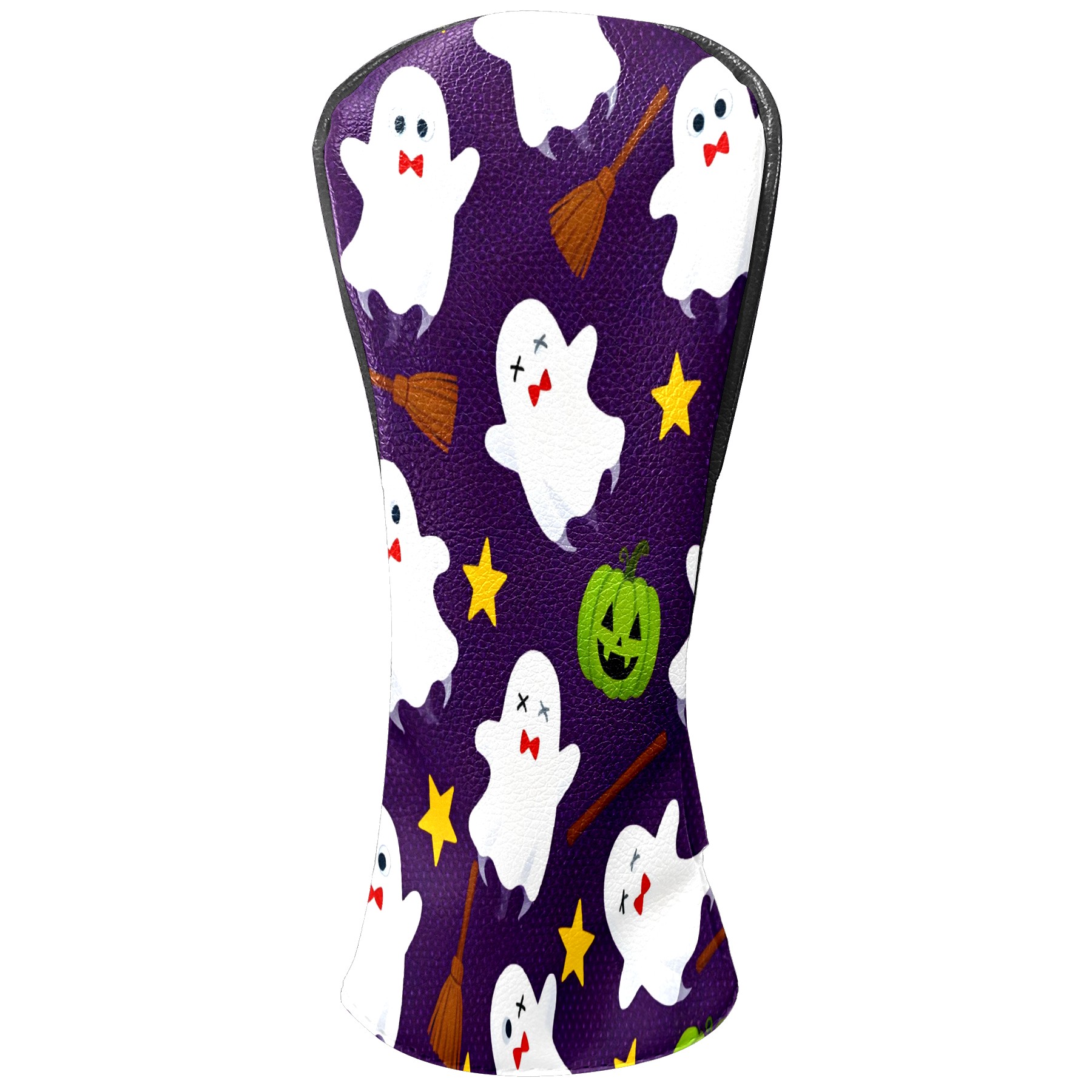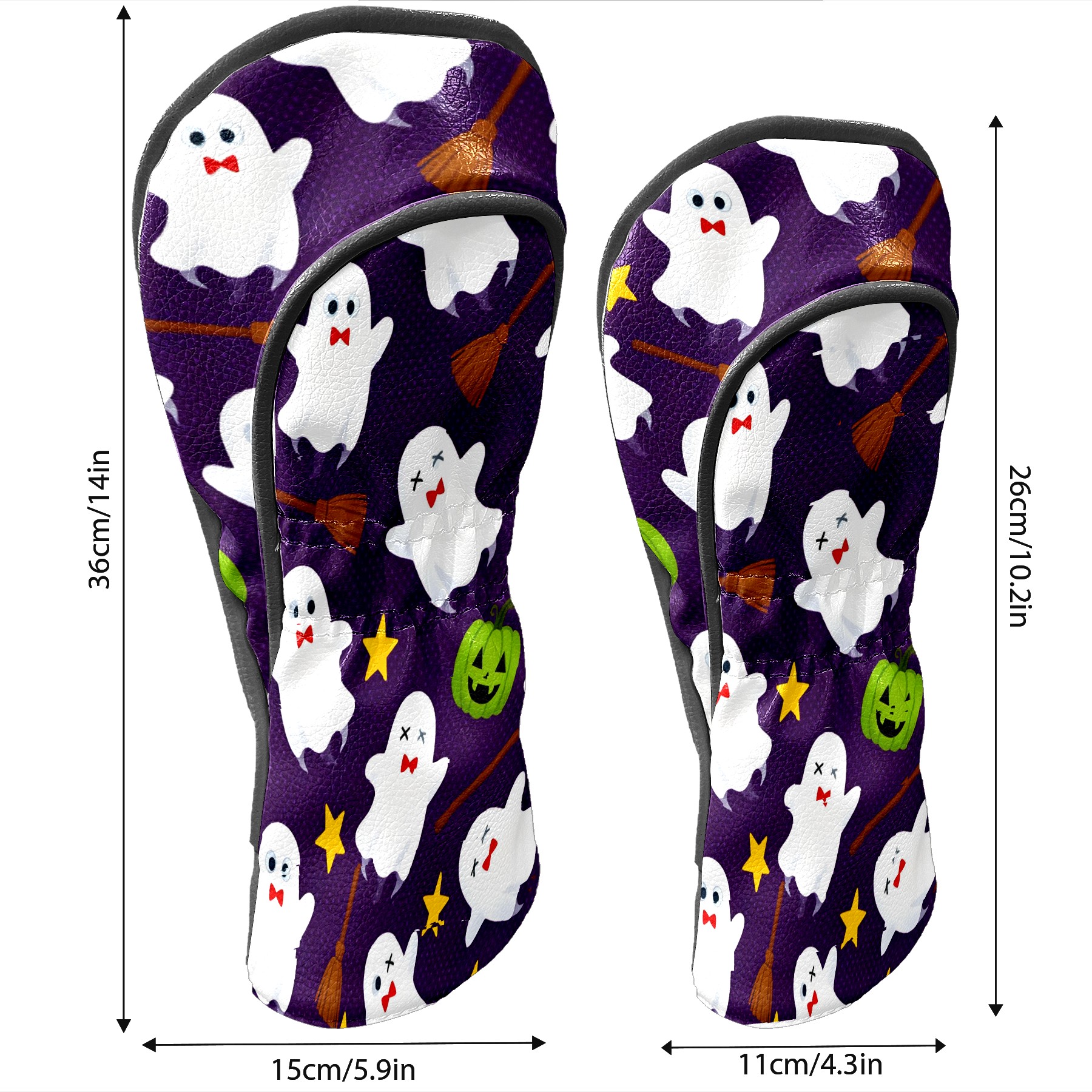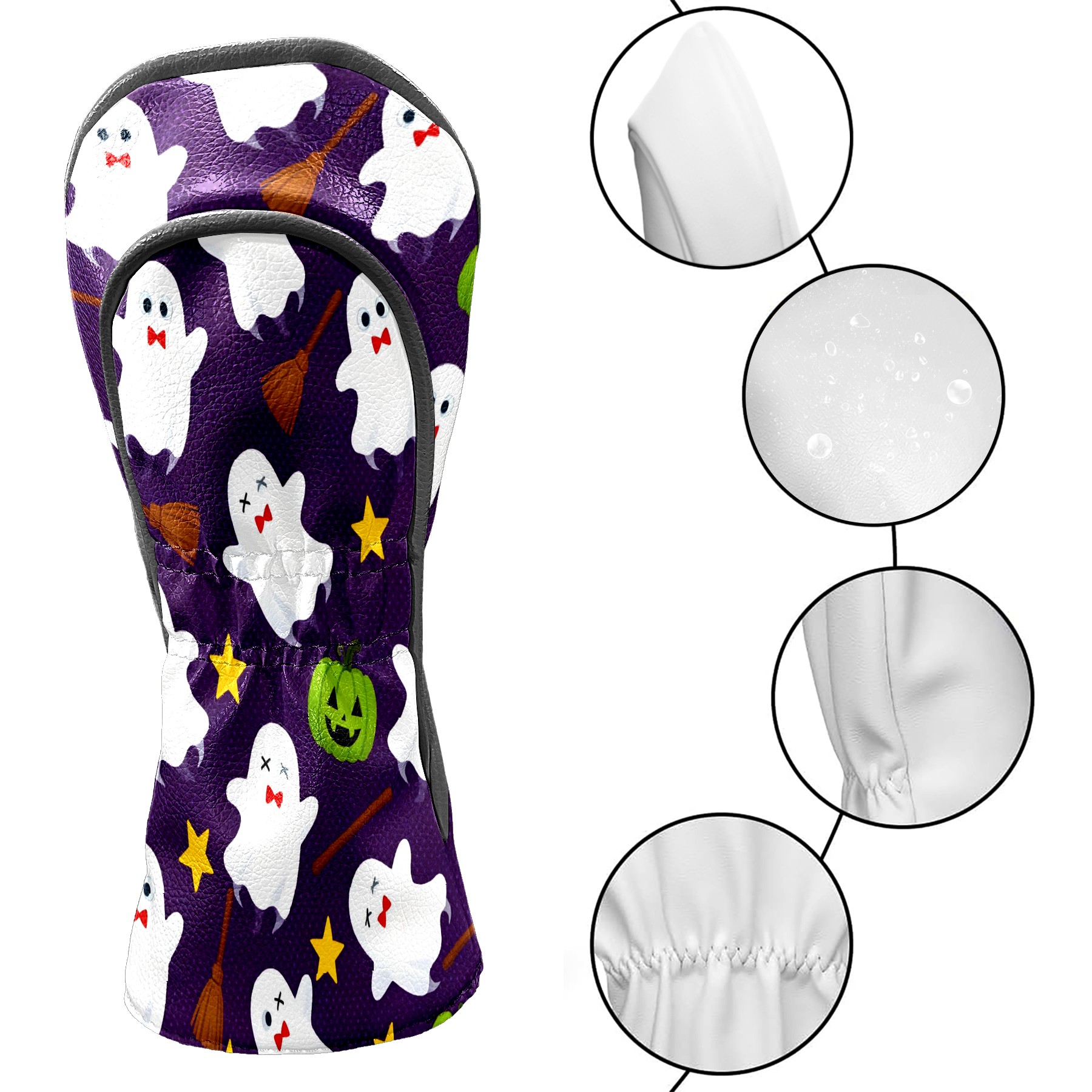 Golf Club Head Covers Purple Halloween Ghosts Stars Design for Driver & Hybrid, Waterproof PU Leather with Plush Velvet Lining, Scratch Protection & Secure Fit, Ideal Golf Gift for Men Women