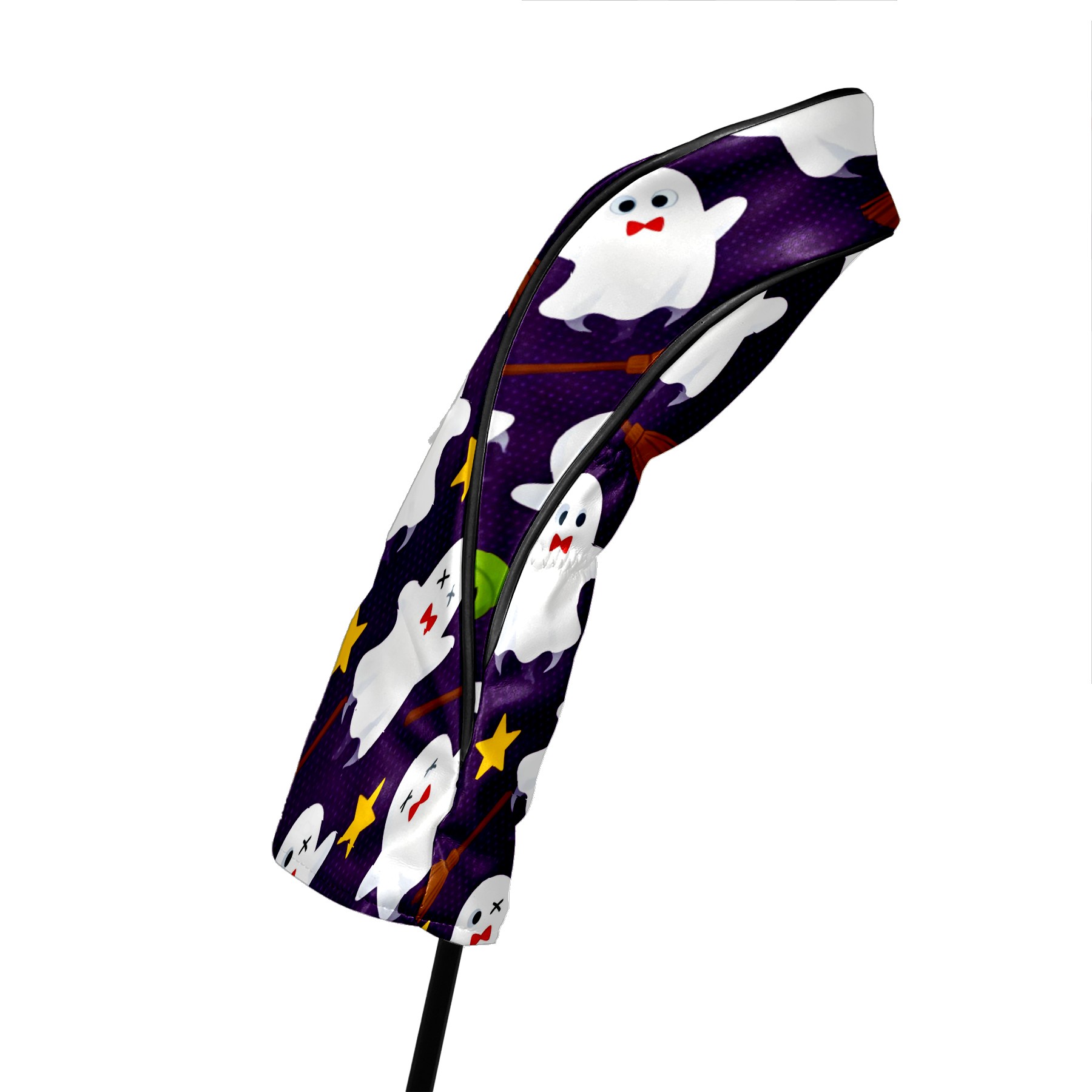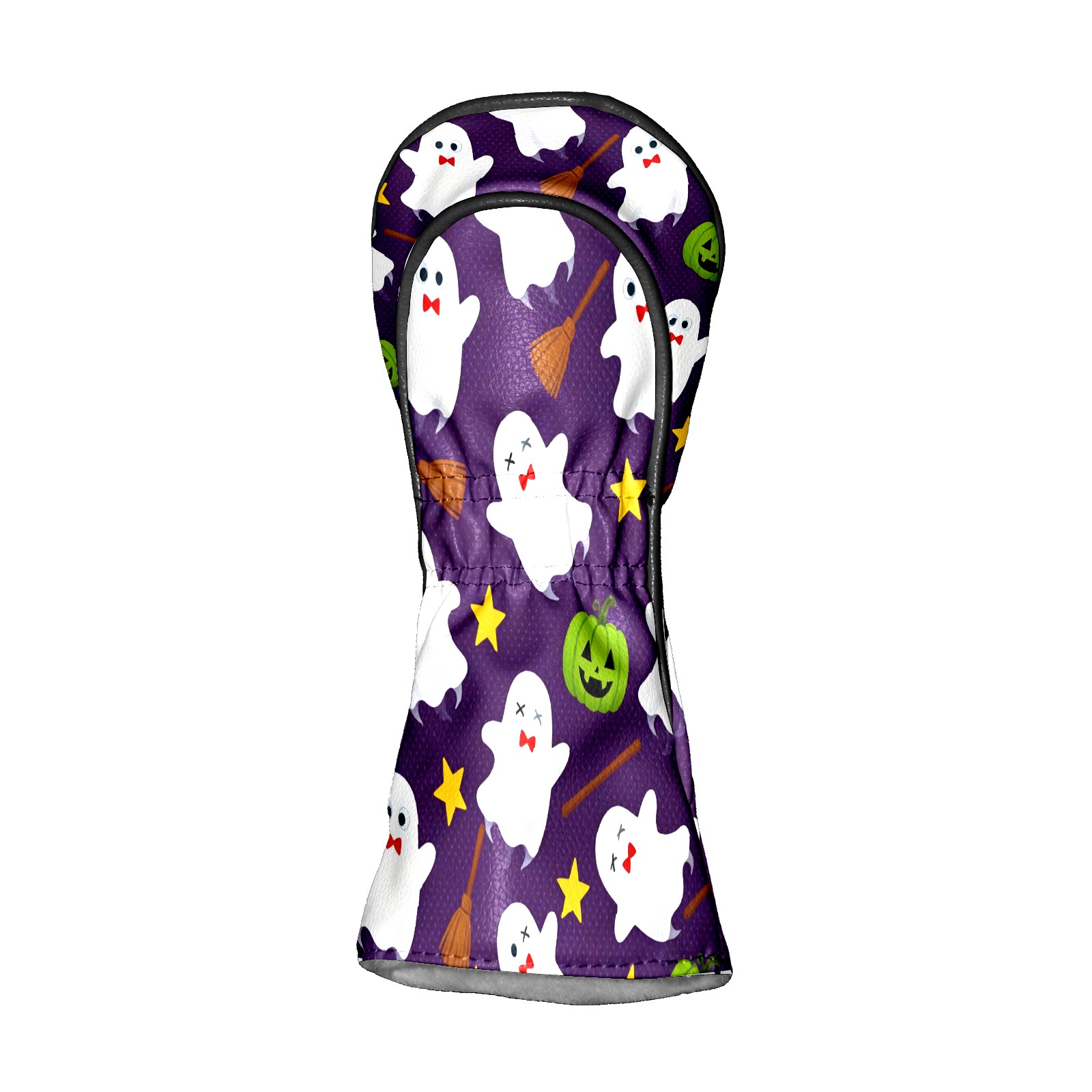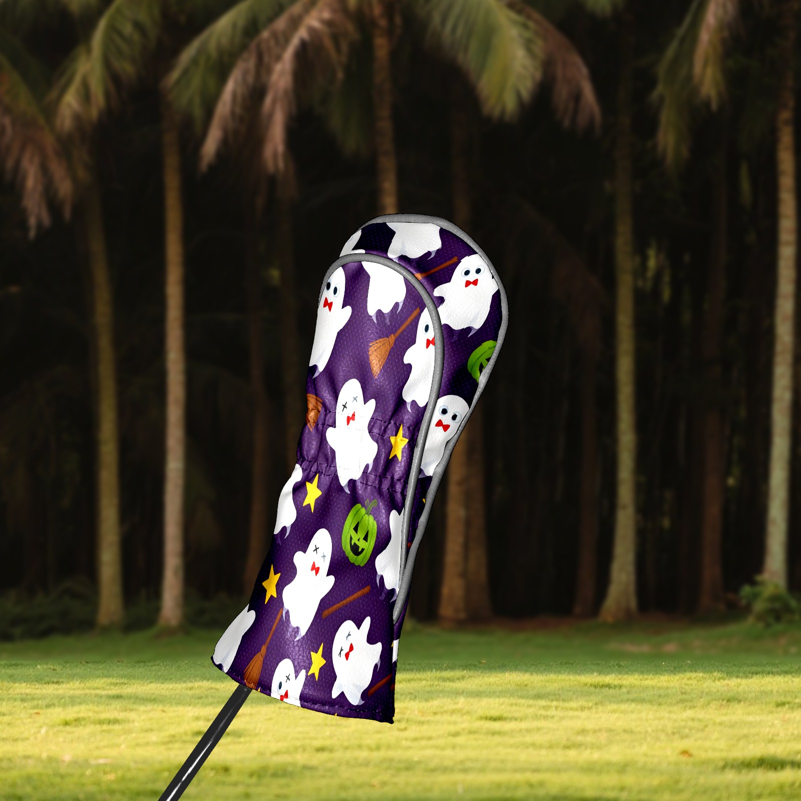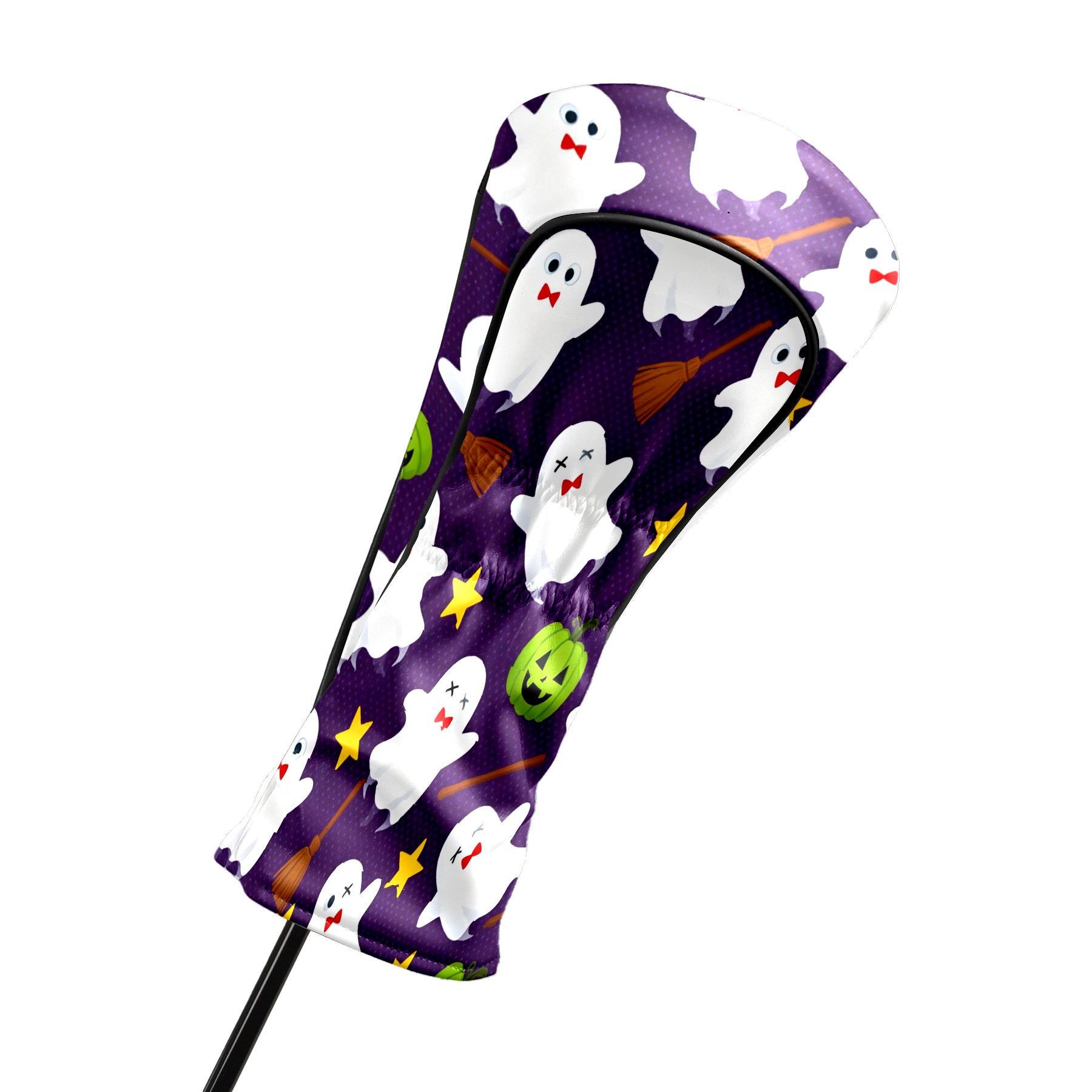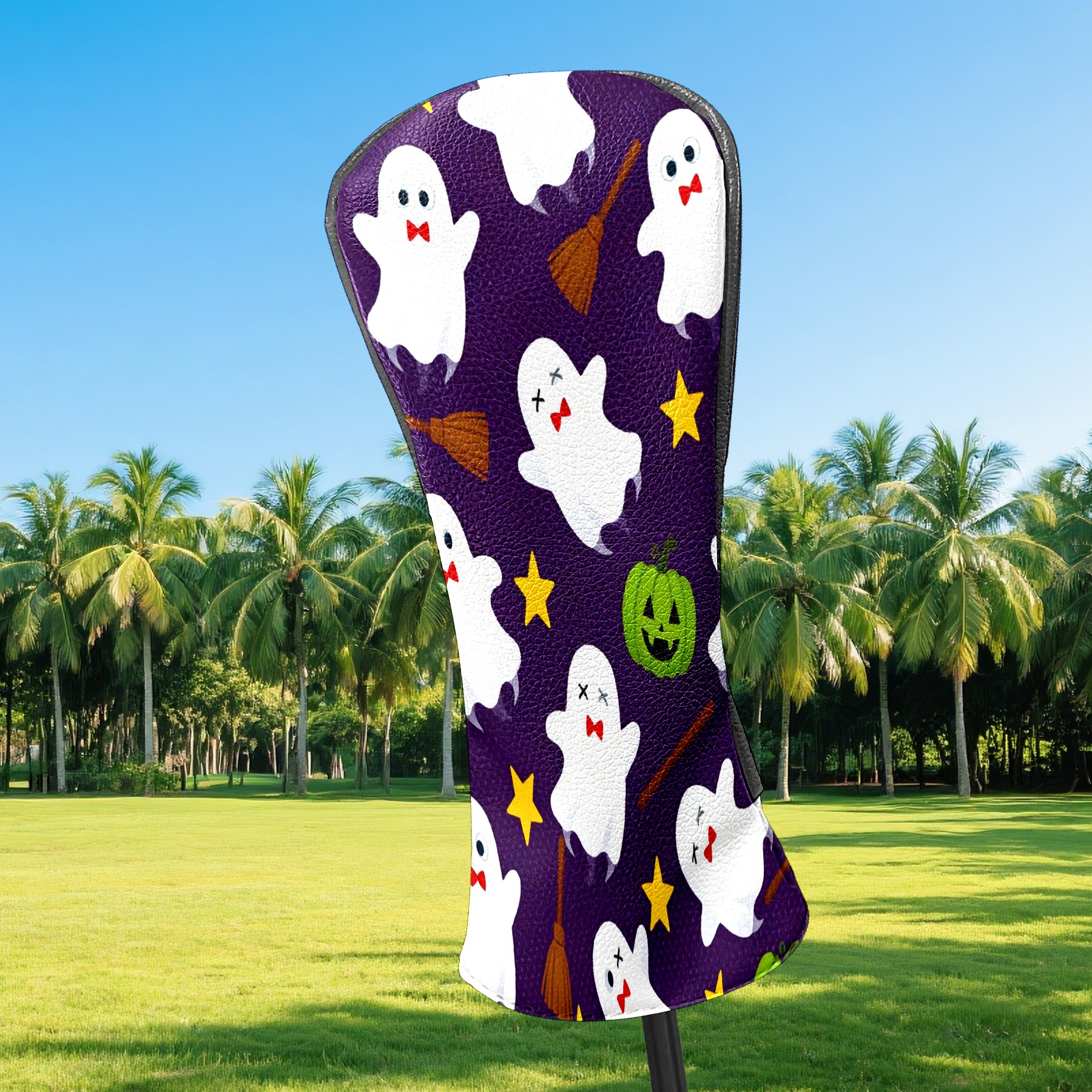 Golf Club Head Covers Purple Halloween Ghosts Stars Design for Driver & Hybrid, Waterproof PU Leather with Plush Velvet Lining, Scratch Protection & Secure Fit, Ideal Golf Gift for Men Women