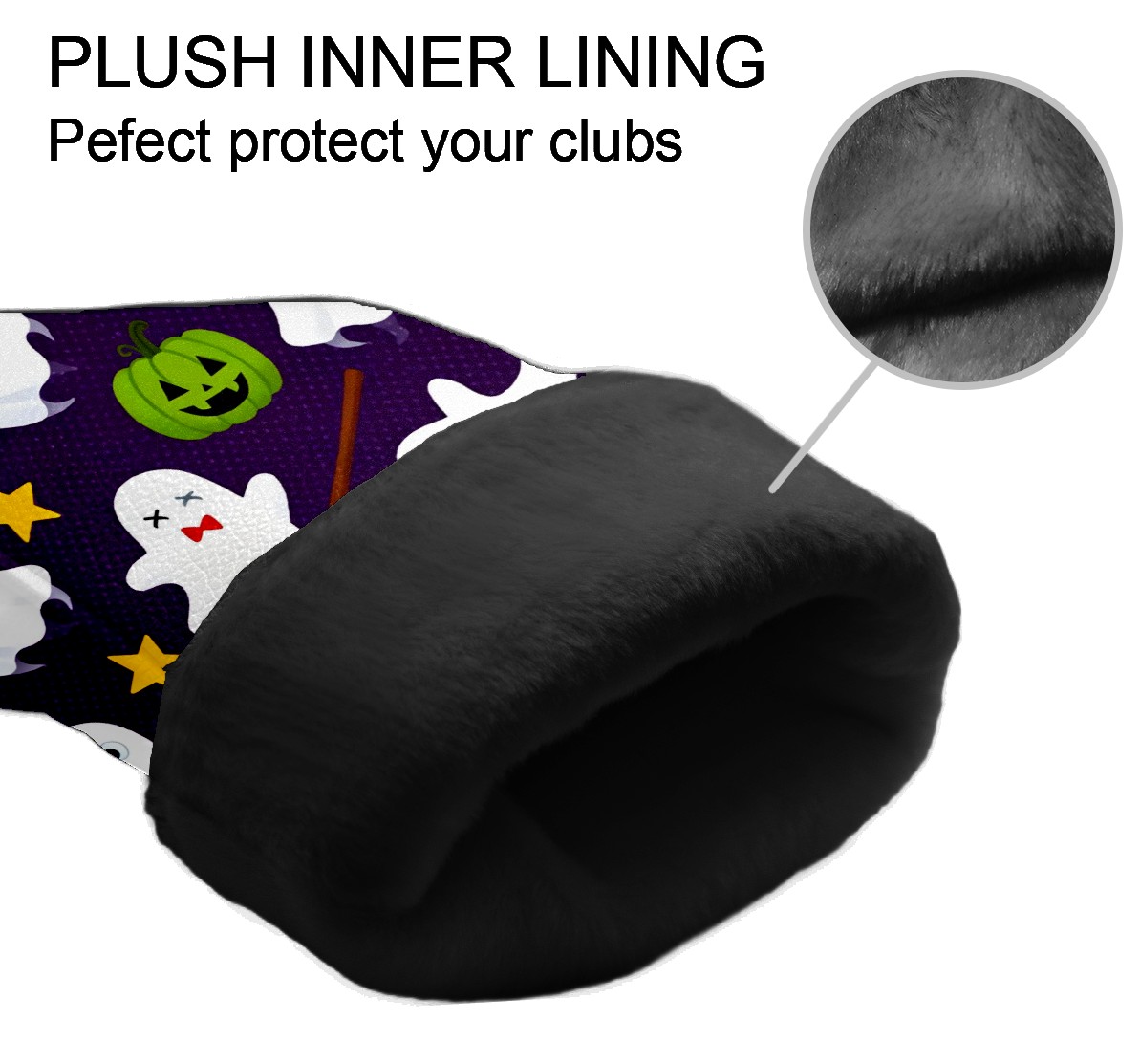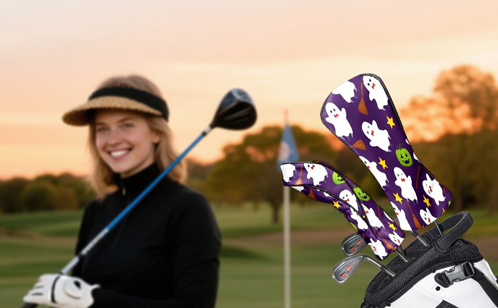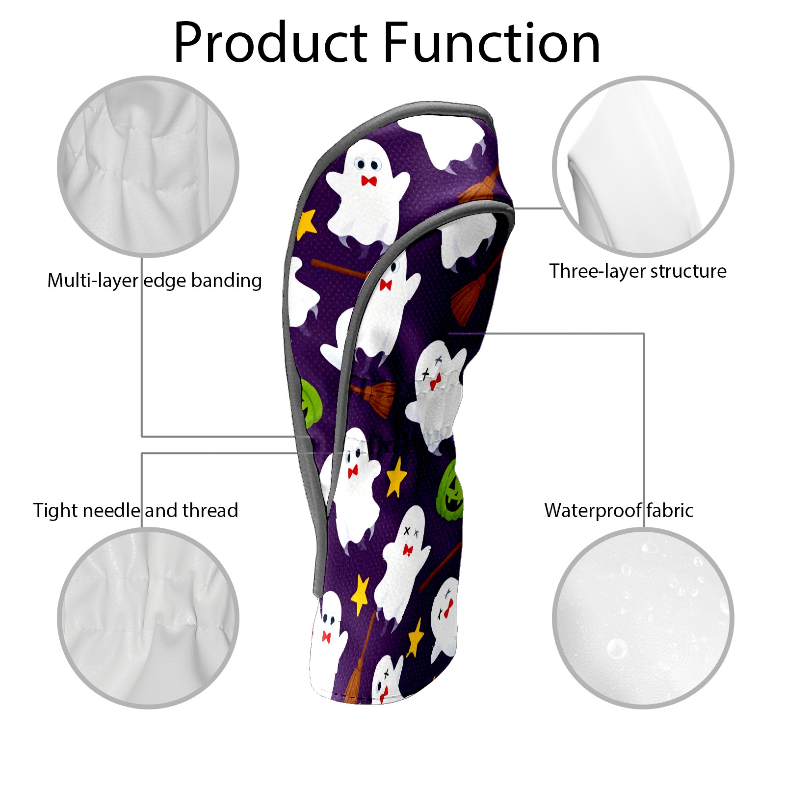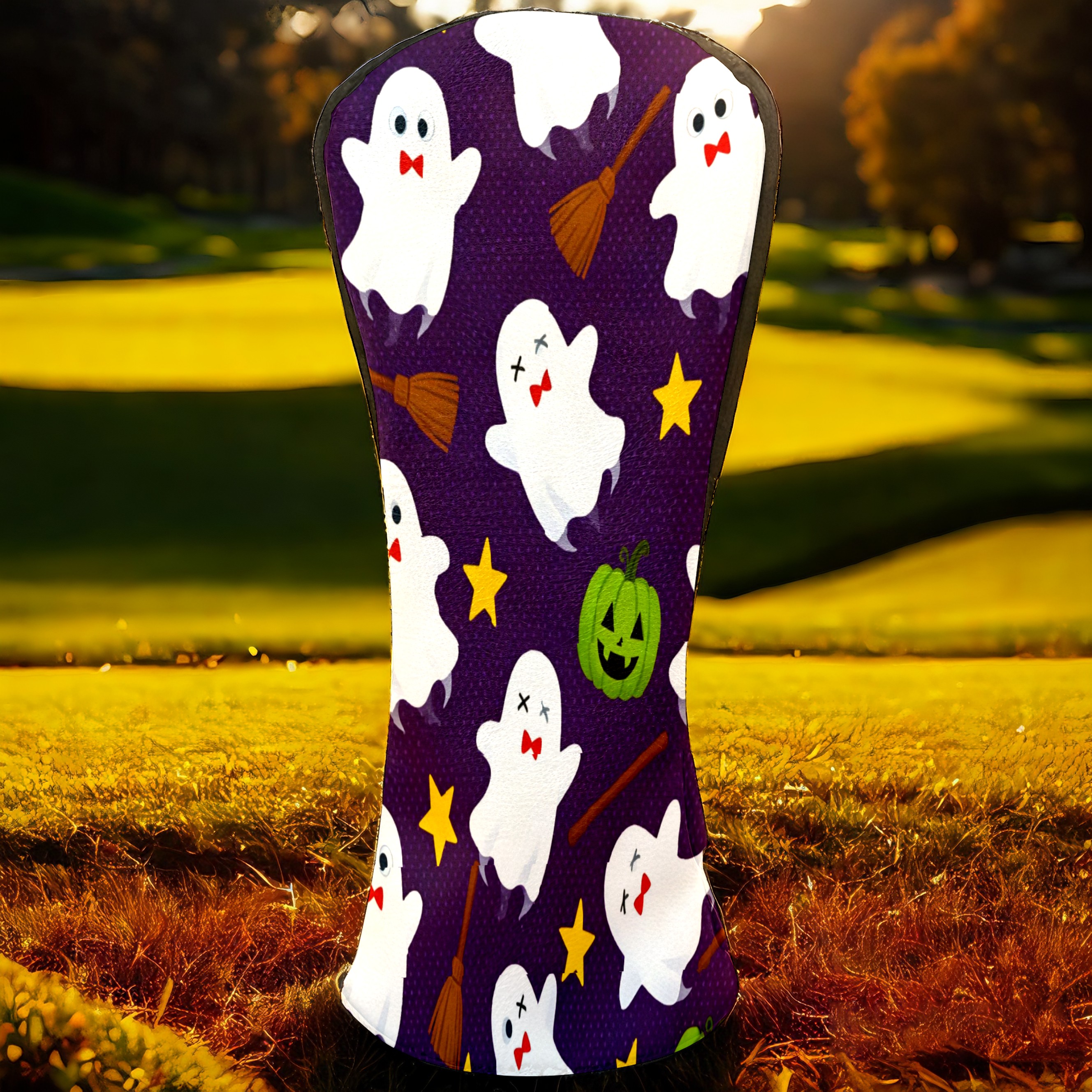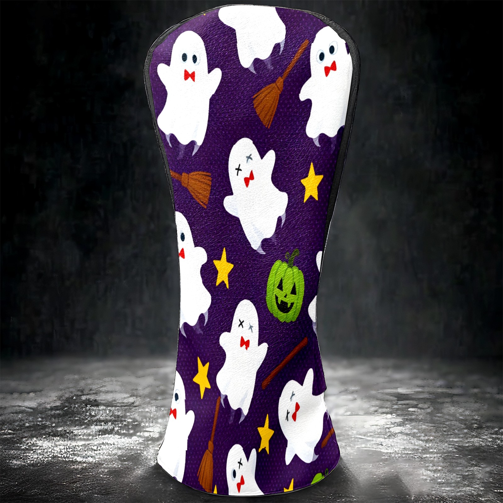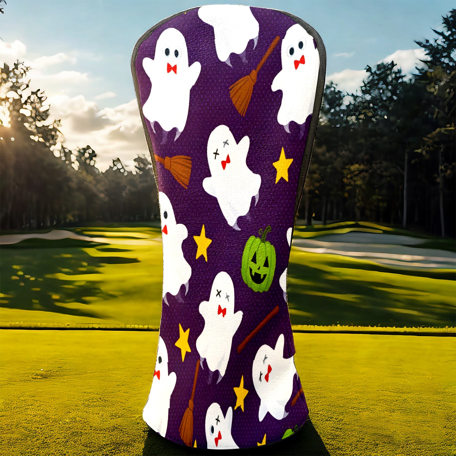 Golf Club Head Covers Purple Halloween Ghosts Stars Design for Driver & Hybrid, Waterproof PU Leather with Plush Velvet Lining, Scratch Protection & Secure Fit, Ideal Golf Gift for Men Women