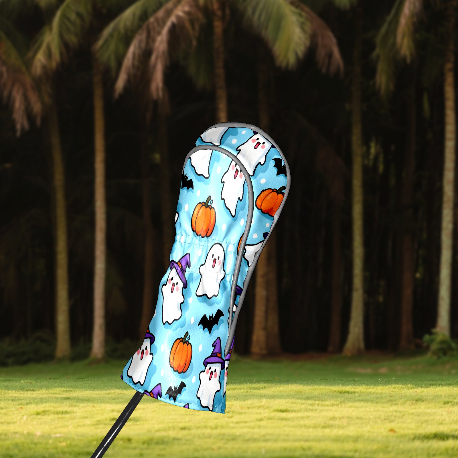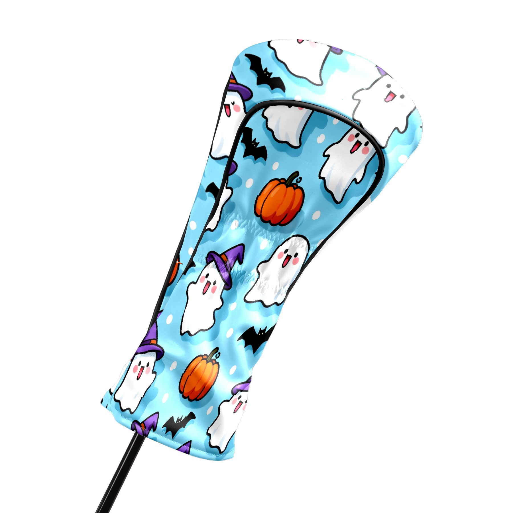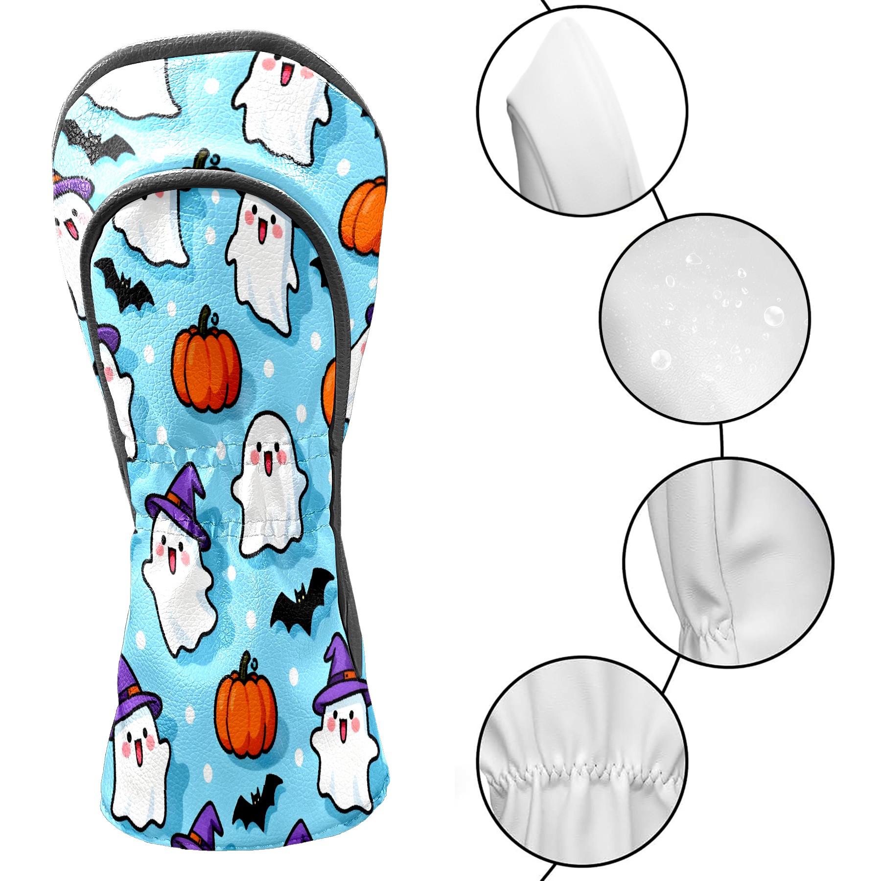 Golf Club Head Covers Light Blue Halloween Ghosts Pumpkins Design for Driver & Hybrid, Waterproof PU Leather with Plush Velvet Lining, Scratch Protection & Secure Fit, Ideal Golf Gift for Men Women