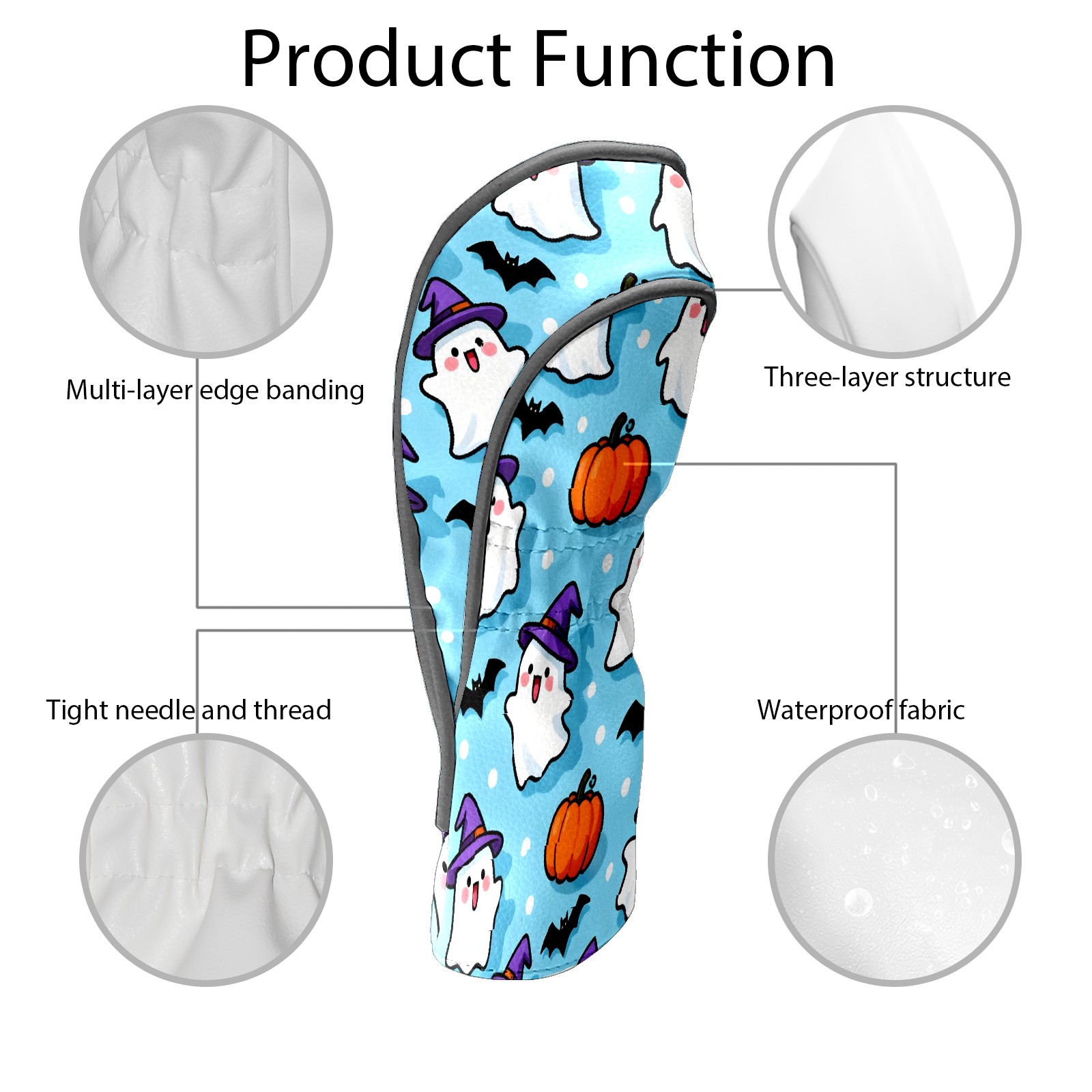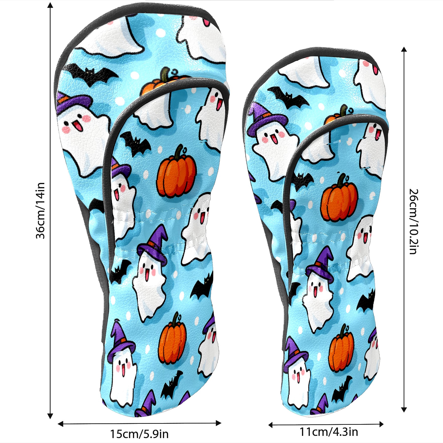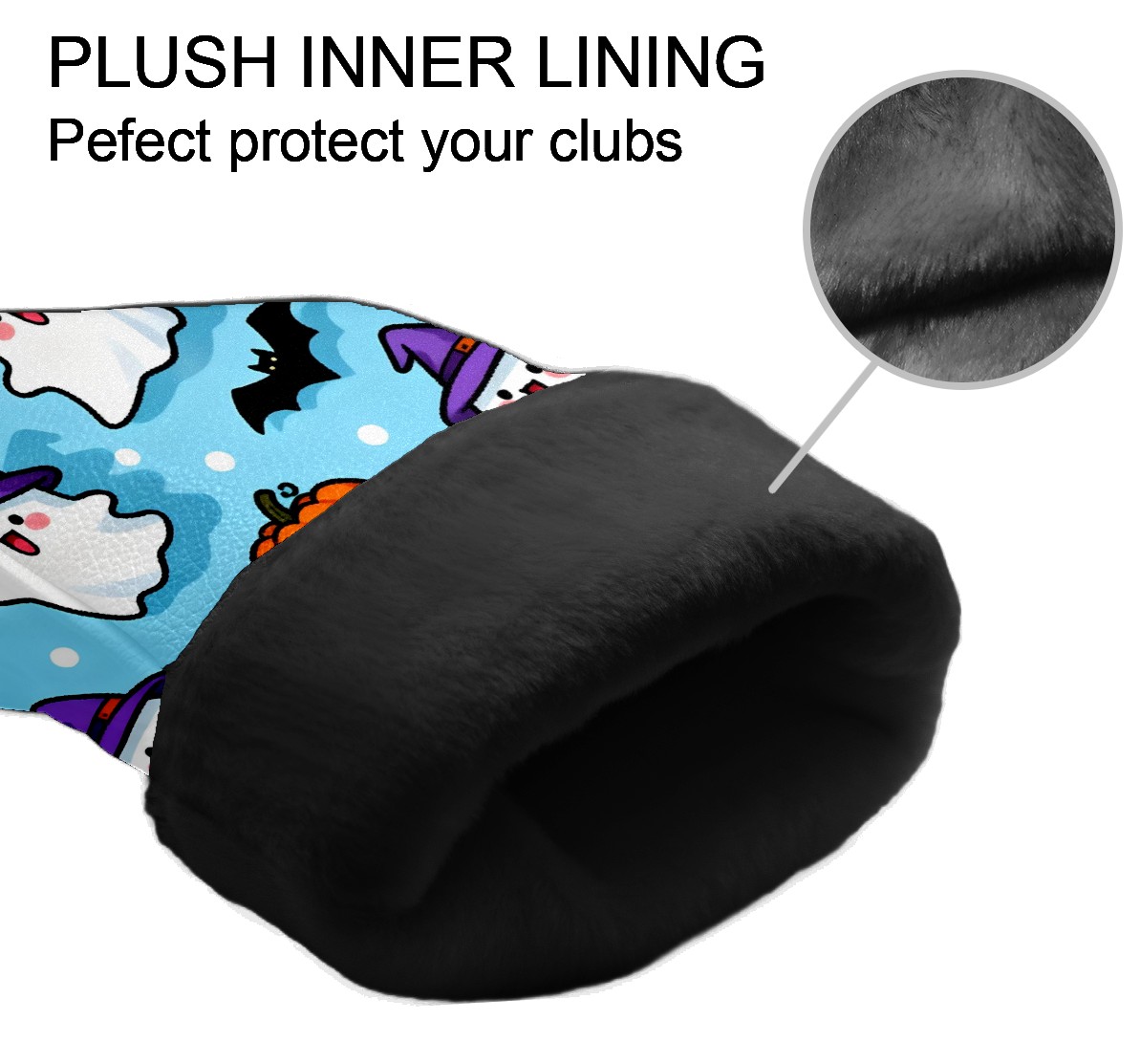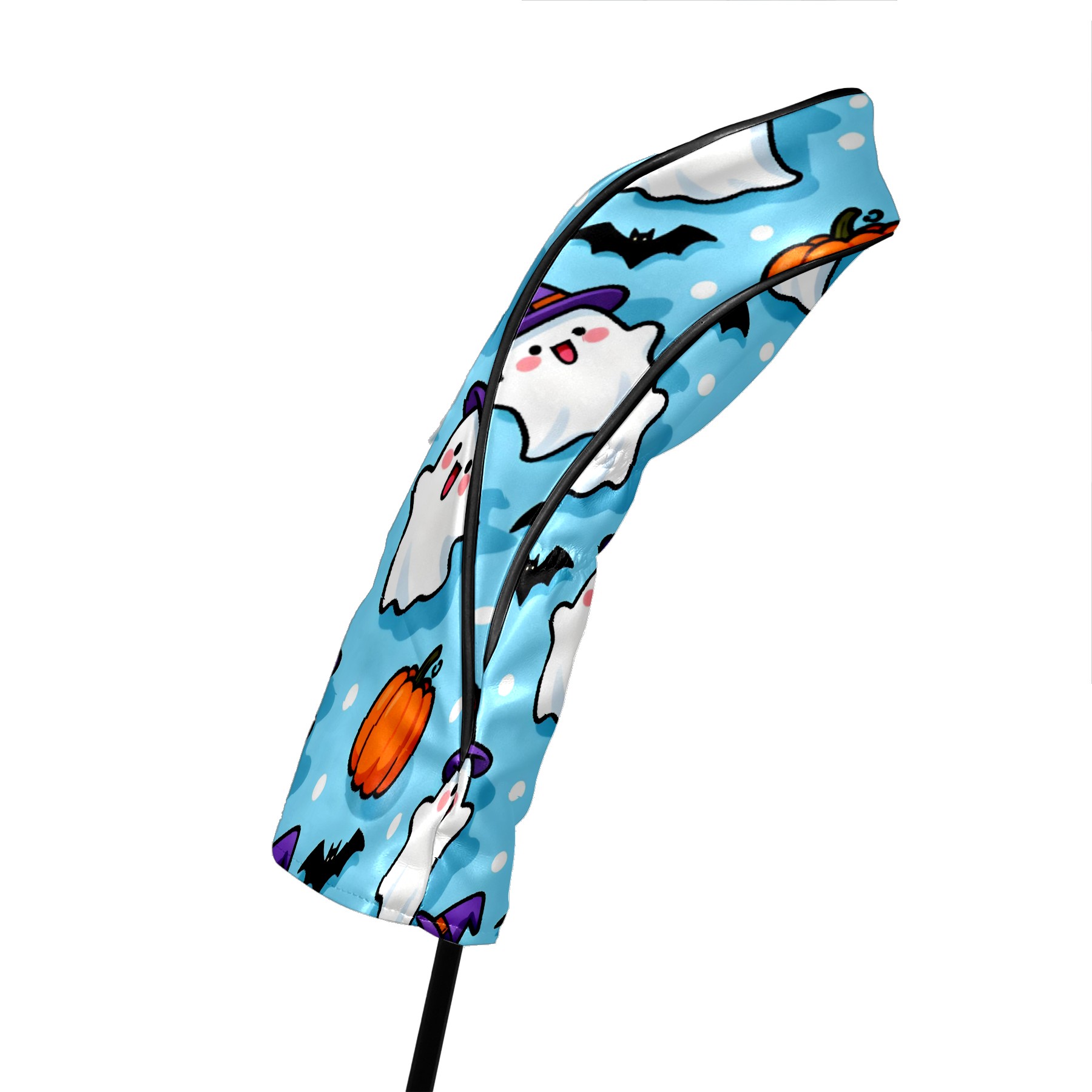 Golf Club Head Covers Light Blue Halloween Ghosts Pumpkins Design for Driver & Hybrid, Waterproof PU Leather with Plush Velvet Lining, Scratch Protection & Secure Fit, Ideal Golf Gift for Men Women