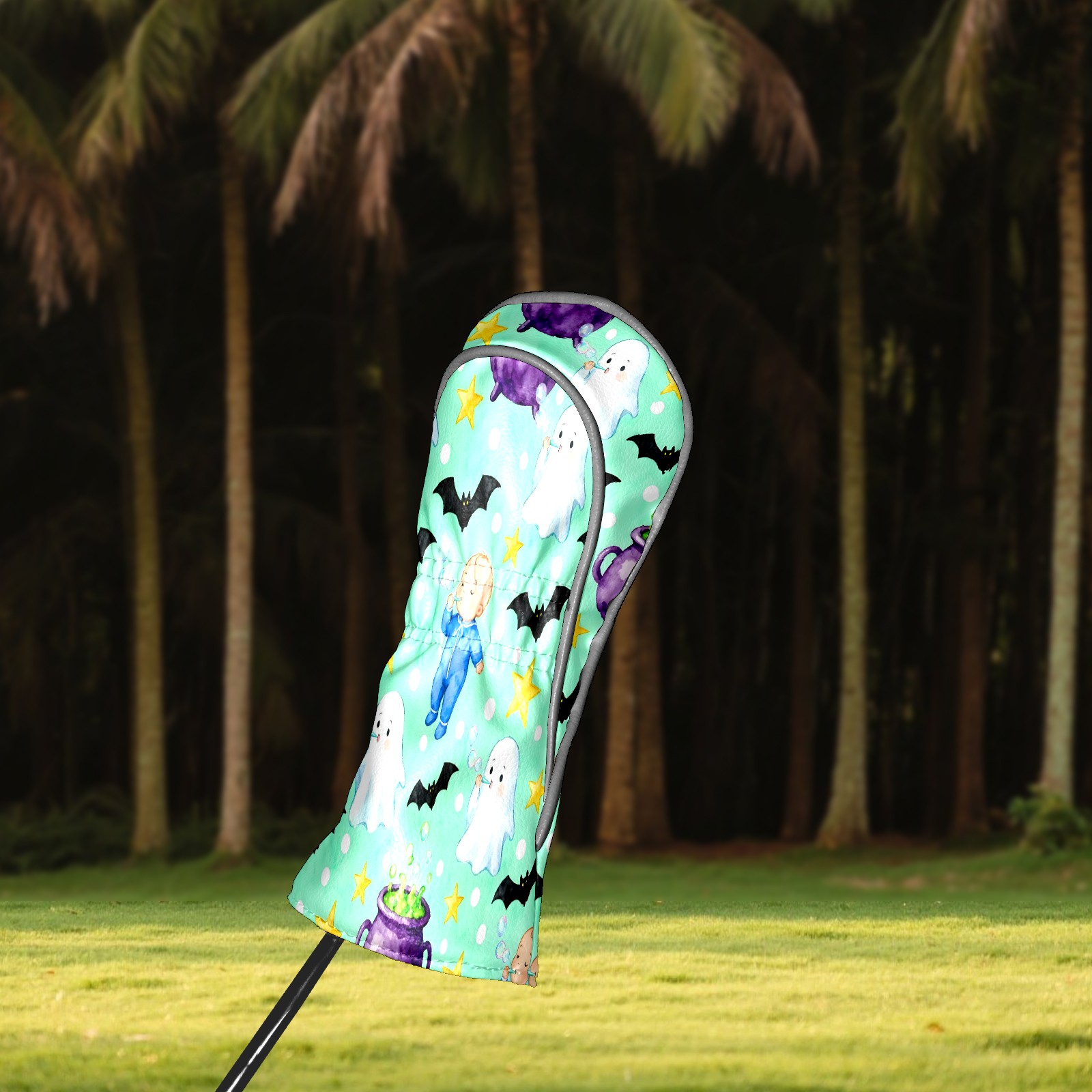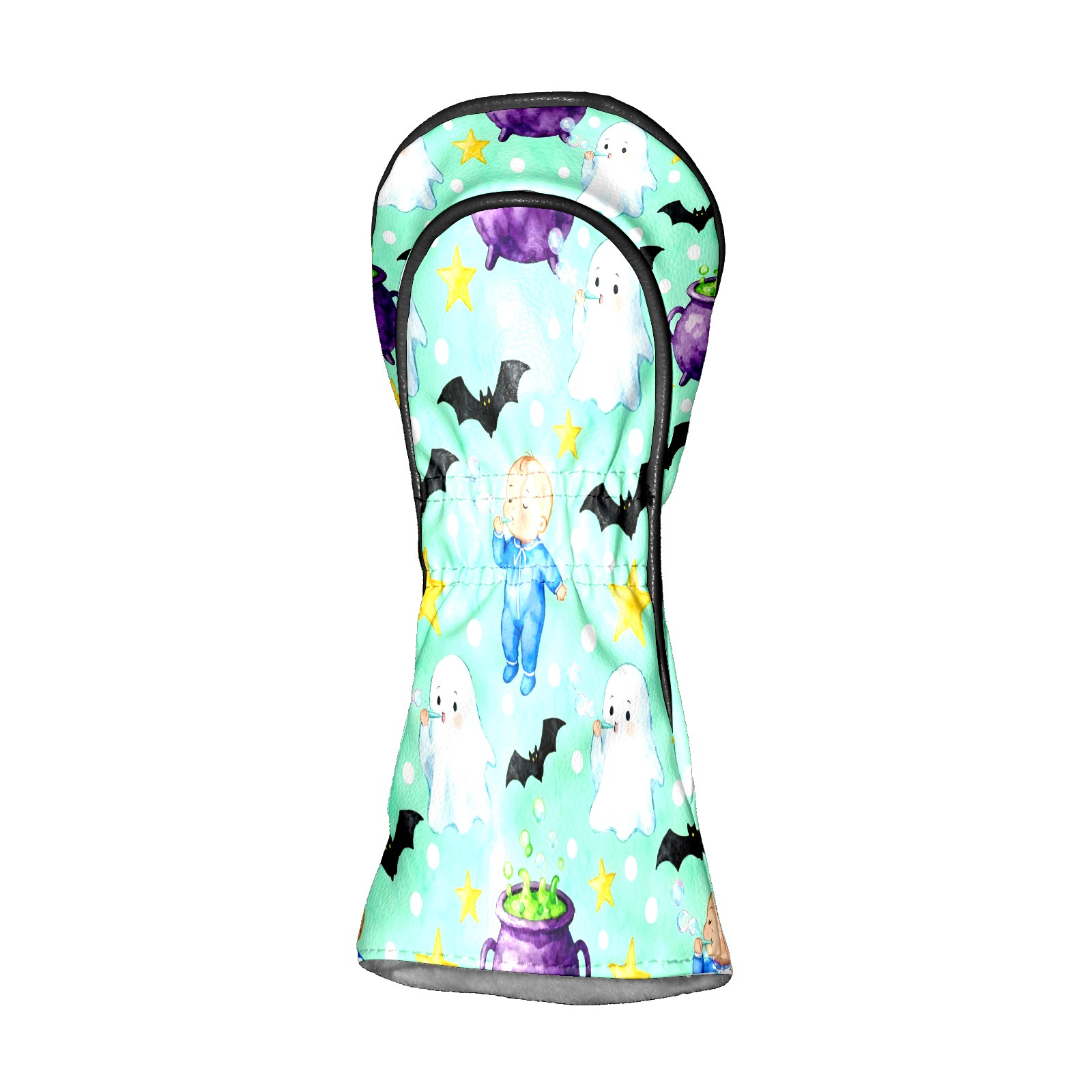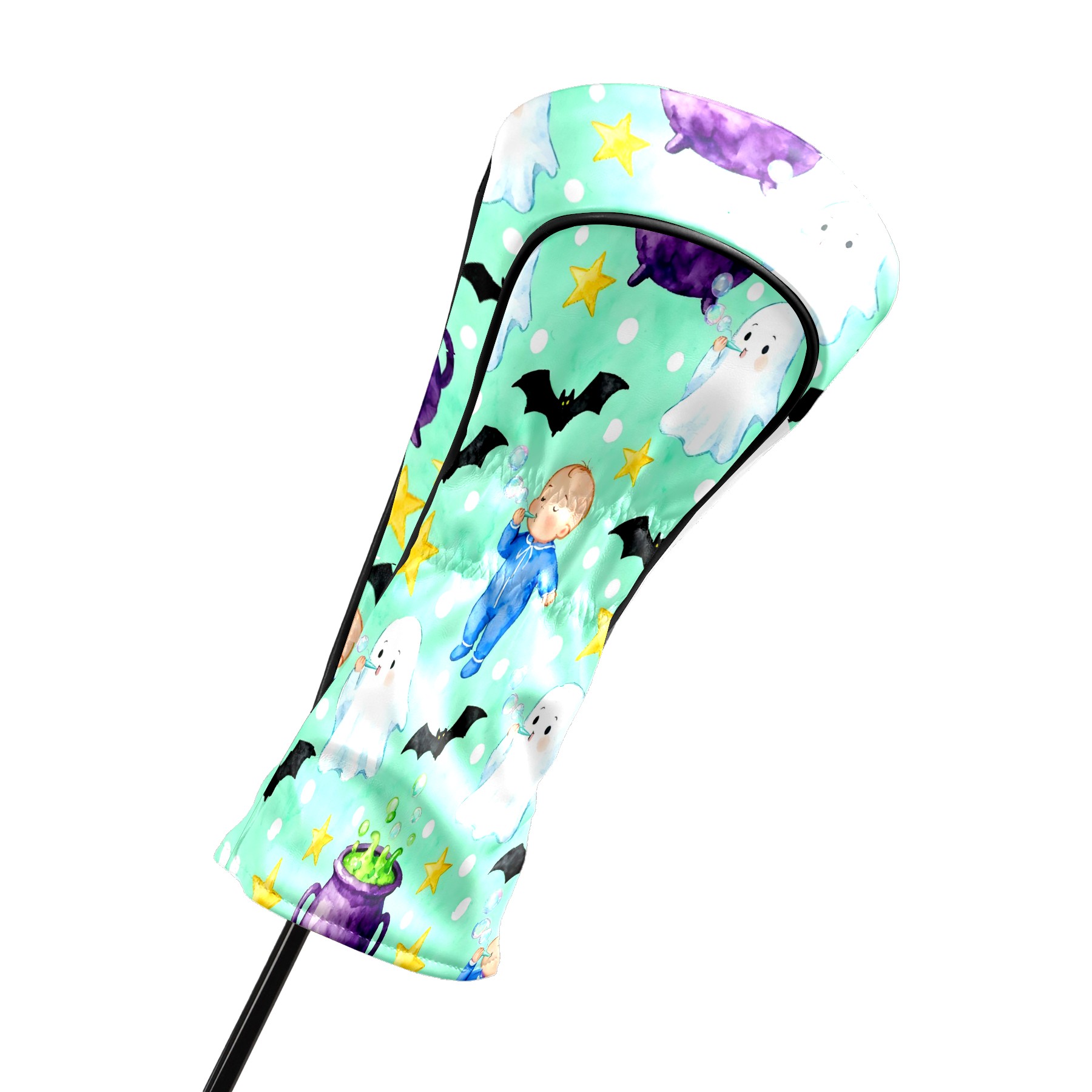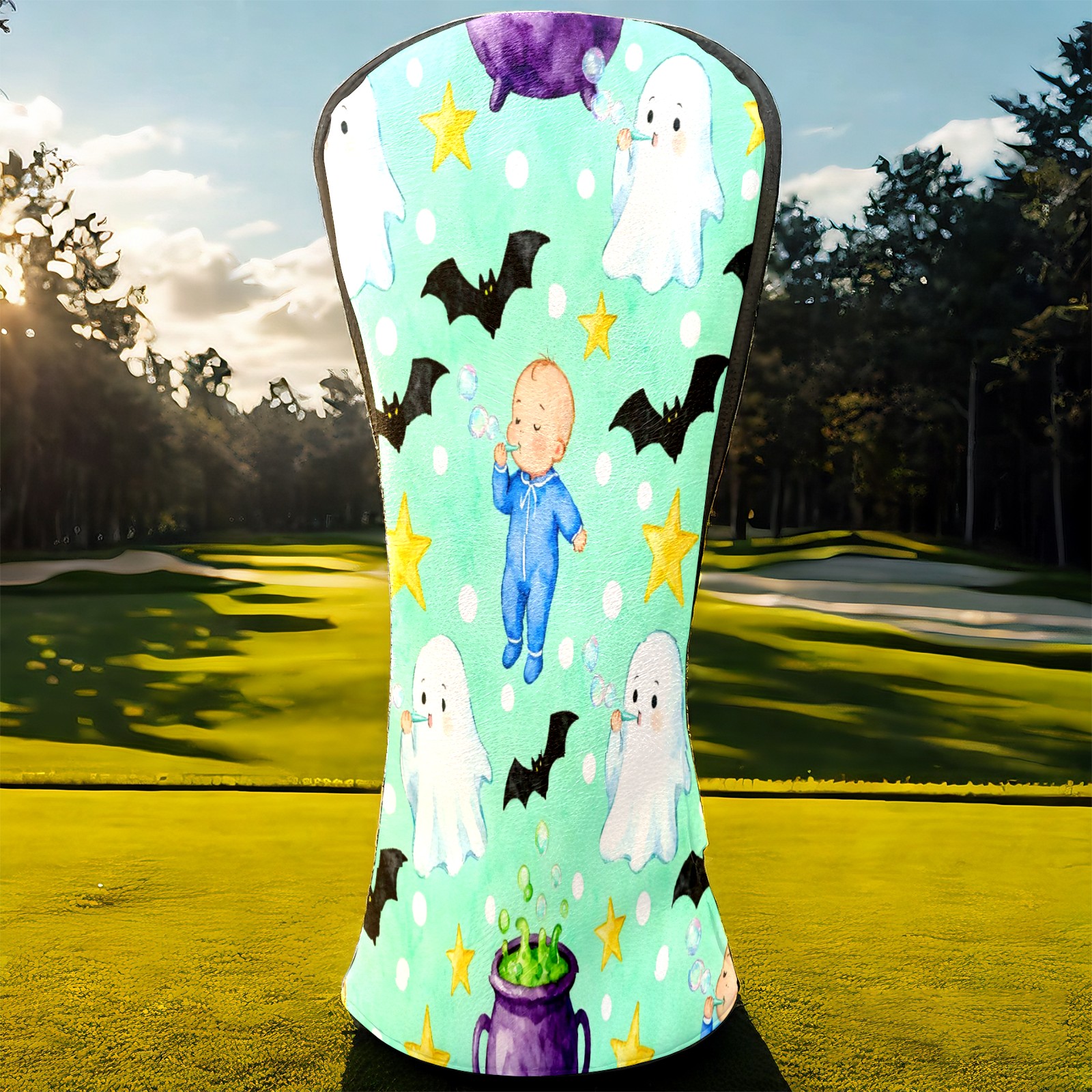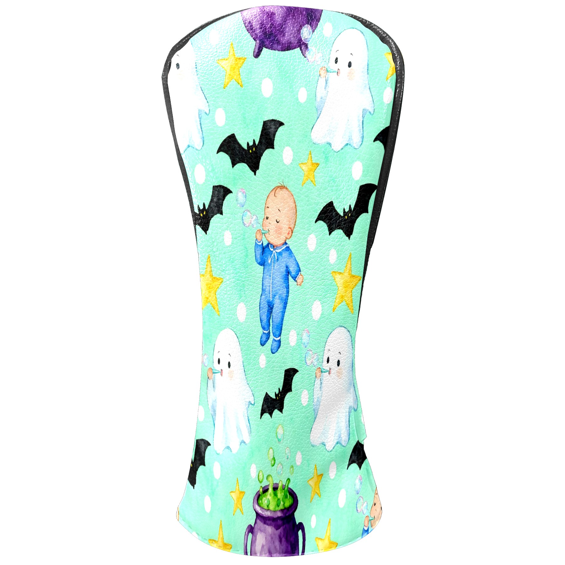 Golf Club Head Covers Mint Green Halloween Ghosts & Baby Design for Driver & Hybrid, Waterproof PU Leather with Plush Velvet Lining, Scratch Protection & Secure Fit, Ideal Golf Gift for Men Women