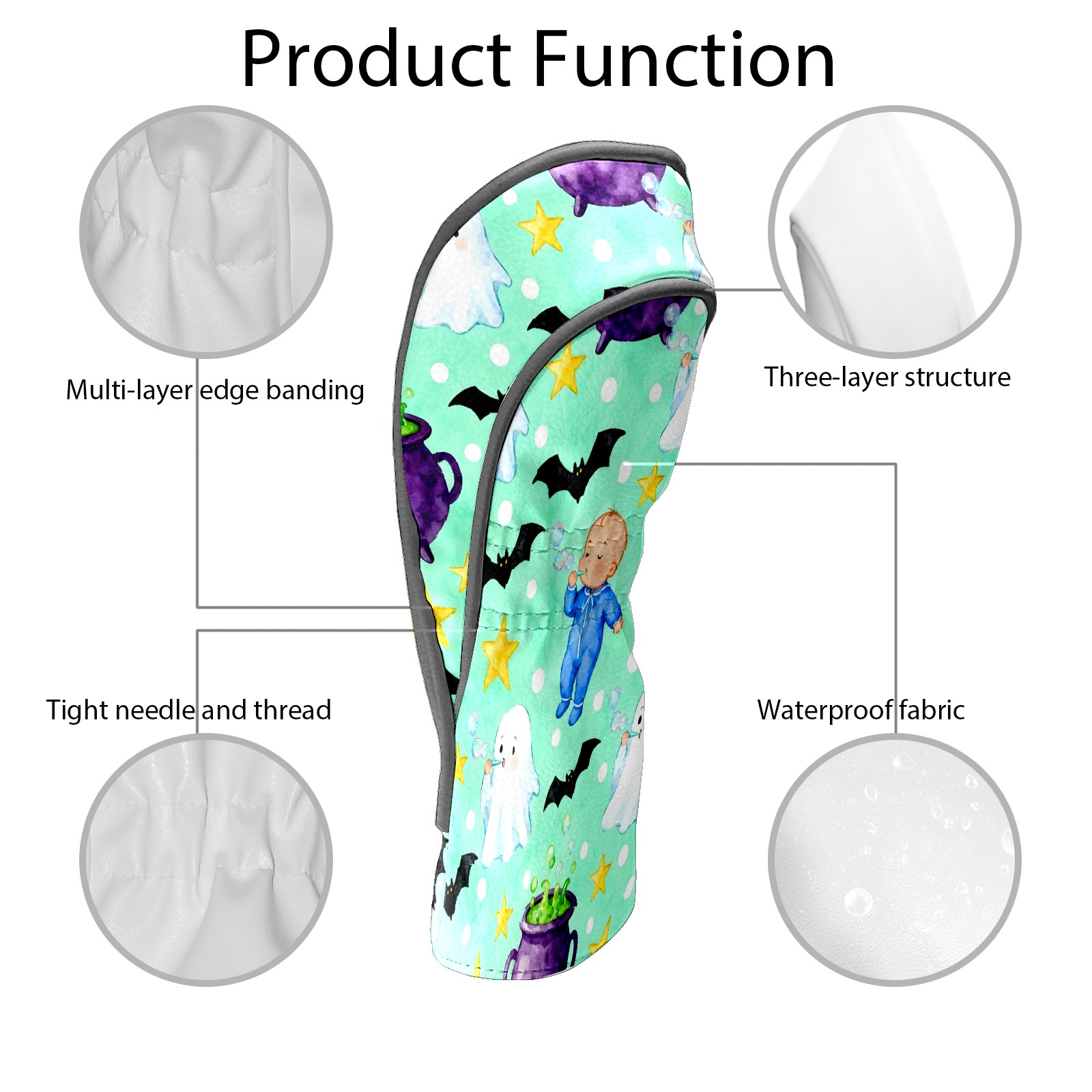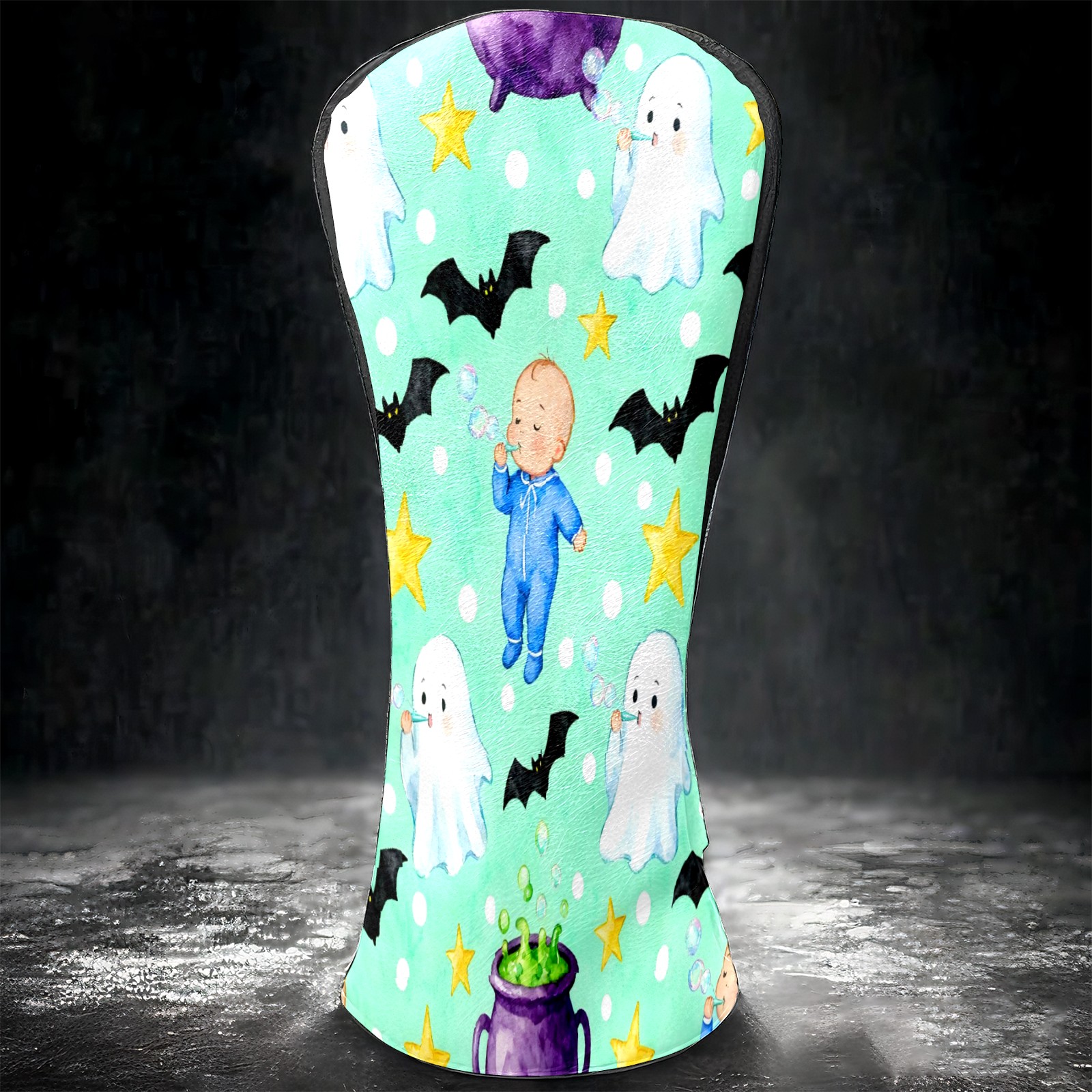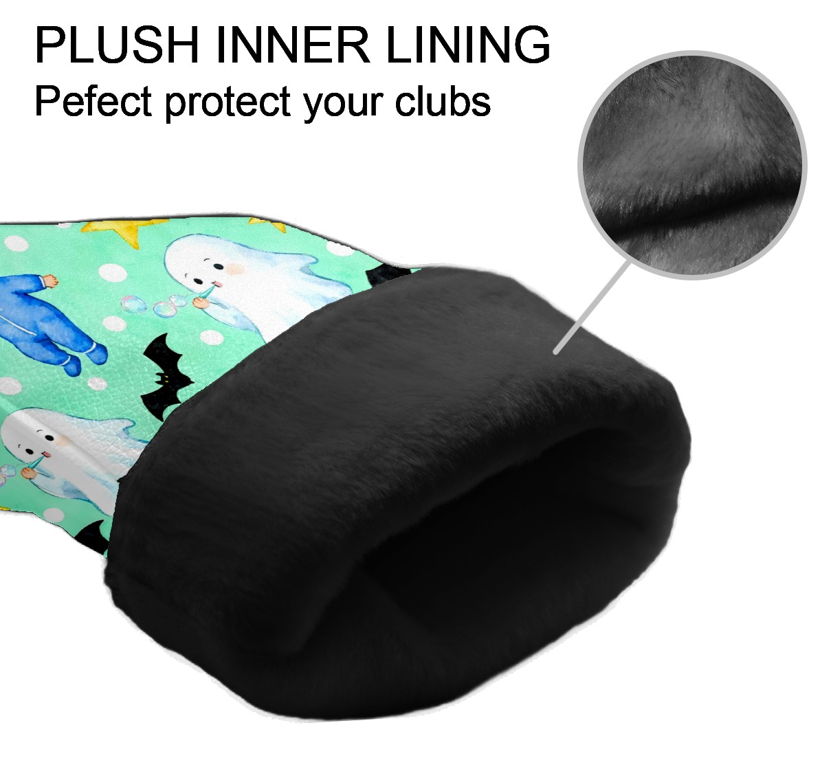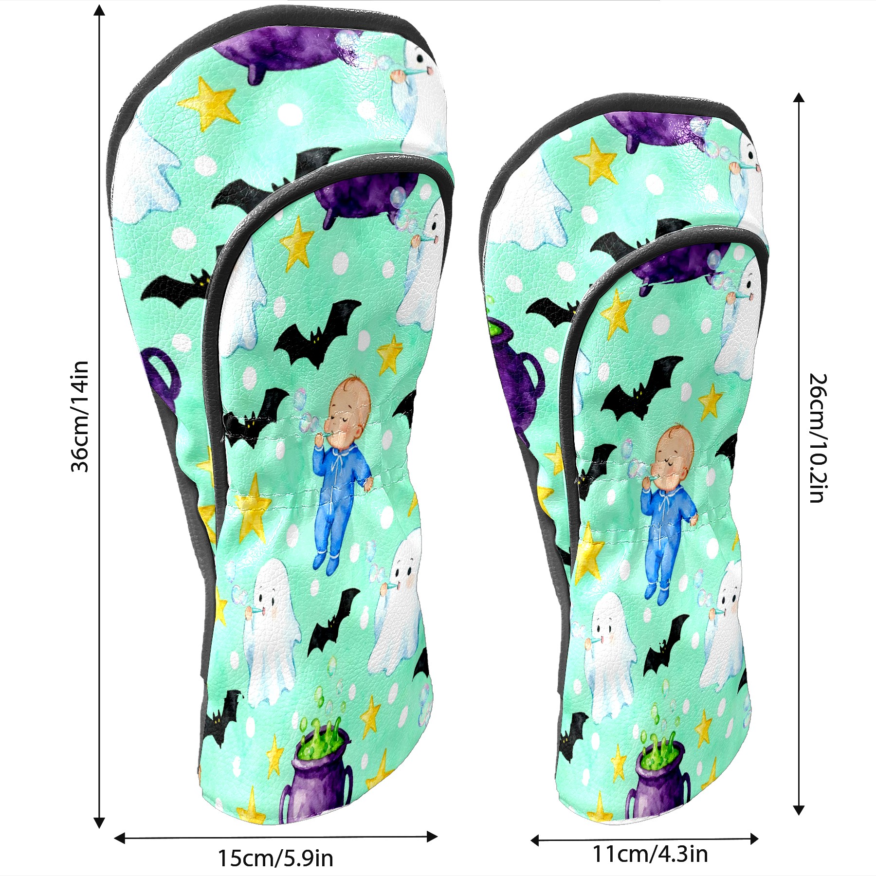 Golf Club Head Covers Mint Green Halloween Ghosts & Baby Design for Driver & Hybrid, Waterproof PU Leather with Plush Velvet Lining, Scratch Protection & Secure Fit, Ideal Golf Gift for Men Women