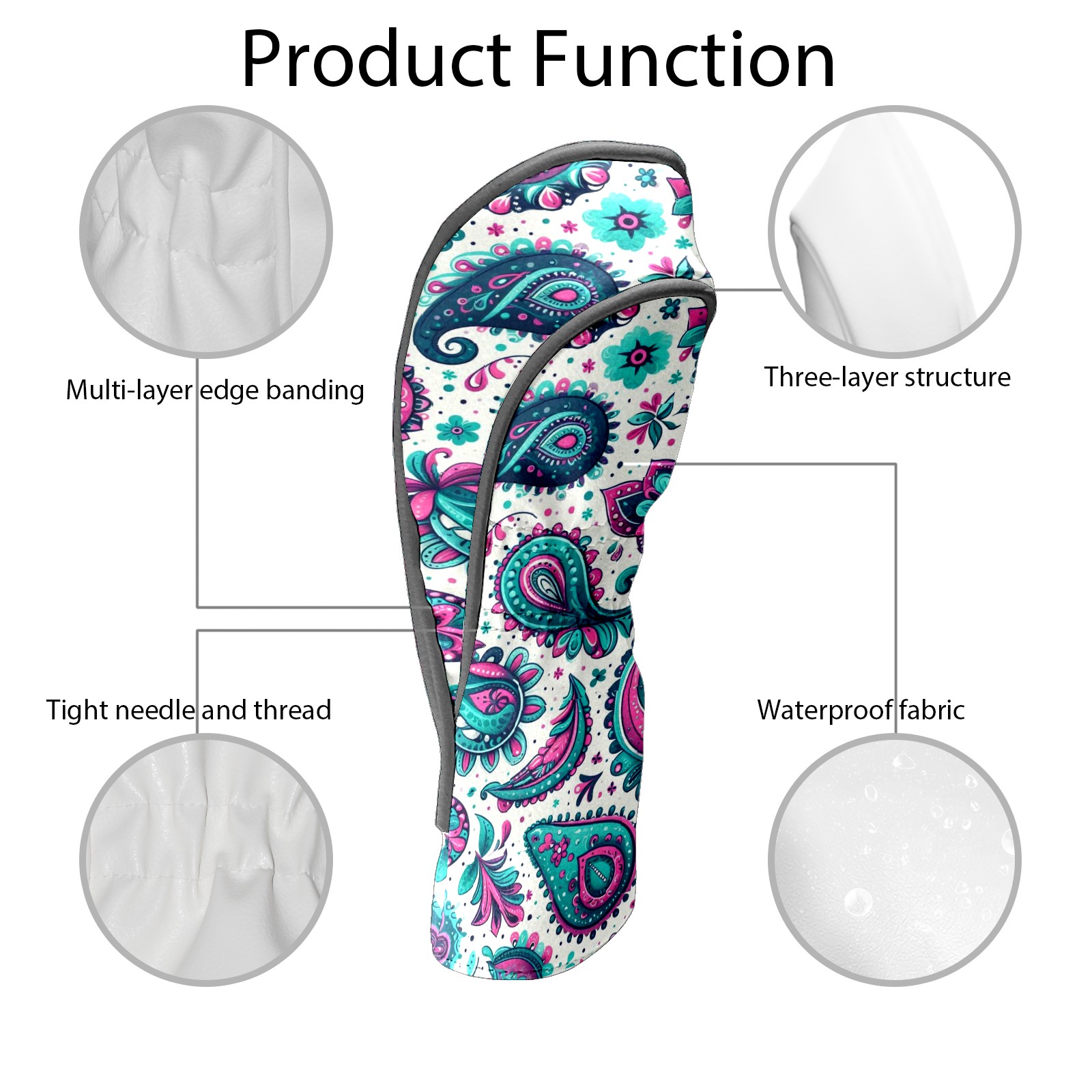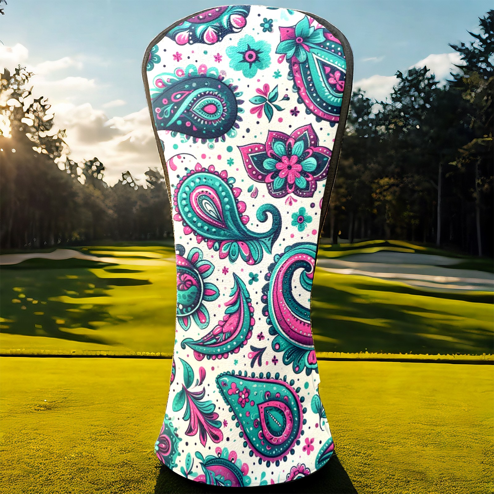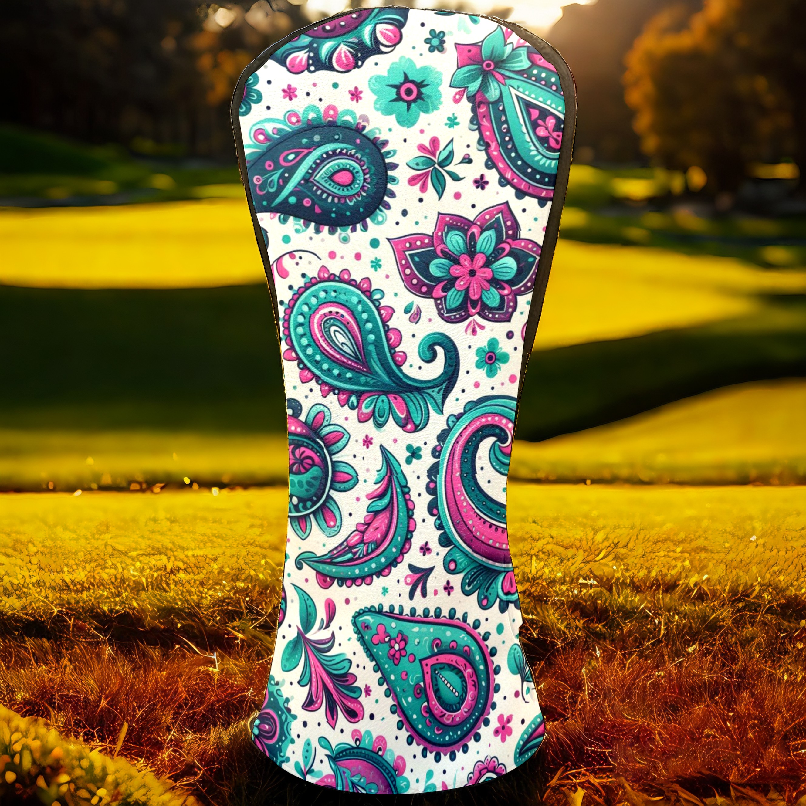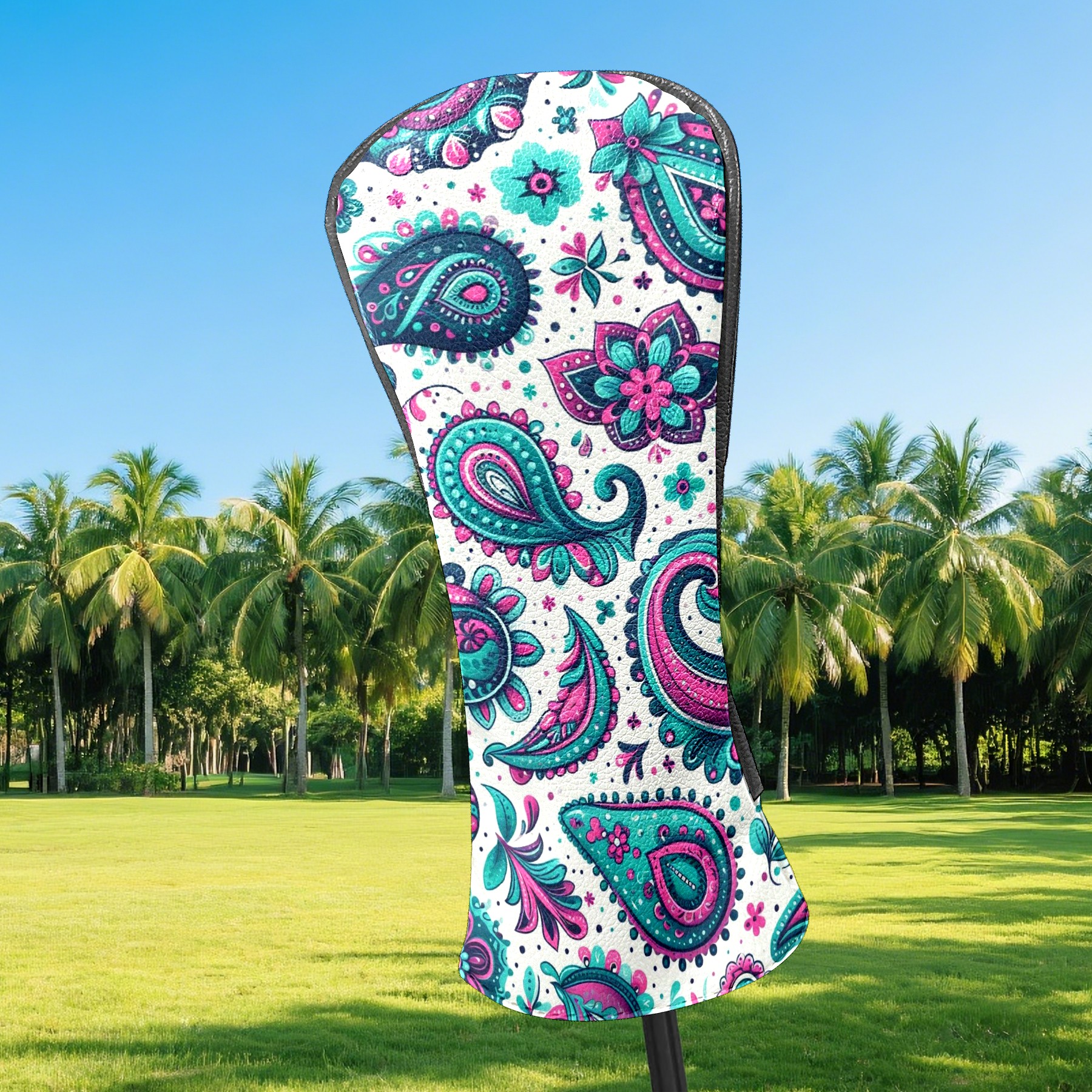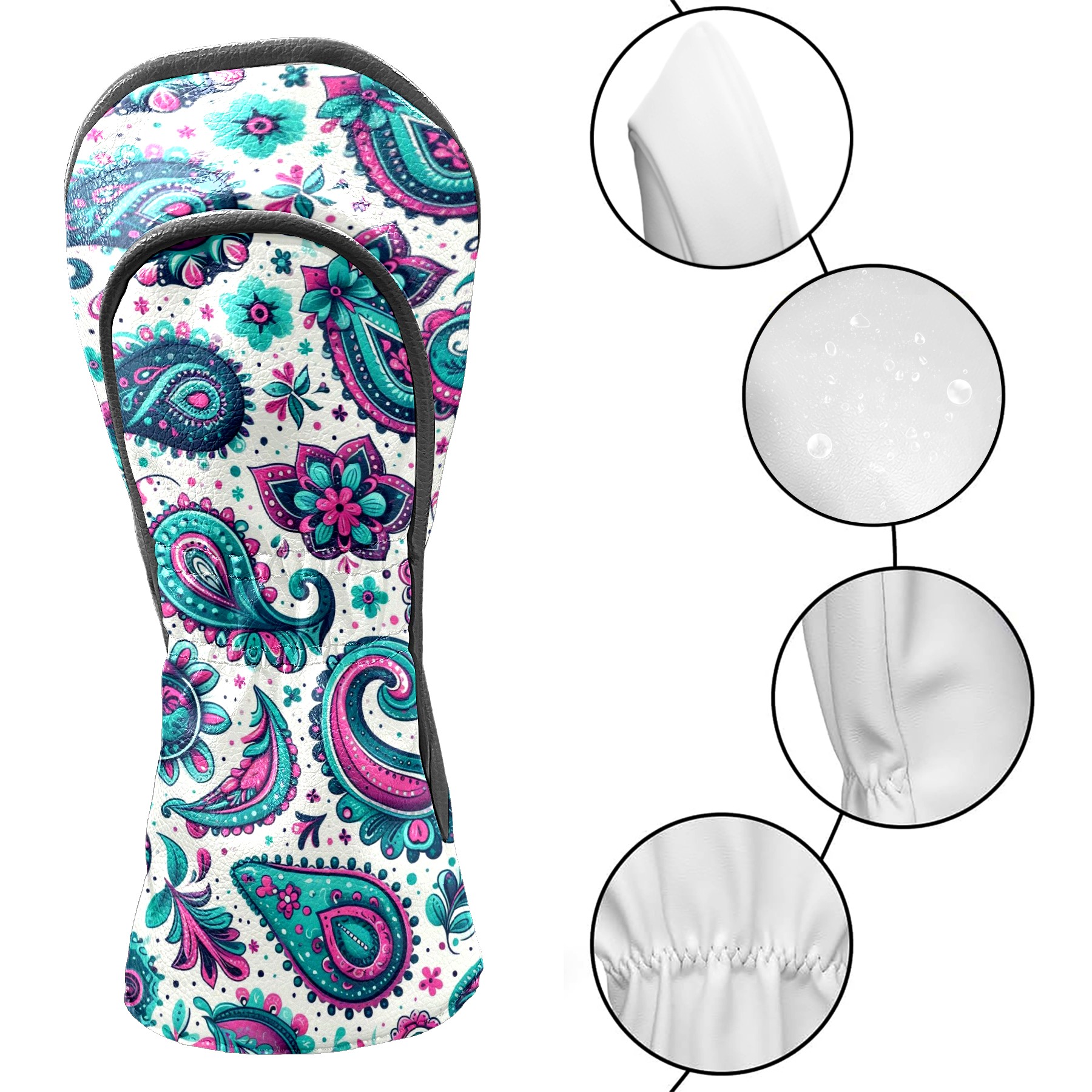 Golf Club Head Covers Blue Purple Paisley Design for Driver & Hybrid, Waterproof PU Leather with Plush Velvet Lining, Scratch Protection & Secure Fit, Ideal Golf Gift for Men Women