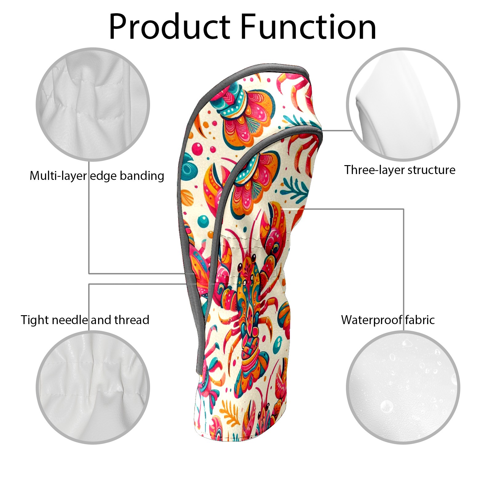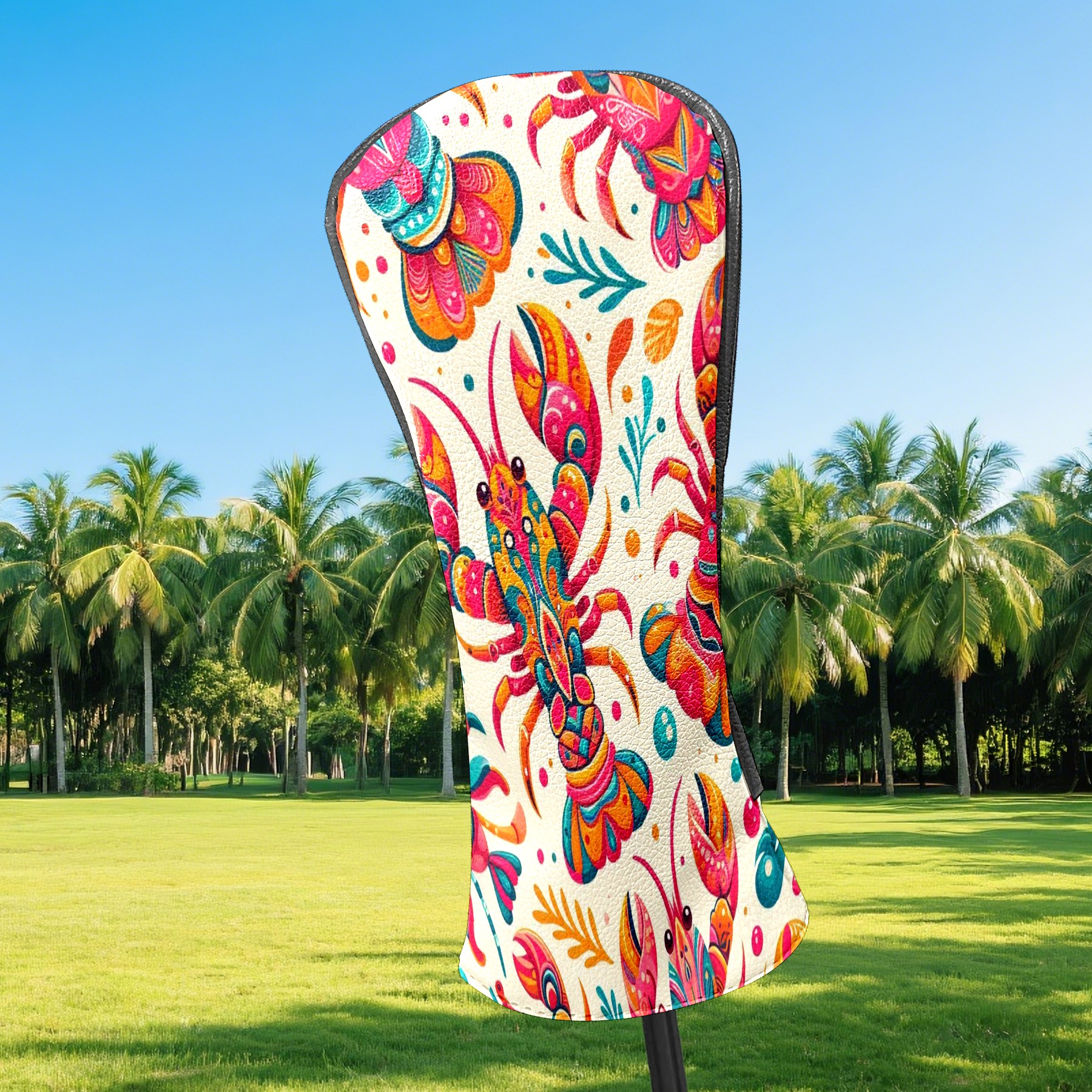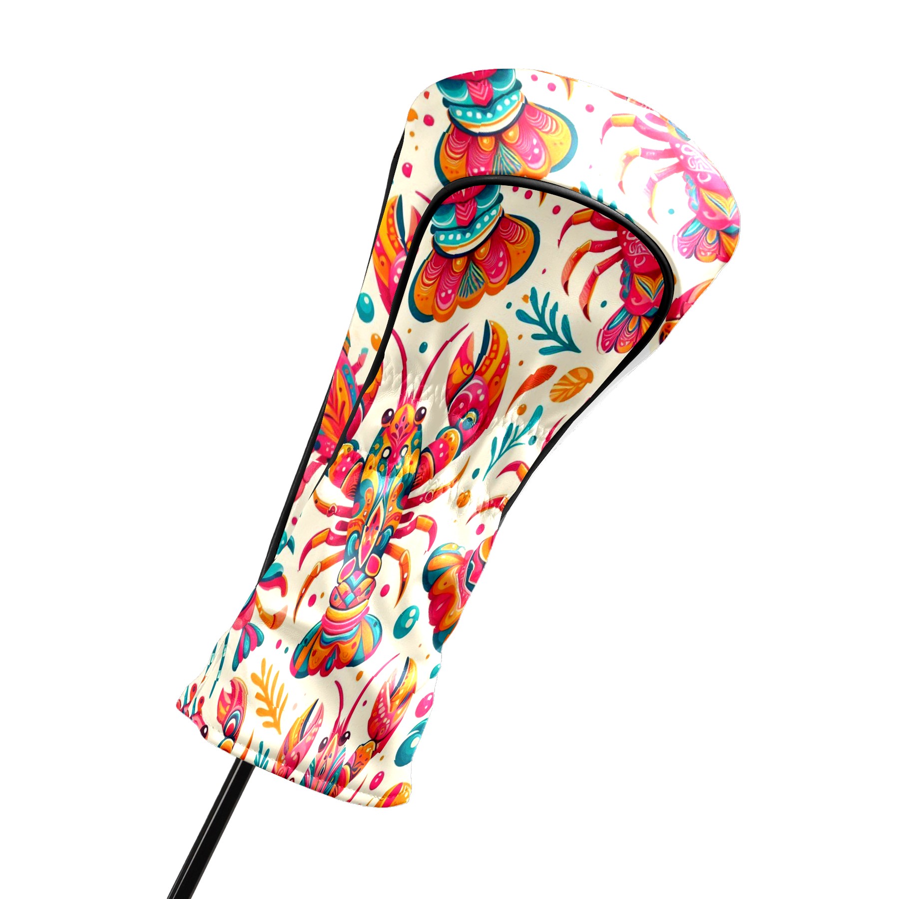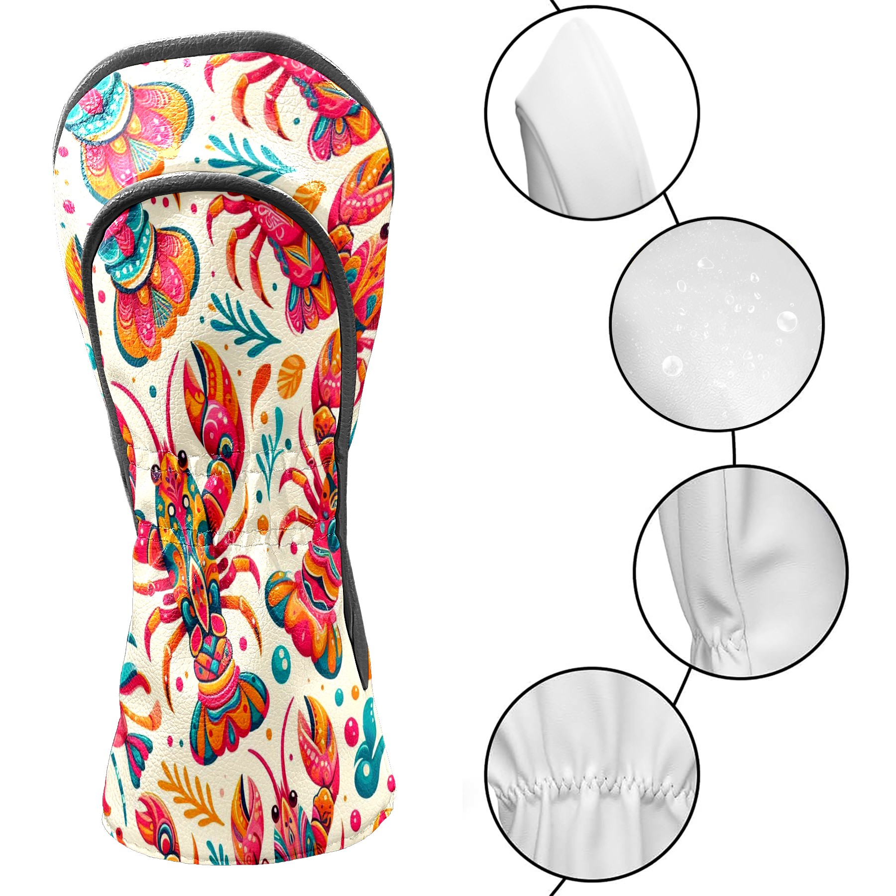 Golf Club Head Covers Multicolor Lobster Seafood Design for Driver & Hybrid, Waterproof PU Leather with Plush Velvet Lining, Scratch Protection & Secure Fit, Ideal Golf Gift for Men Women