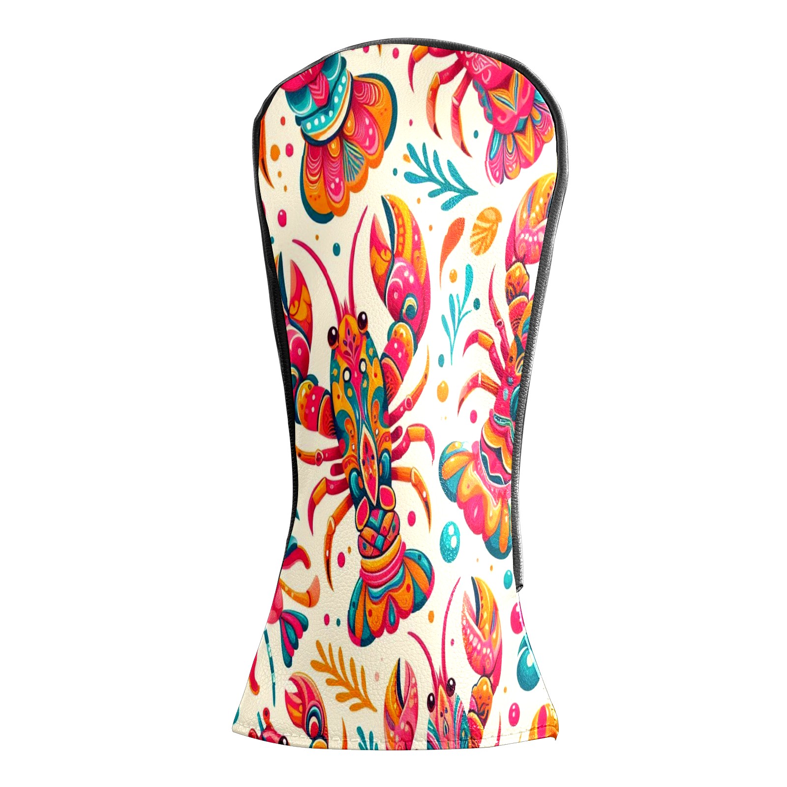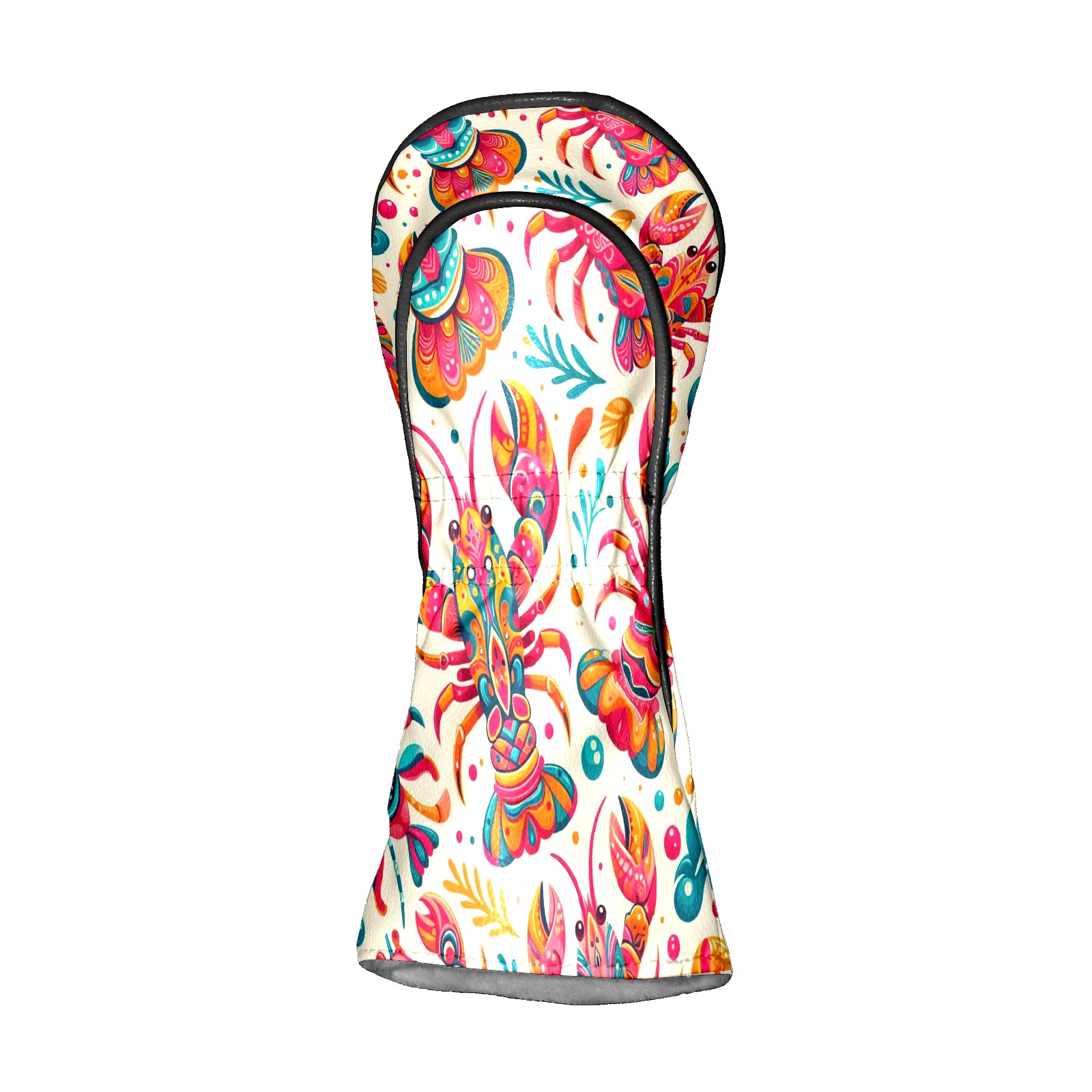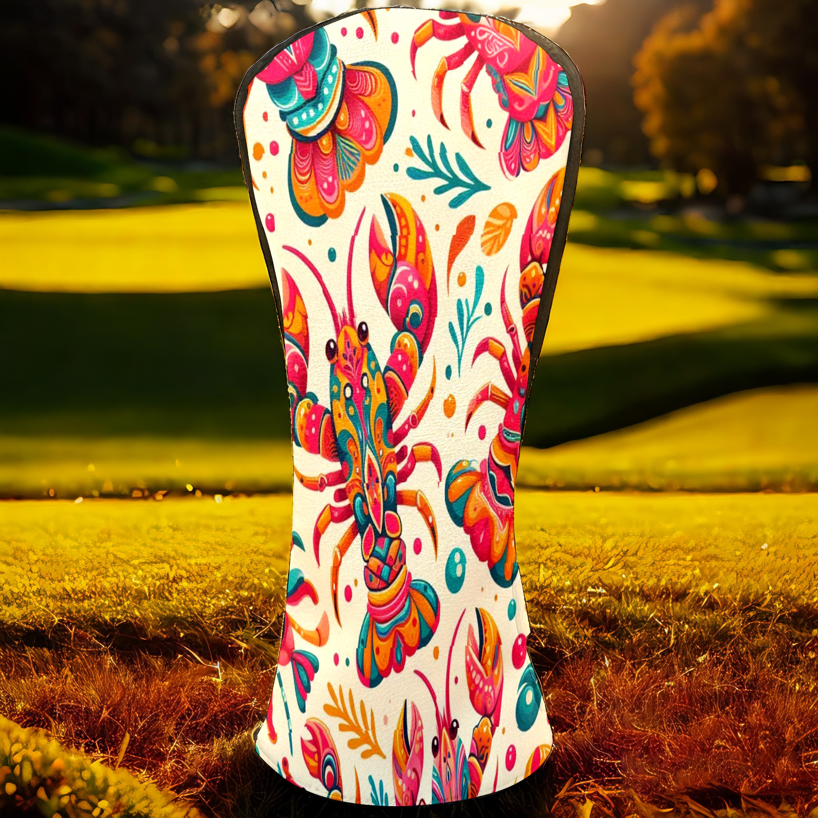Golf Club Head Covers Multicolor Lobster Seafood Design for Driver & Hybrid, Waterproof PU Leather with Plush Velvet Lining, Scratch Protection & Secure Fit, Ideal Golf Gift for Men Women