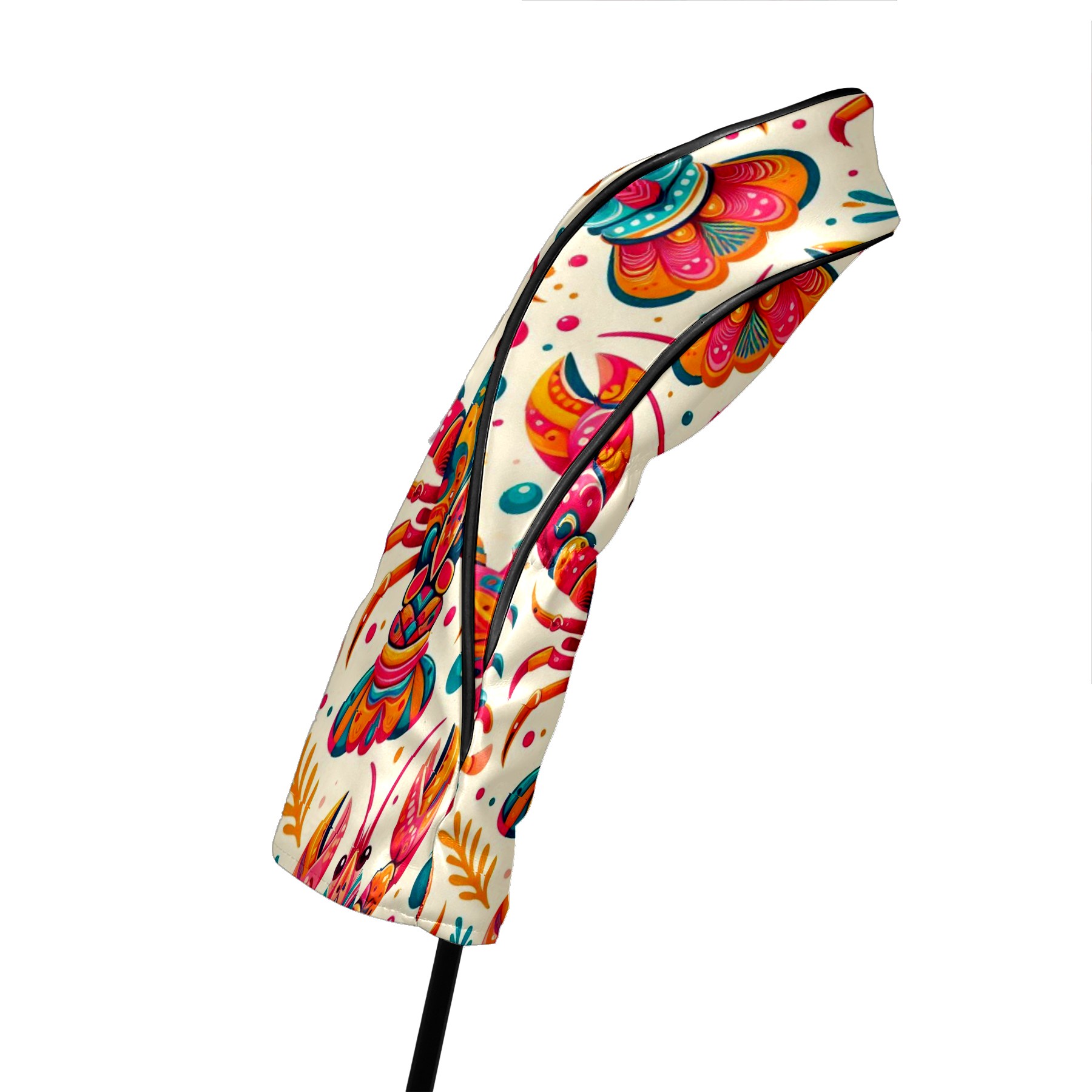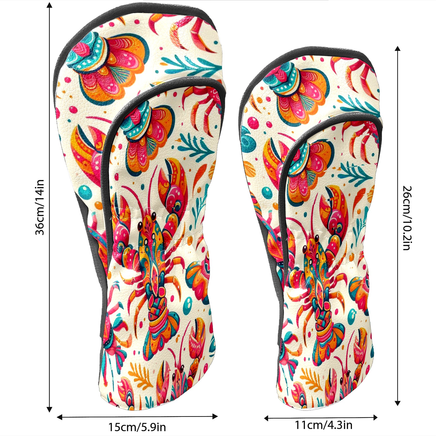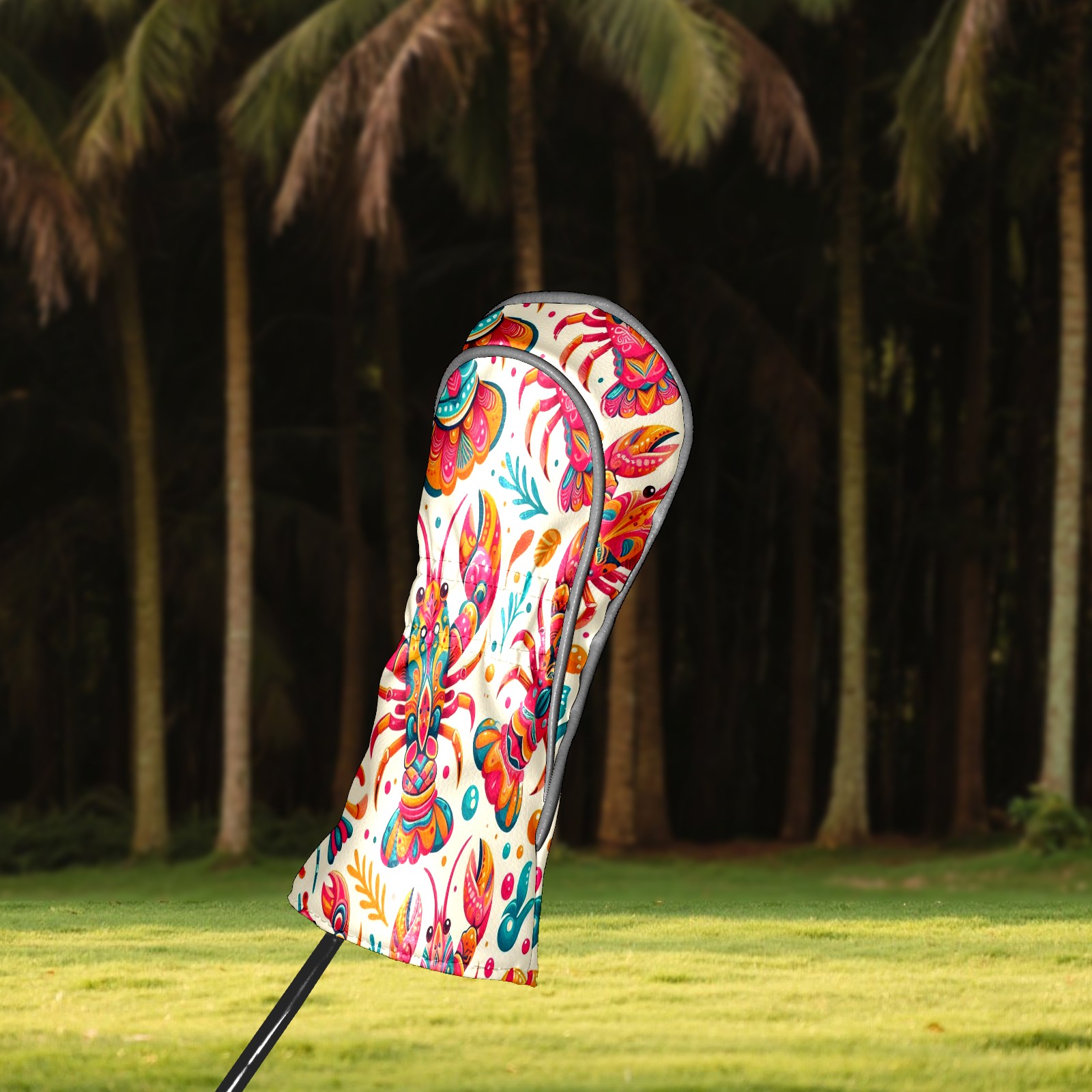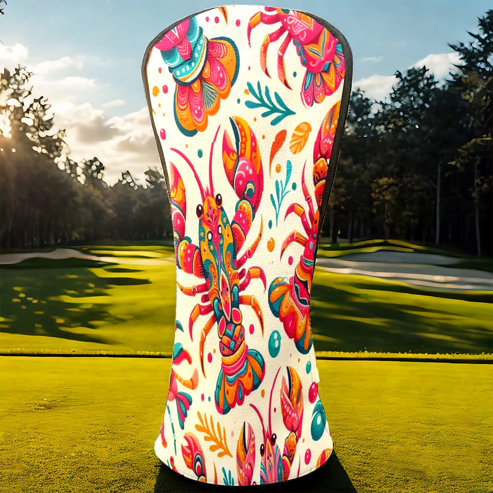 Golf Club Head Covers Multicolor Lobster Seafood Design for Driver & Hybrid, Waterproof PU Leather with Plush Velvet Lining, Scratch Protection & Secure Fit, Ideal Golf Gift for Men Women