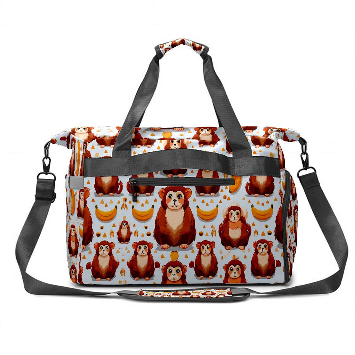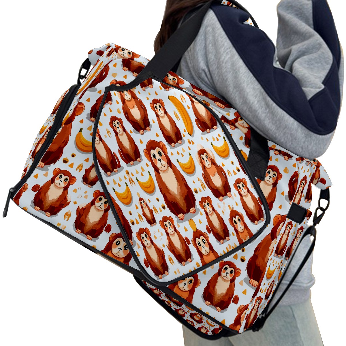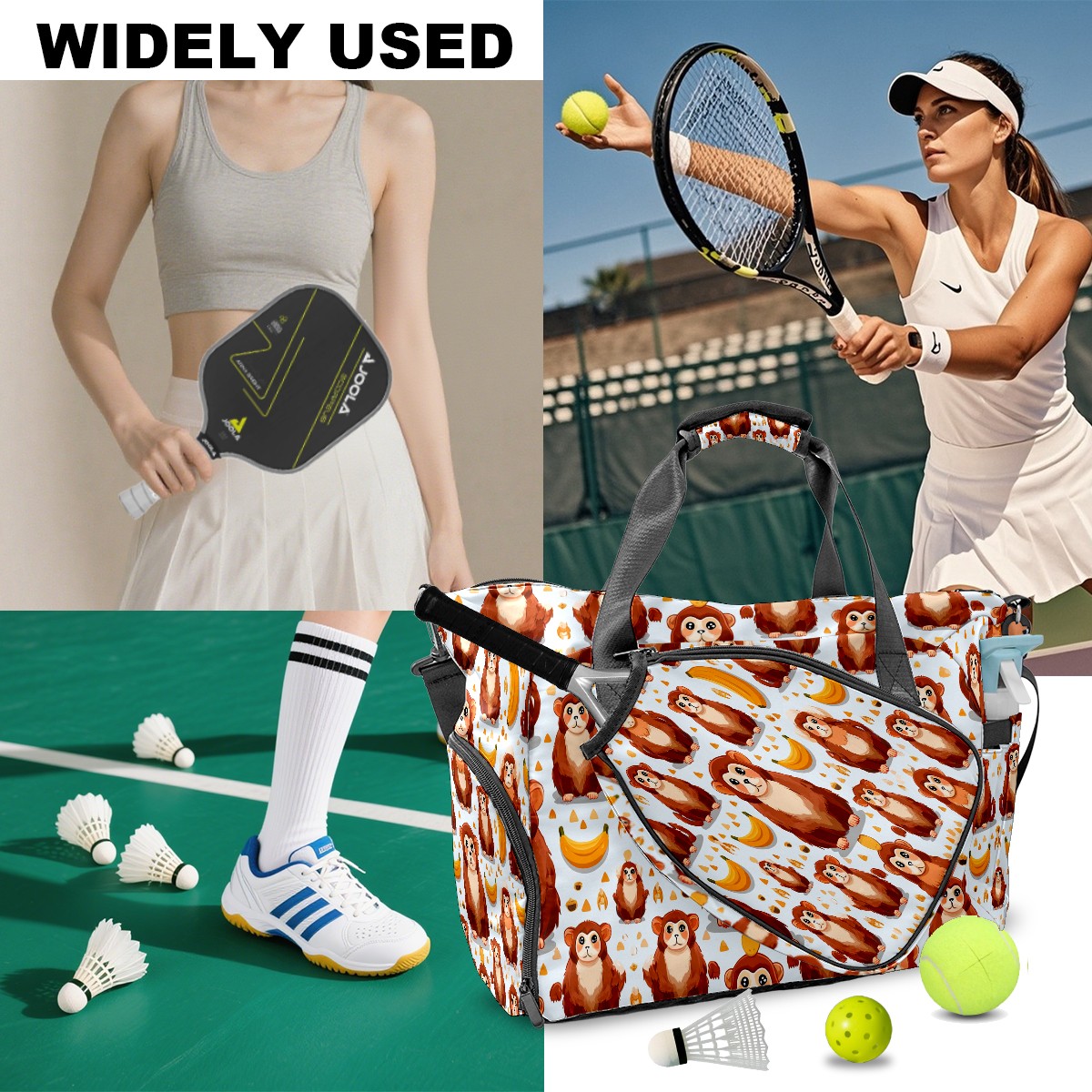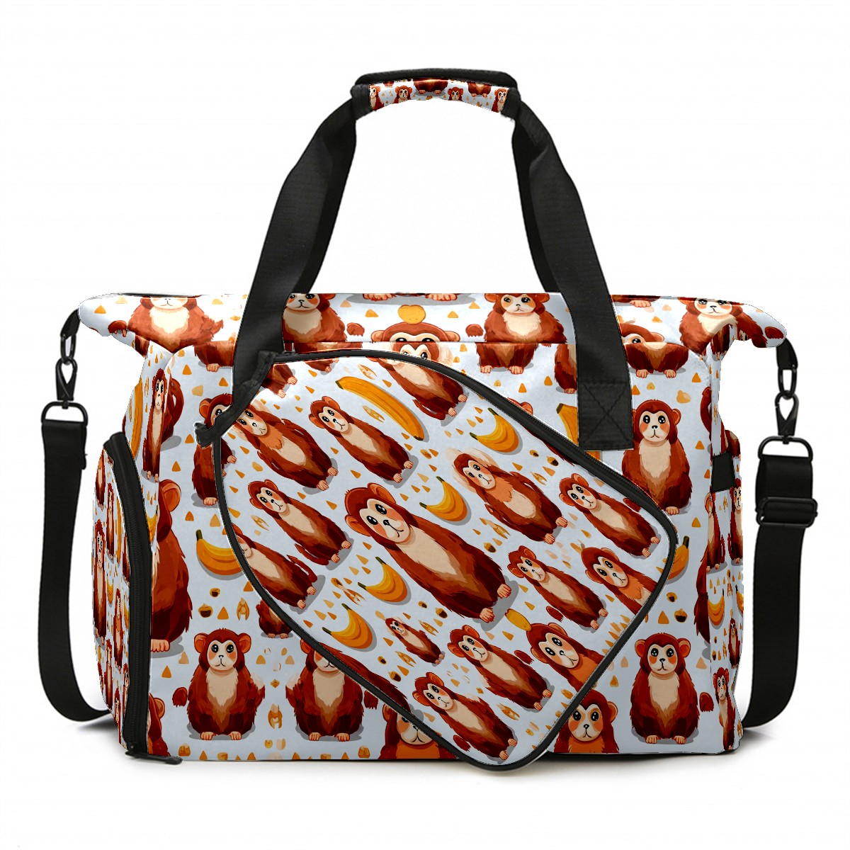 Tennis Bag Large, Brown Monkeys Pattern Multi-Functional Sports Duffel Bag with Ventilated Shoe Compartment & Wet Pocket, Gym Bag for Men Women, Fitness Yoga Tennis Travel Carryall Bag