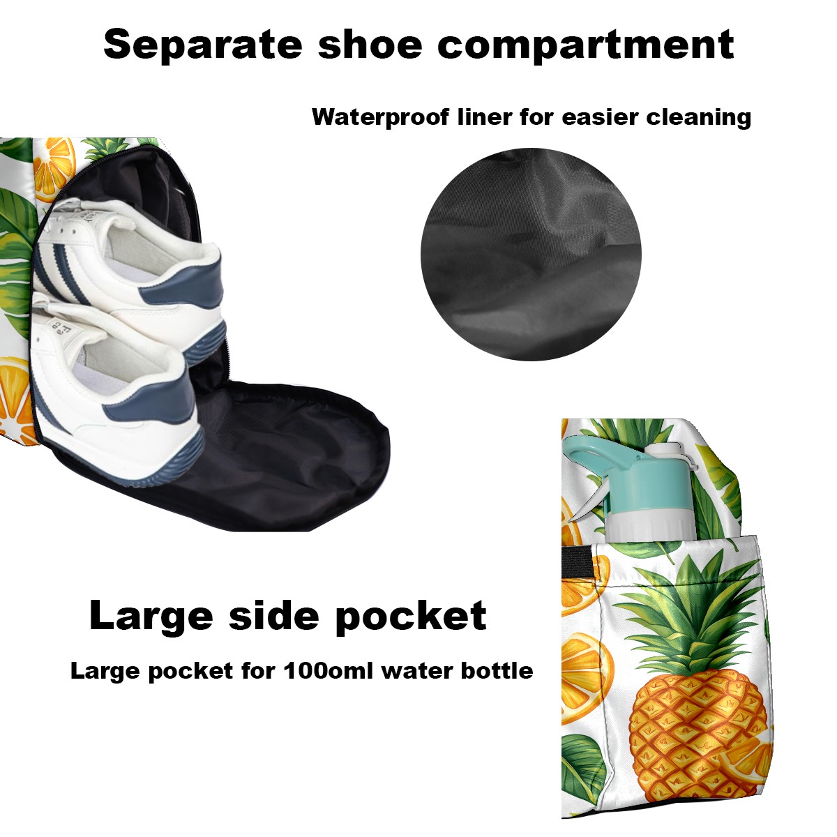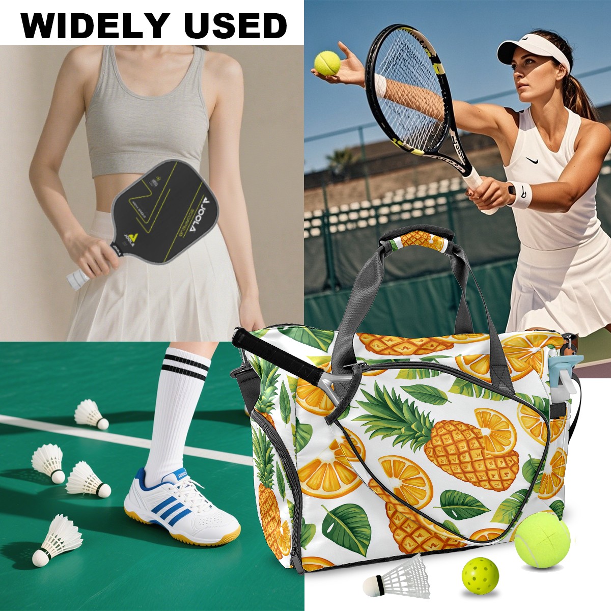 Tennis Bag Large, Orange Pineapple Multi-Functional Sports Duffel Bag with Ventilated Shoe Compartment & Wet Pocket, Gym Bag for Men Women, Fitness Yoga Tennis Travel Carryall Bag