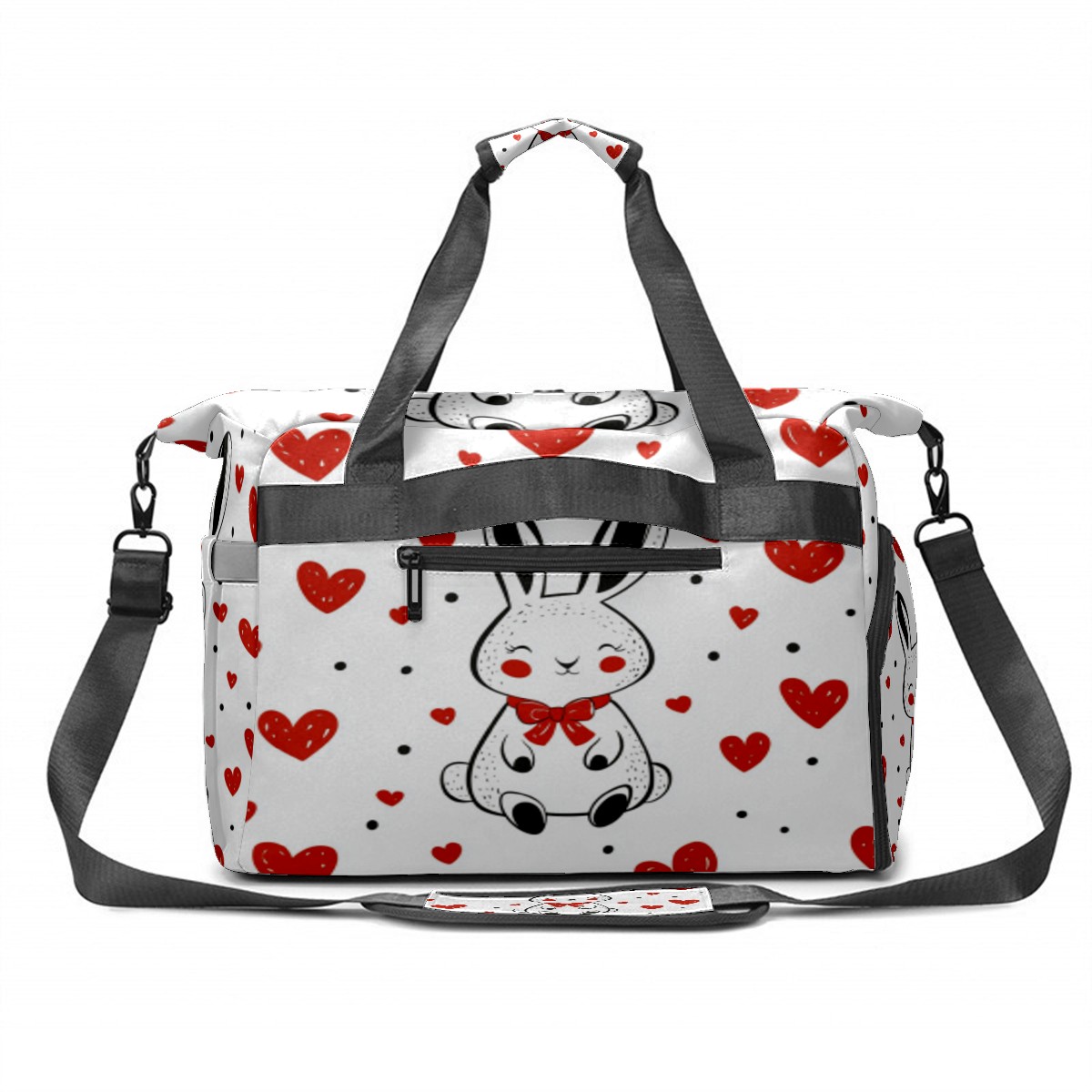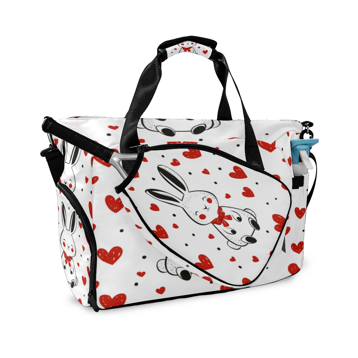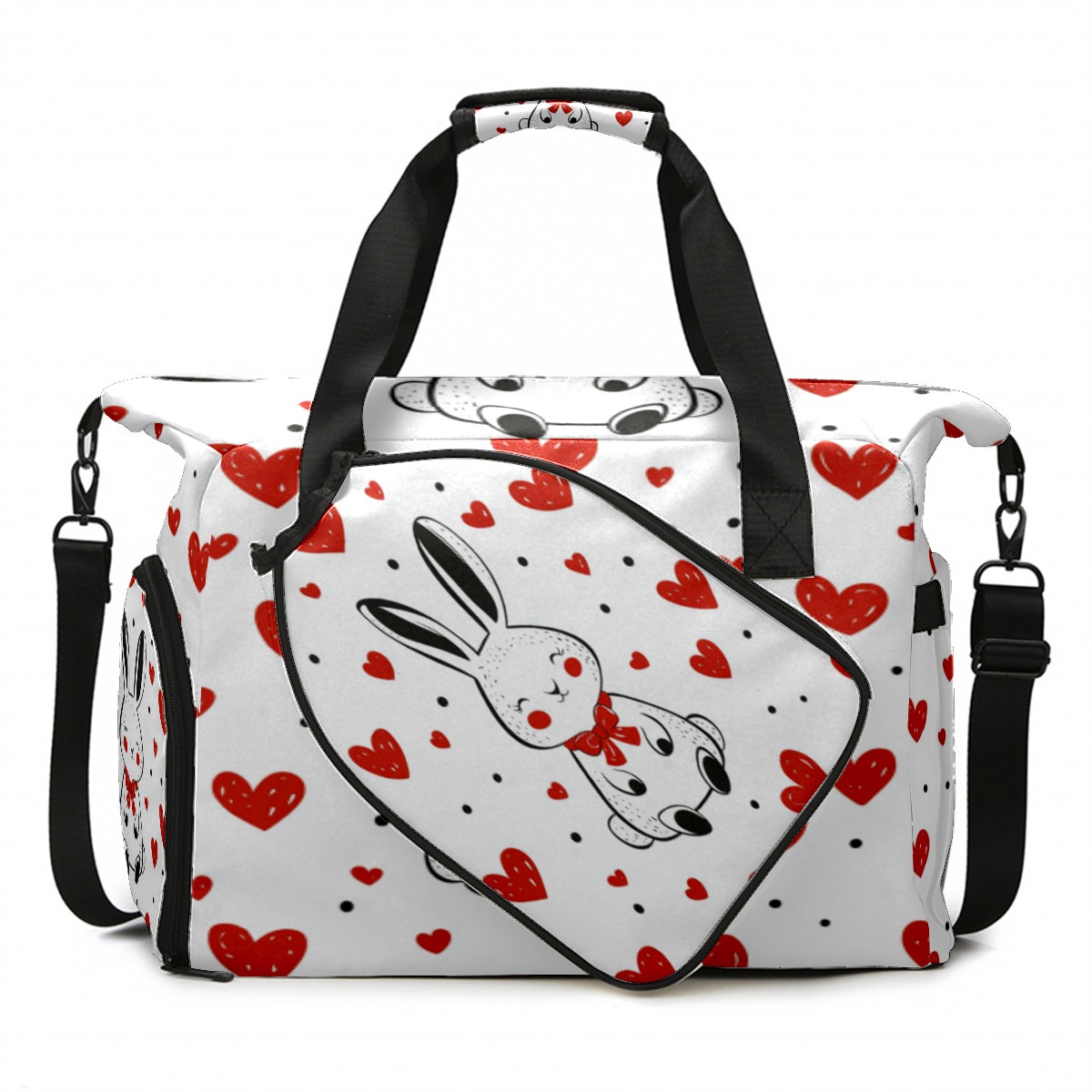 Tennis Bag Large, Rabbit Heart White Multi-Functional Sports Duffel Bag with Ventilated Shoe Compartment & Wet Pocket, Gym Bag for Men Women, Fitness Yoga Tennis Travel Carryall Bag