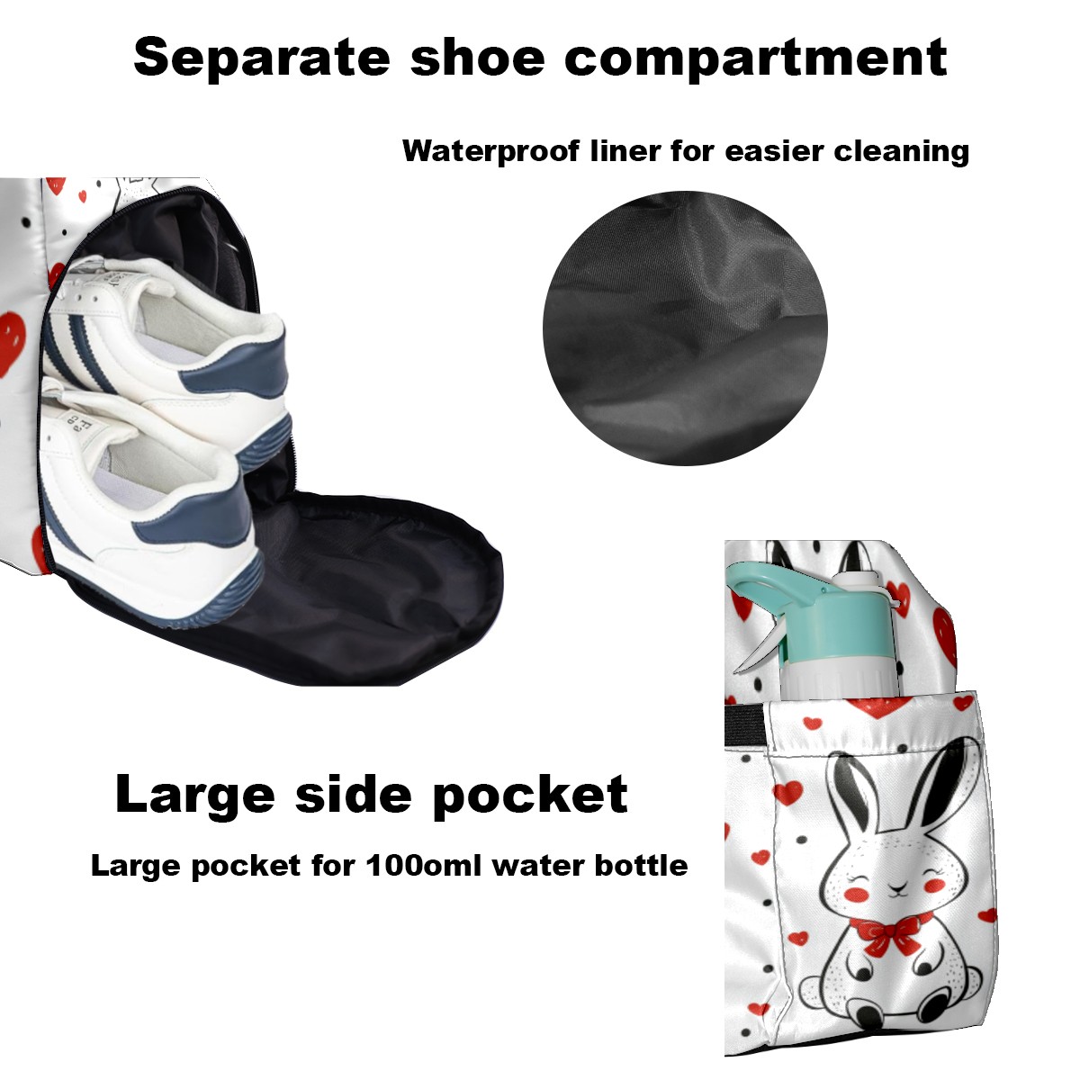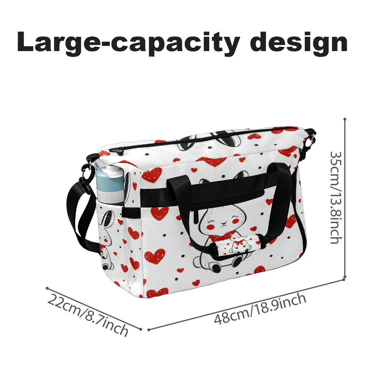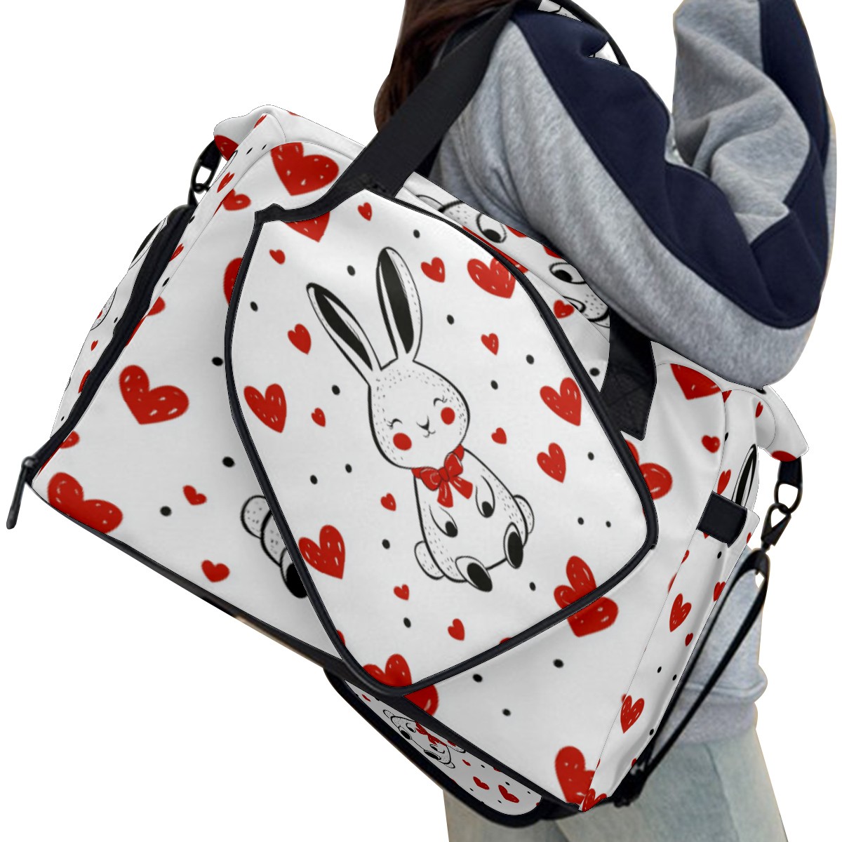 Tennis Bag Large, Rabbit Heart White Multi-Functional Sports Duffel Bag with Ventilated Shoe Compartment & Wet Pocket, Gym Bag for Men Women, Fitness Yoga Tennis Travel Carryall Bag