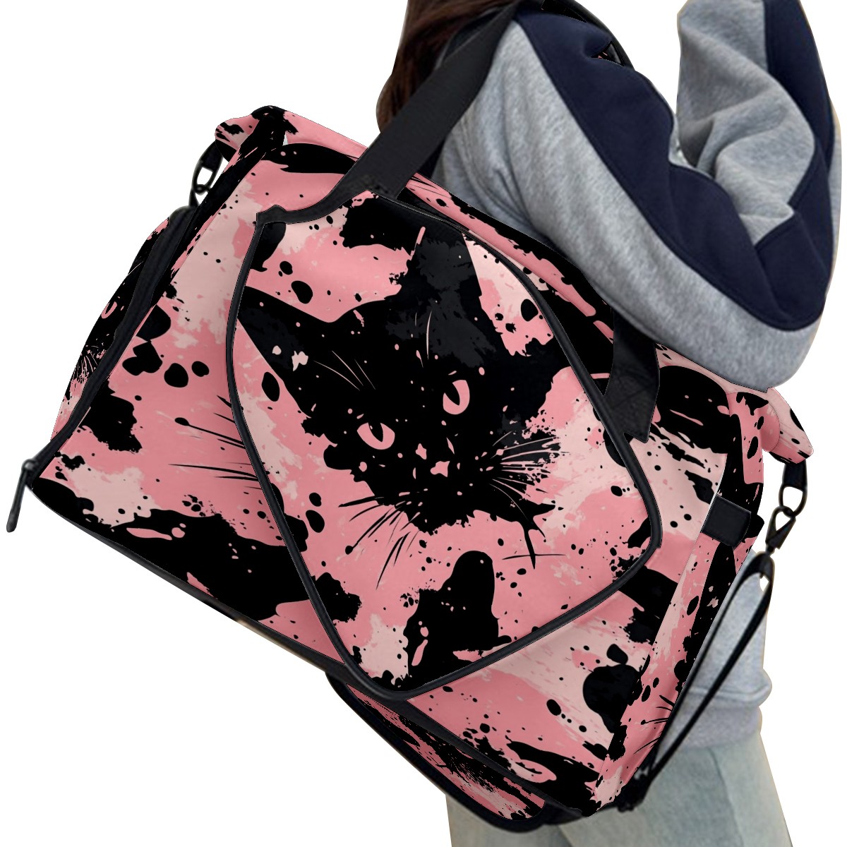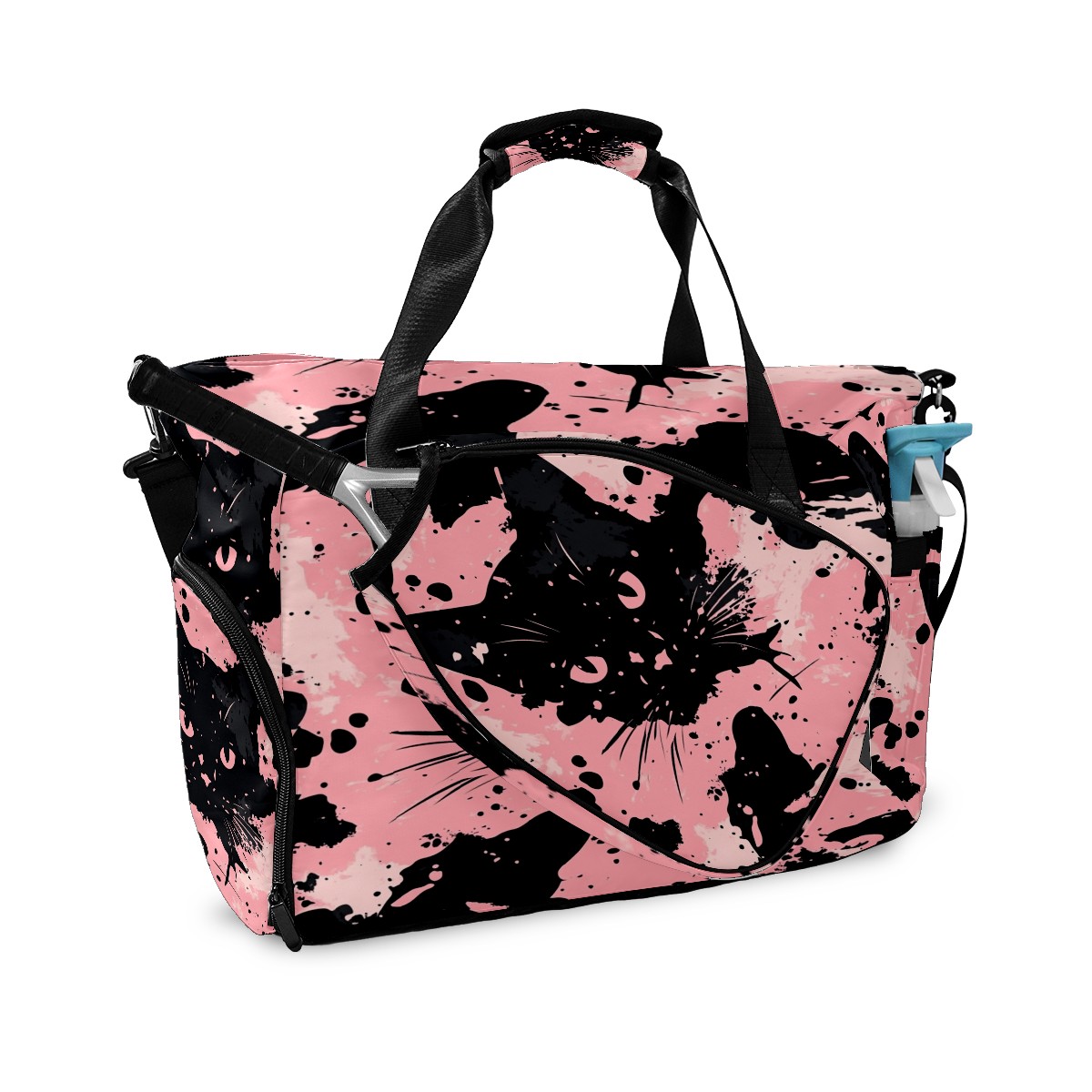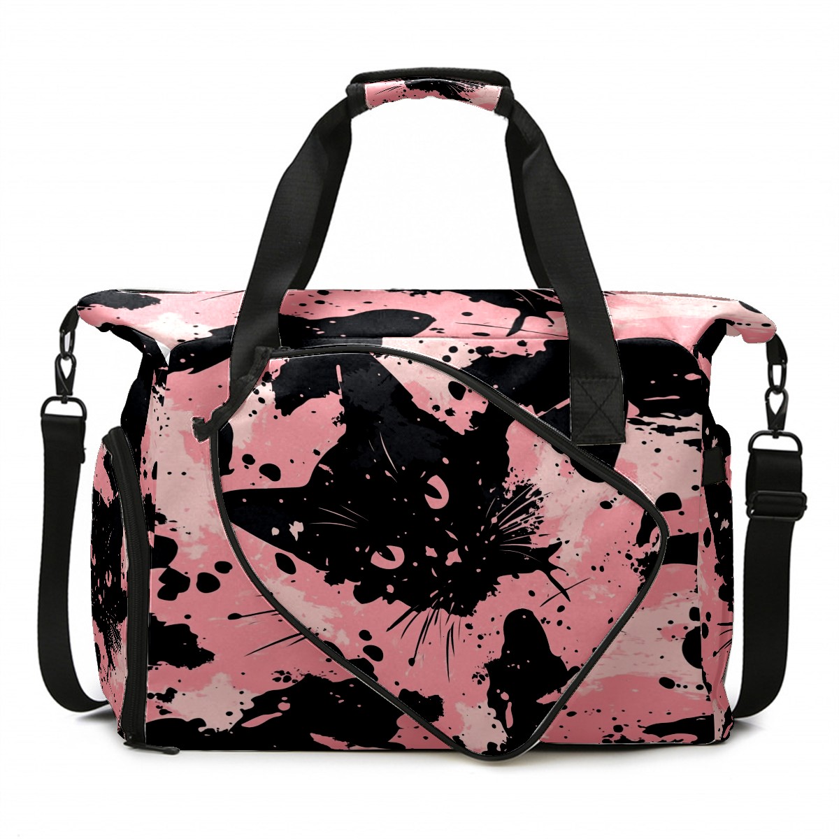 Tennis Bag Large, Camouflage Cat Black Multi-Functional Sports Duffel Bag with Ventilated Shoe Compartment & Wet Pocket, Gym Bag for Men Women, Fitness Yoga Tennis Travel Carryall Bag