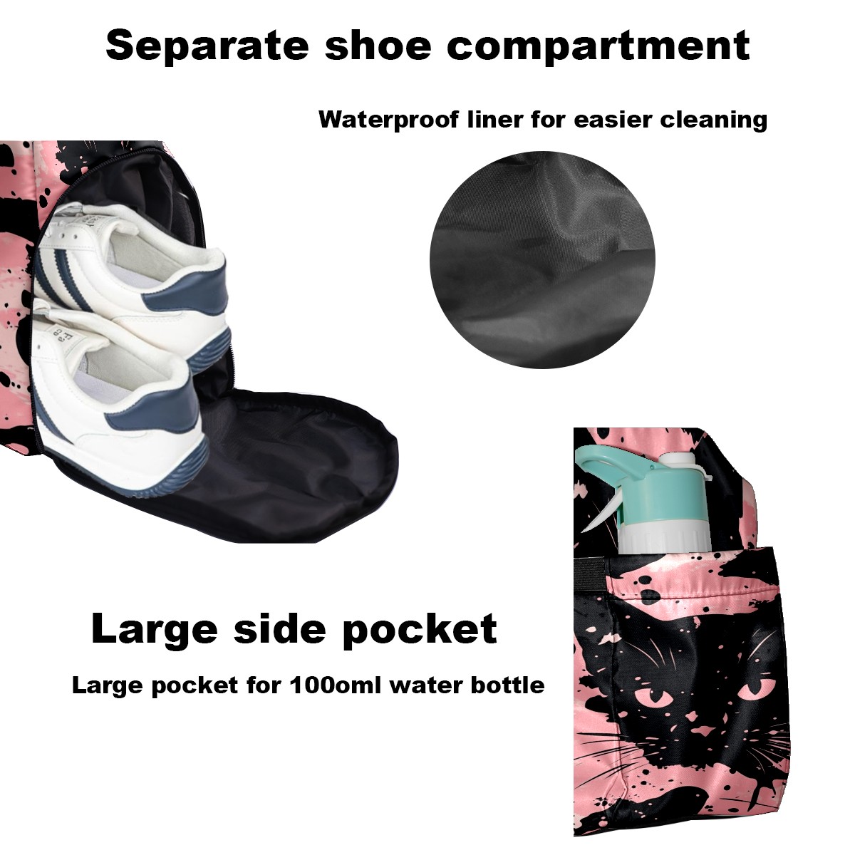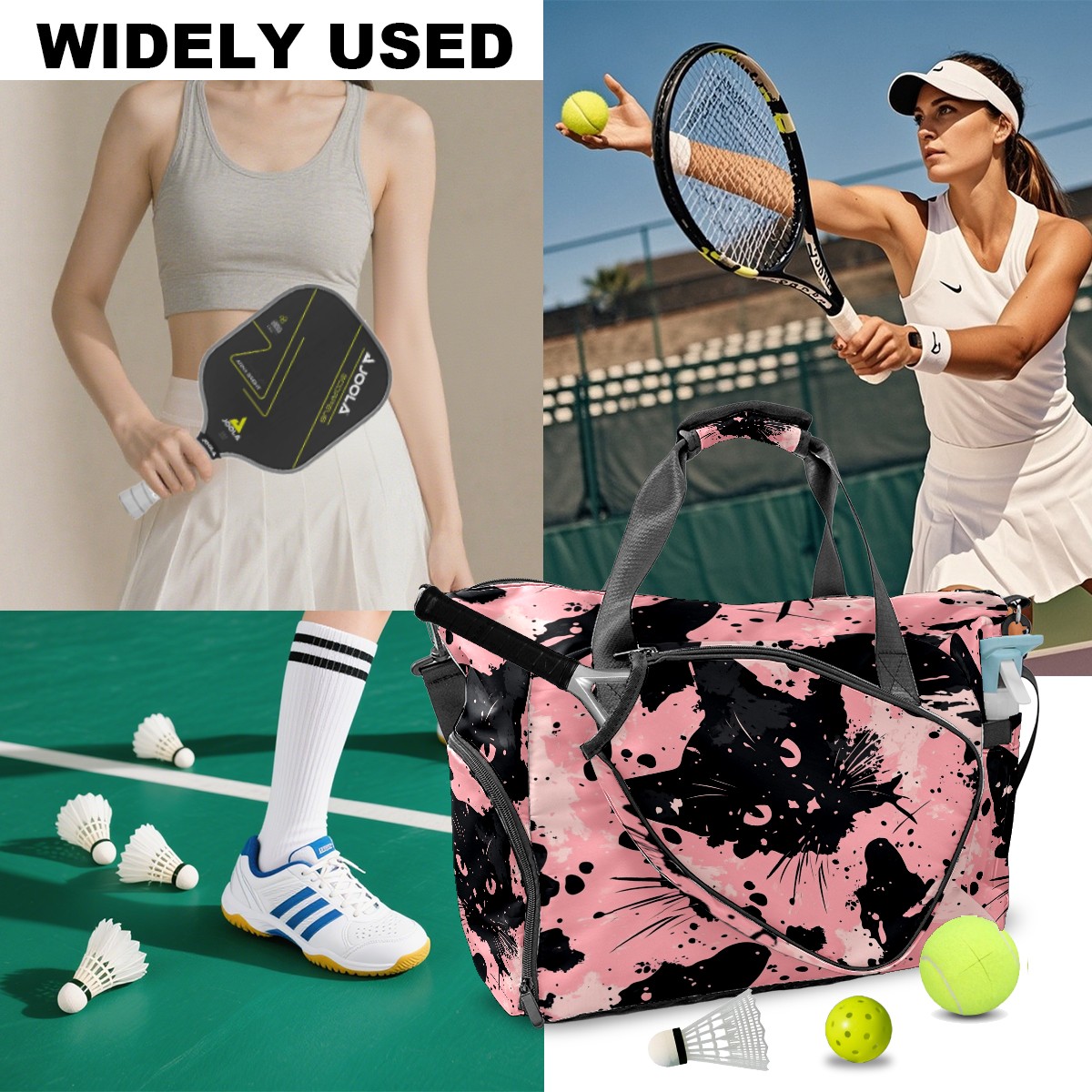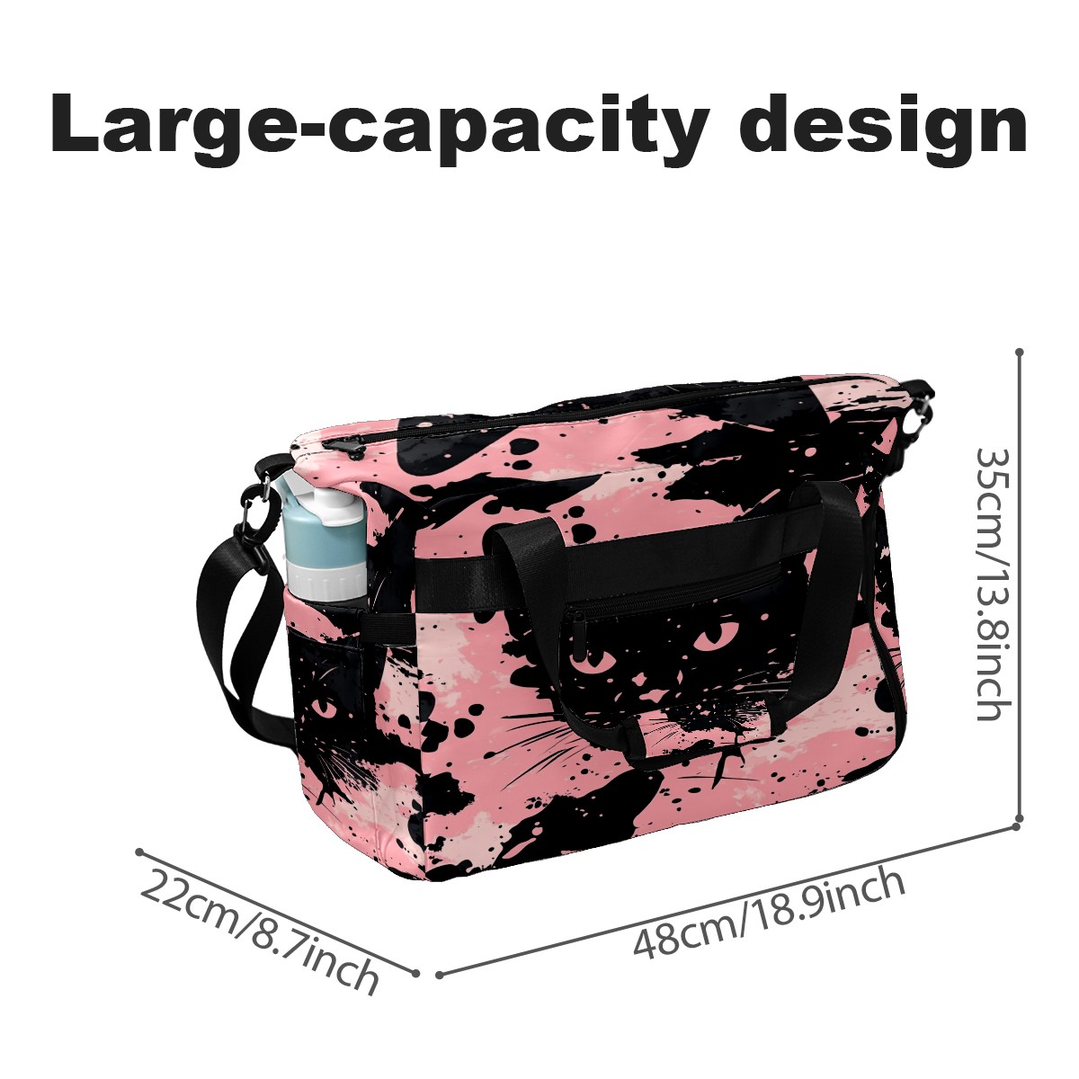 Tennis Bag Large, Camouflage Cat Black Multi-Functional Sports Duffel Bag with Ventilated Shoe Compartment & Wet Pocket, Gym Bag for Men Women, Fitness Yoga Tennis Travel Carryall Bag