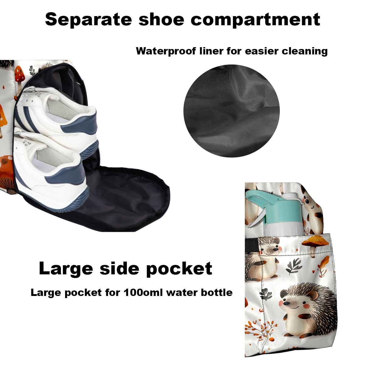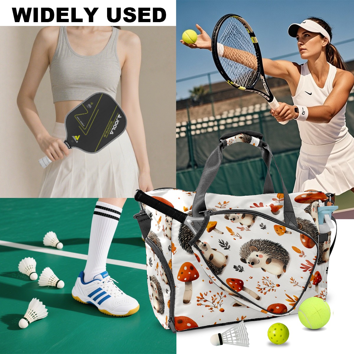 Tennis Bag Large, Hedgehog Brown Multi-Functional Sports Duffel Bag with Ventilated Shoe Compartment & Wet Pocket, Gym Bag for Men Women, Fitness Yoga Tennis Travel Carryall Bag