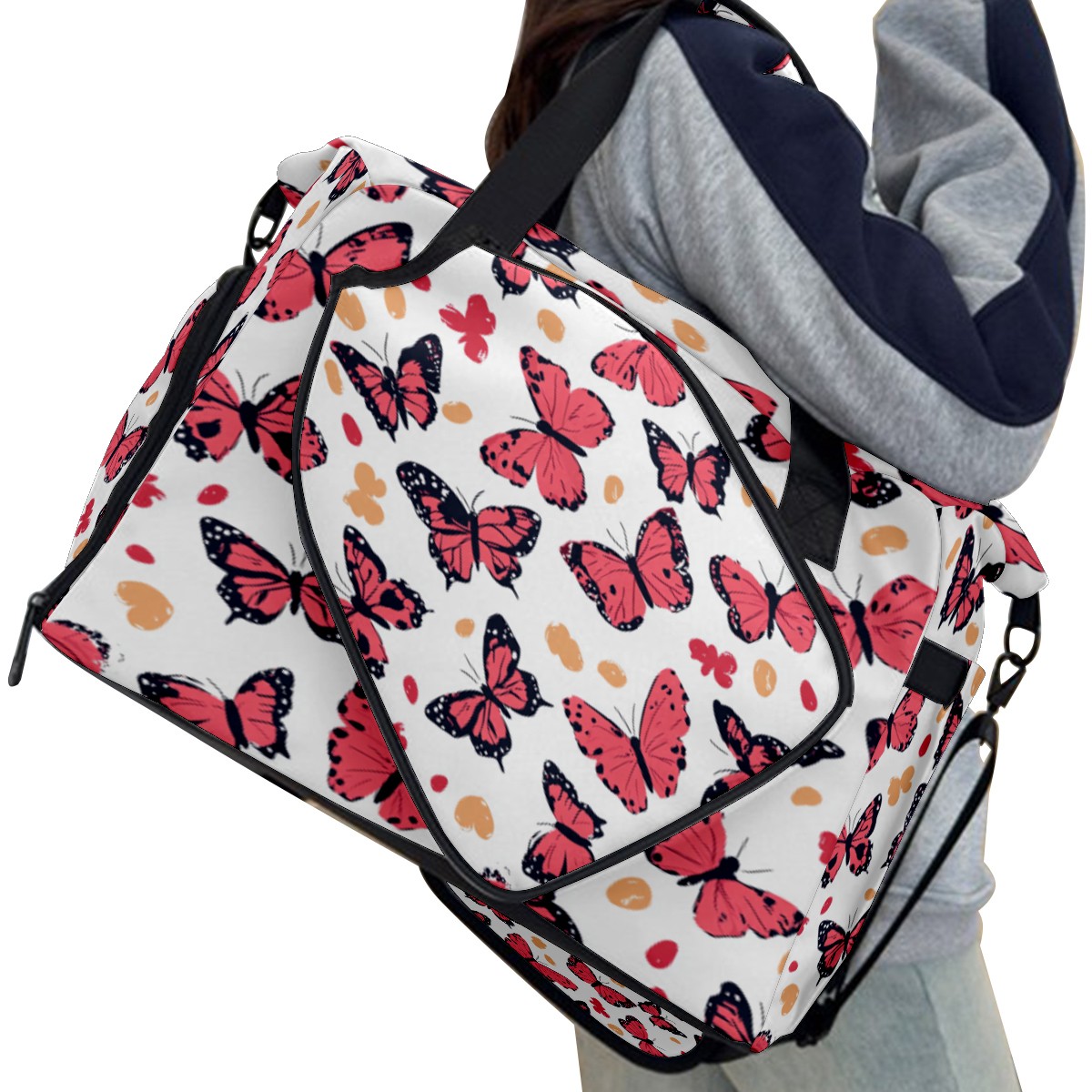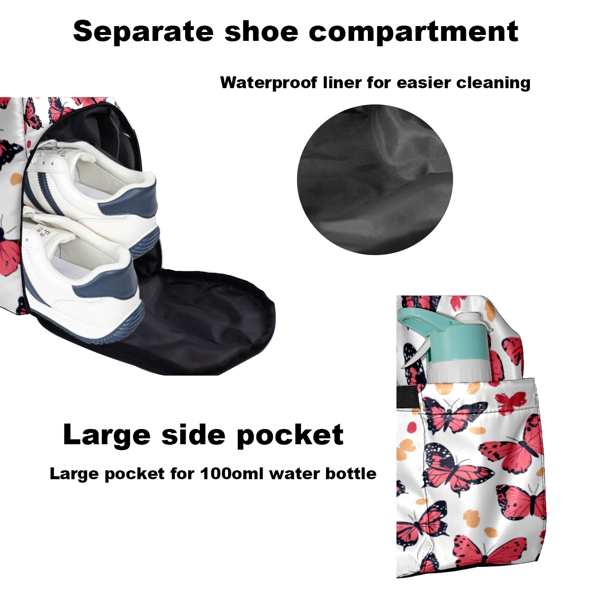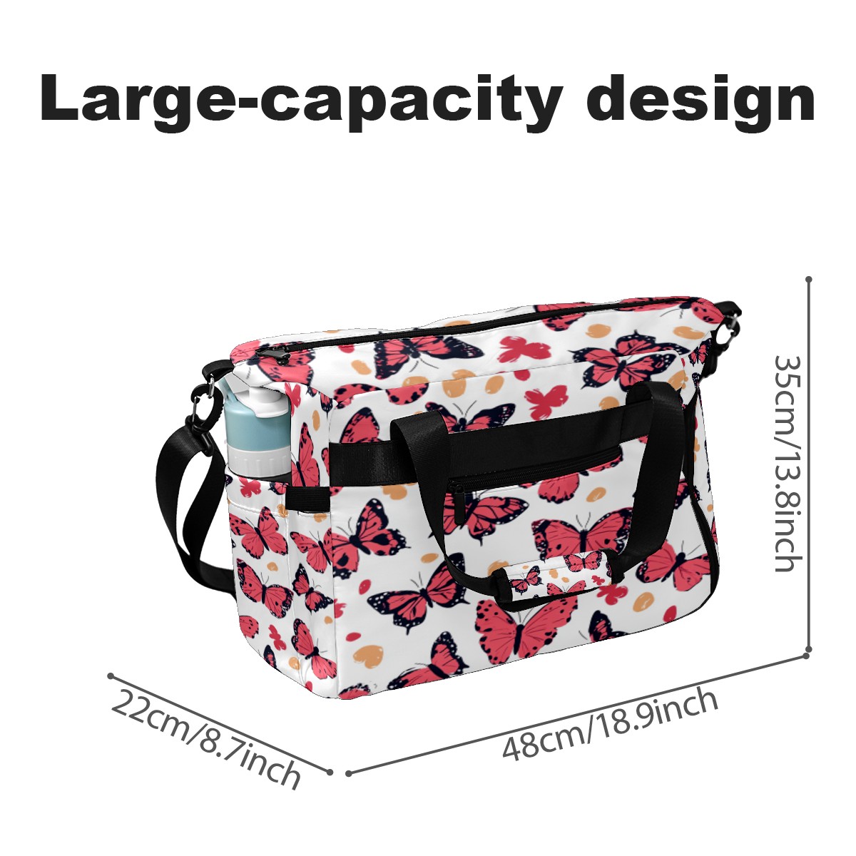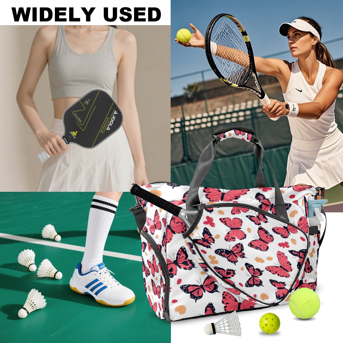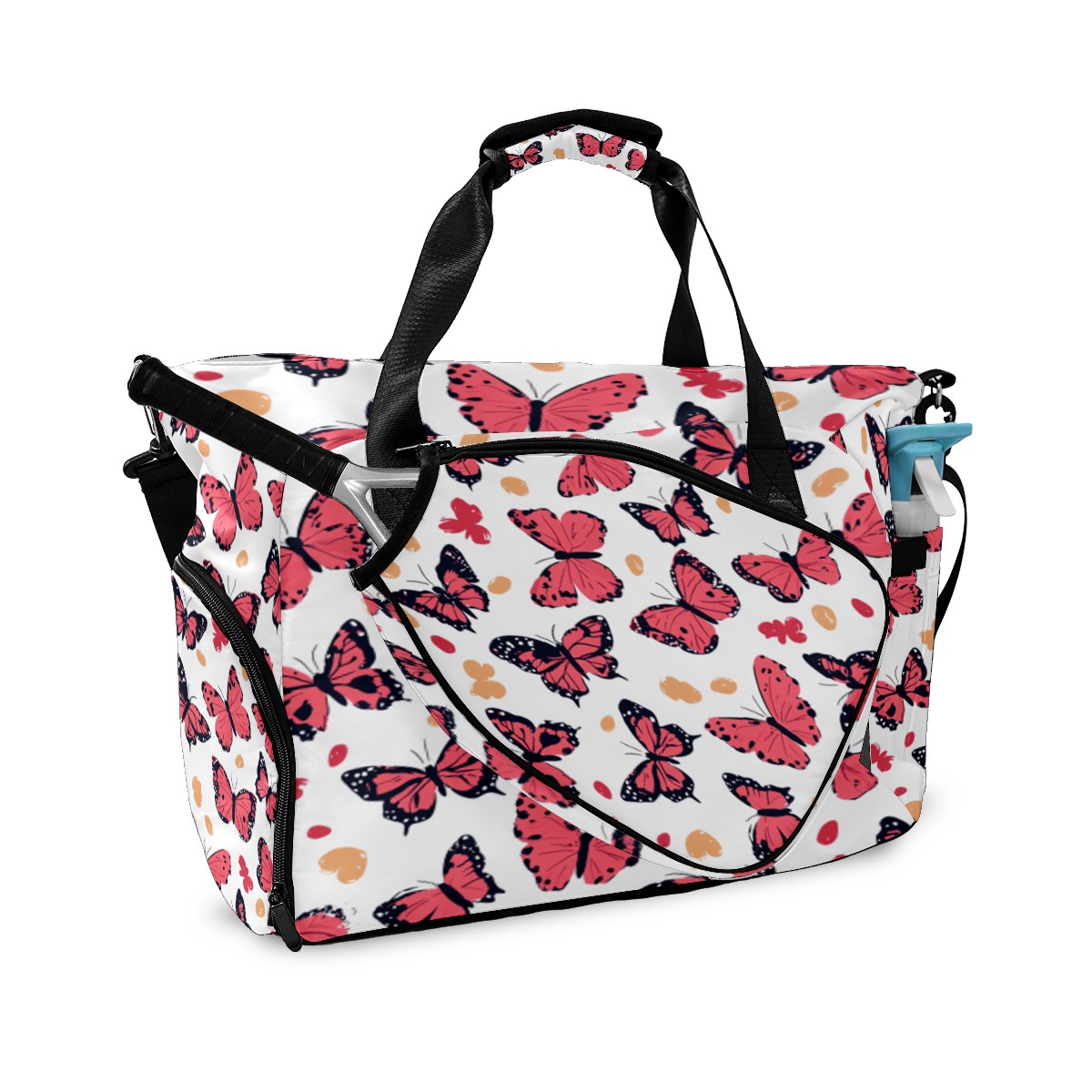Tennis Bag Large, Butterfly Pink Multi-Functional Sports Duffel Bag with Ventilated Shoe Compartment & Wet Pocket, Gym Bag for Men Women, Fitness Yoga Tennis Travel Carryall Bag