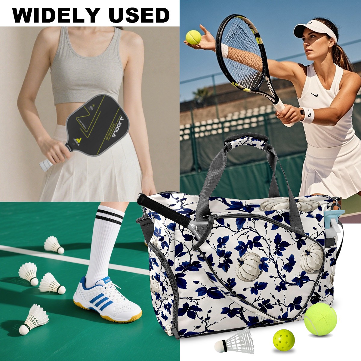 Tennis Bag Large, Vine Patterns Multi-Functional Sports Duffel Bag with Ventilated Shoe Compartment & Wet Pocket, Gym Bag for Men Women, Fitness Yoga Tennis Travel Carryall Bag