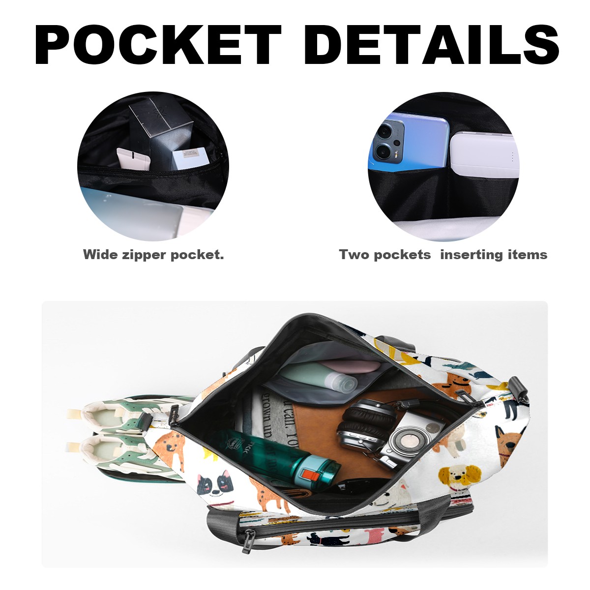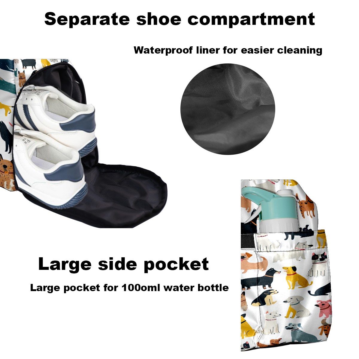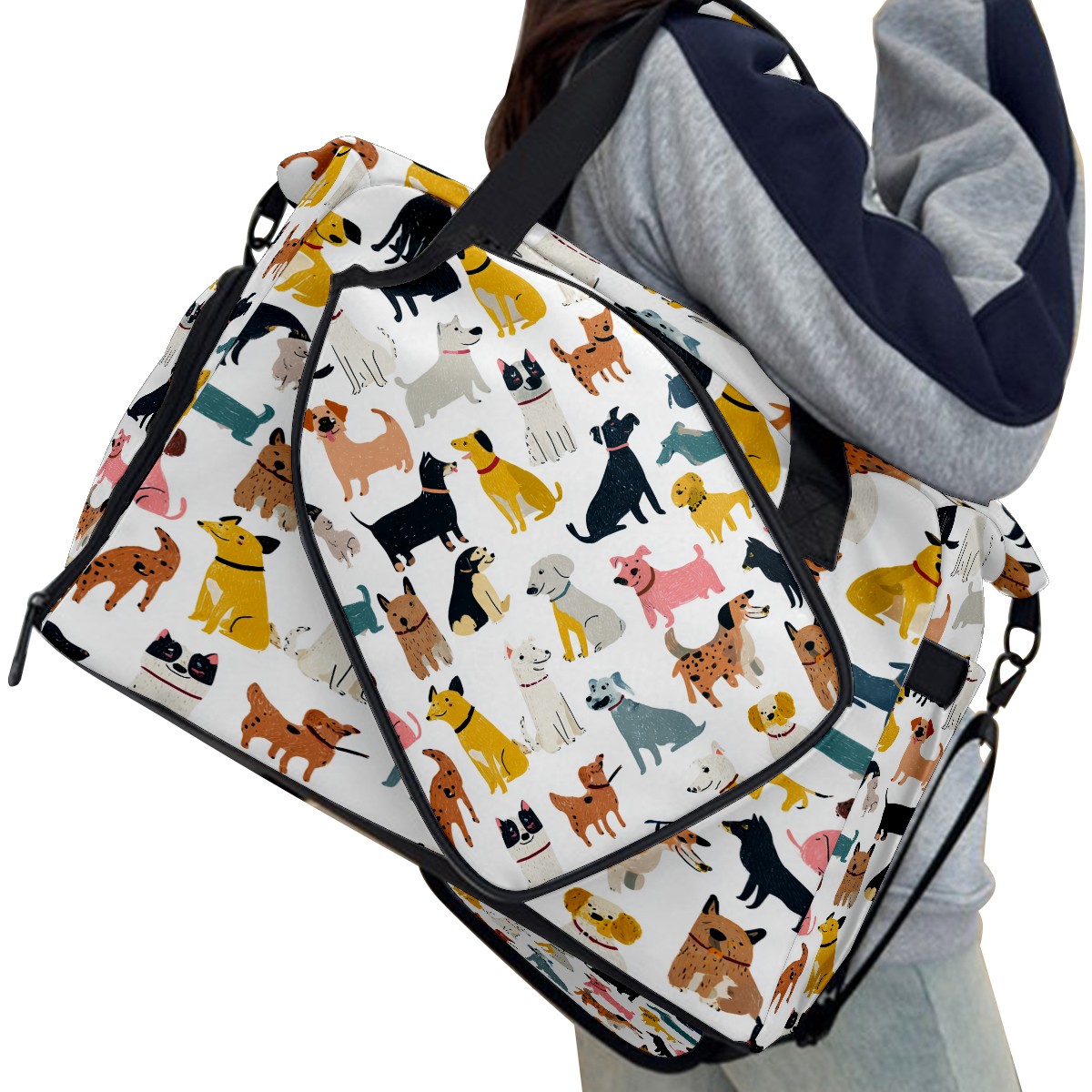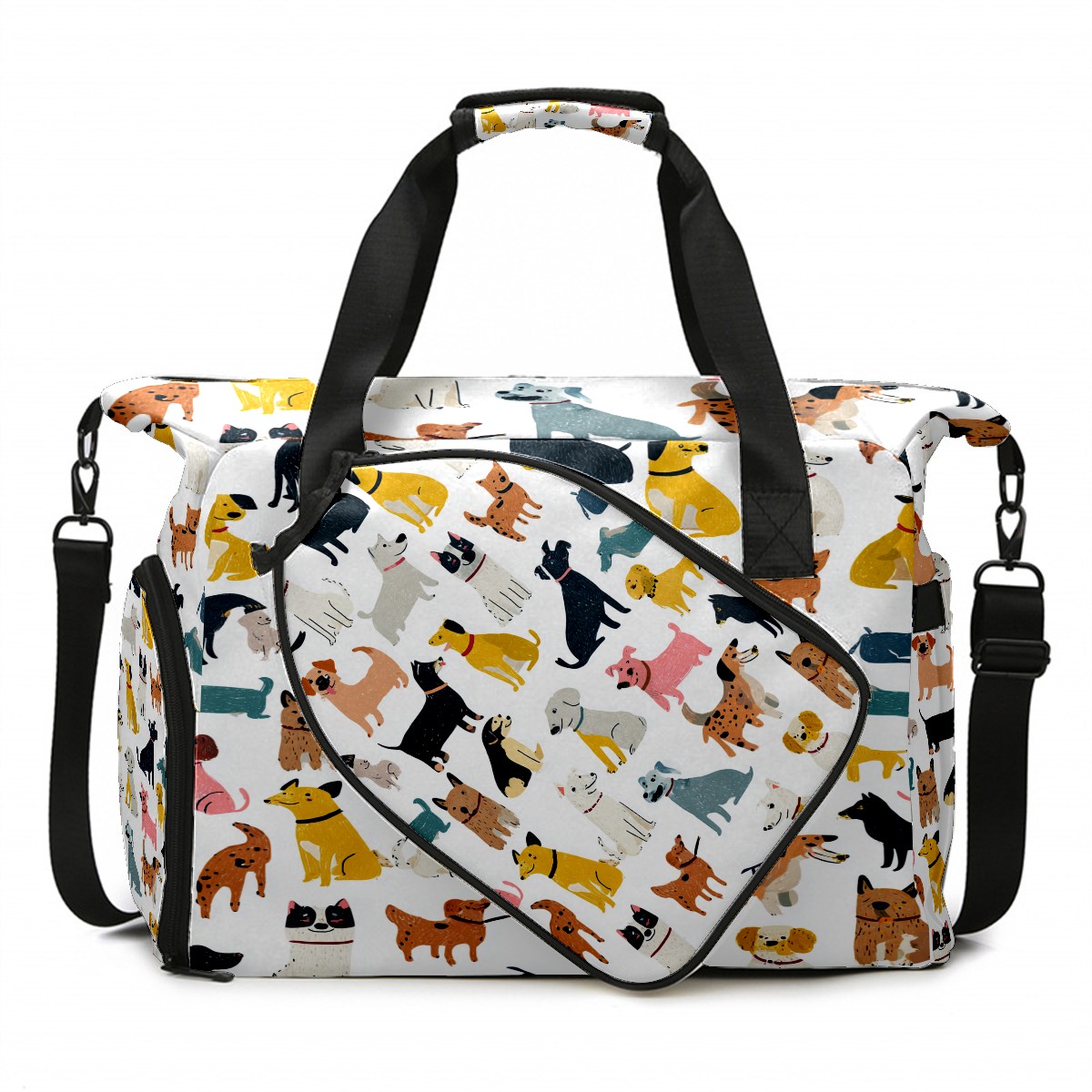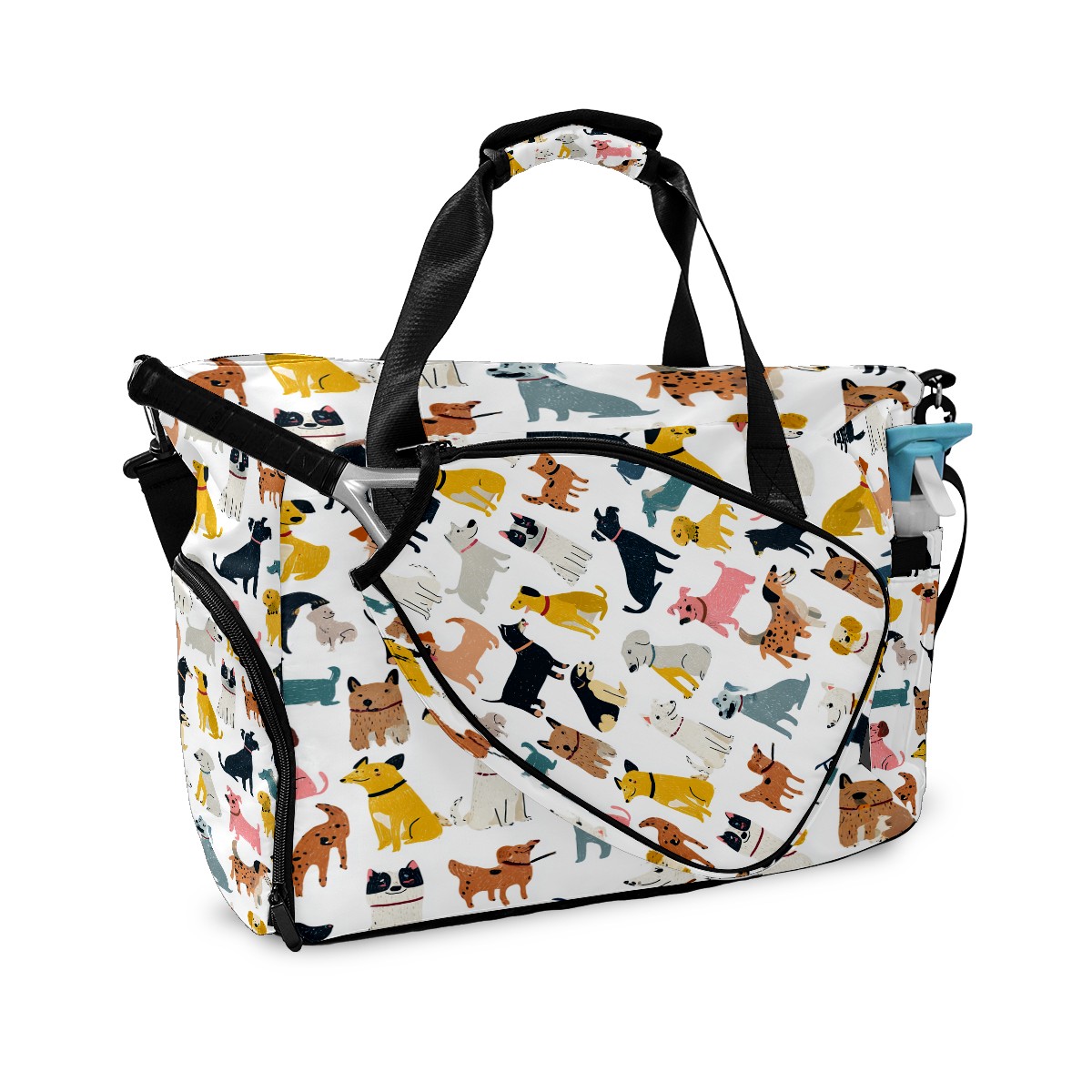 Tennis Bag Large, Dog While Multi-Functional Sports Duffel Bag with Ventilated Shoe Compartment & Wet Pocket, Gym Bag for Men Women, Fitness Yoga Tennis Travel Carryall Bag