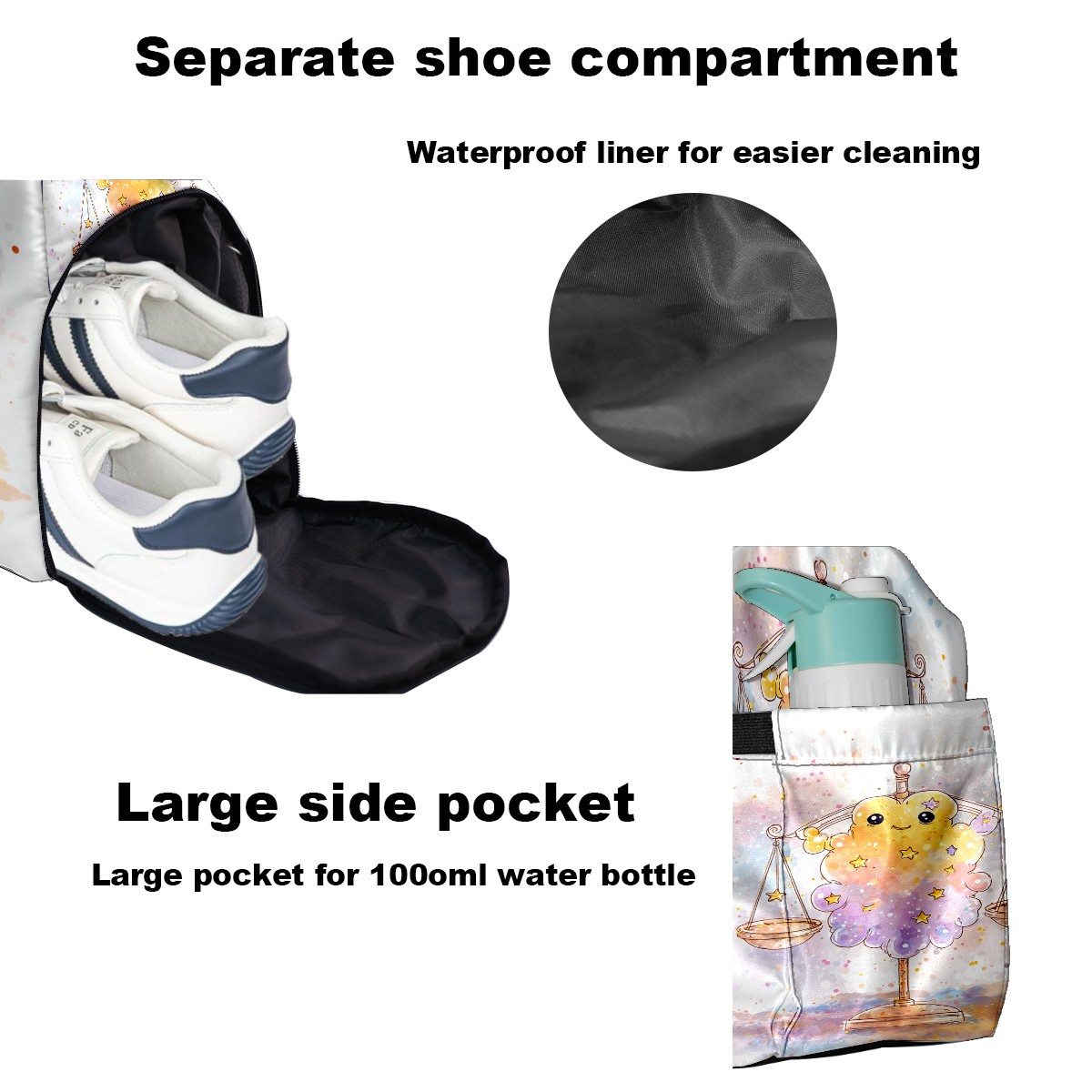 Large Gym Bag with Shoe Compartment, Water-Resistant Duffle Bag for Men and Women, Libra_LavenderPurple Sports Tote for Workout Travel