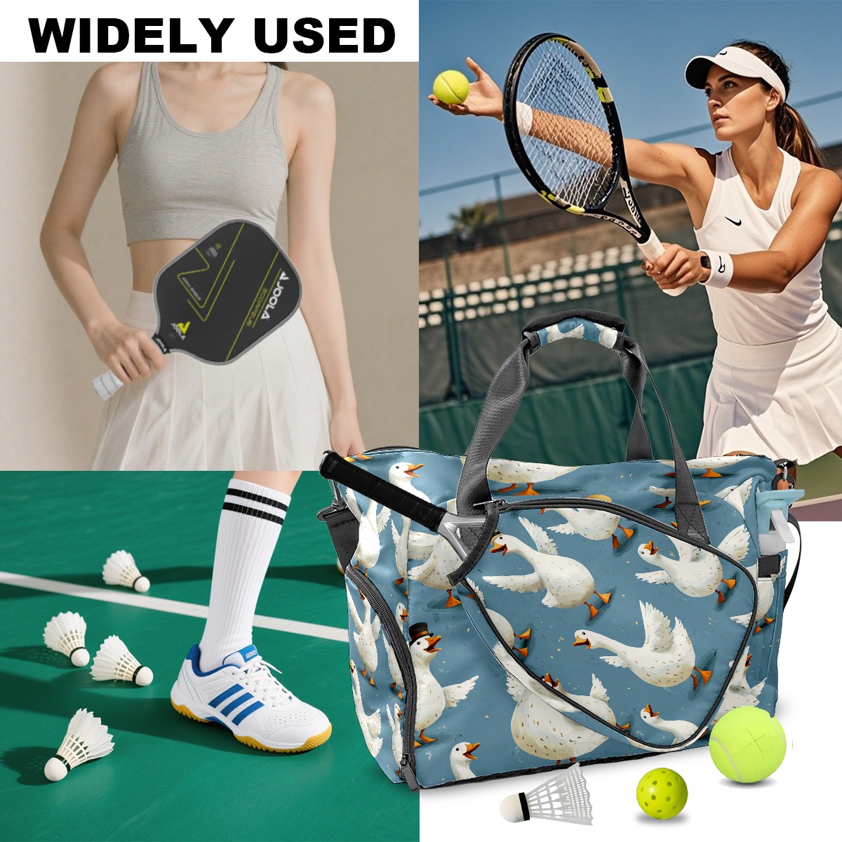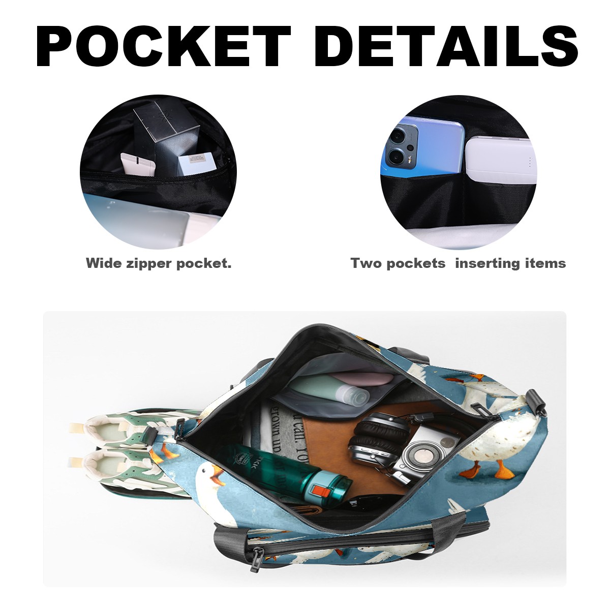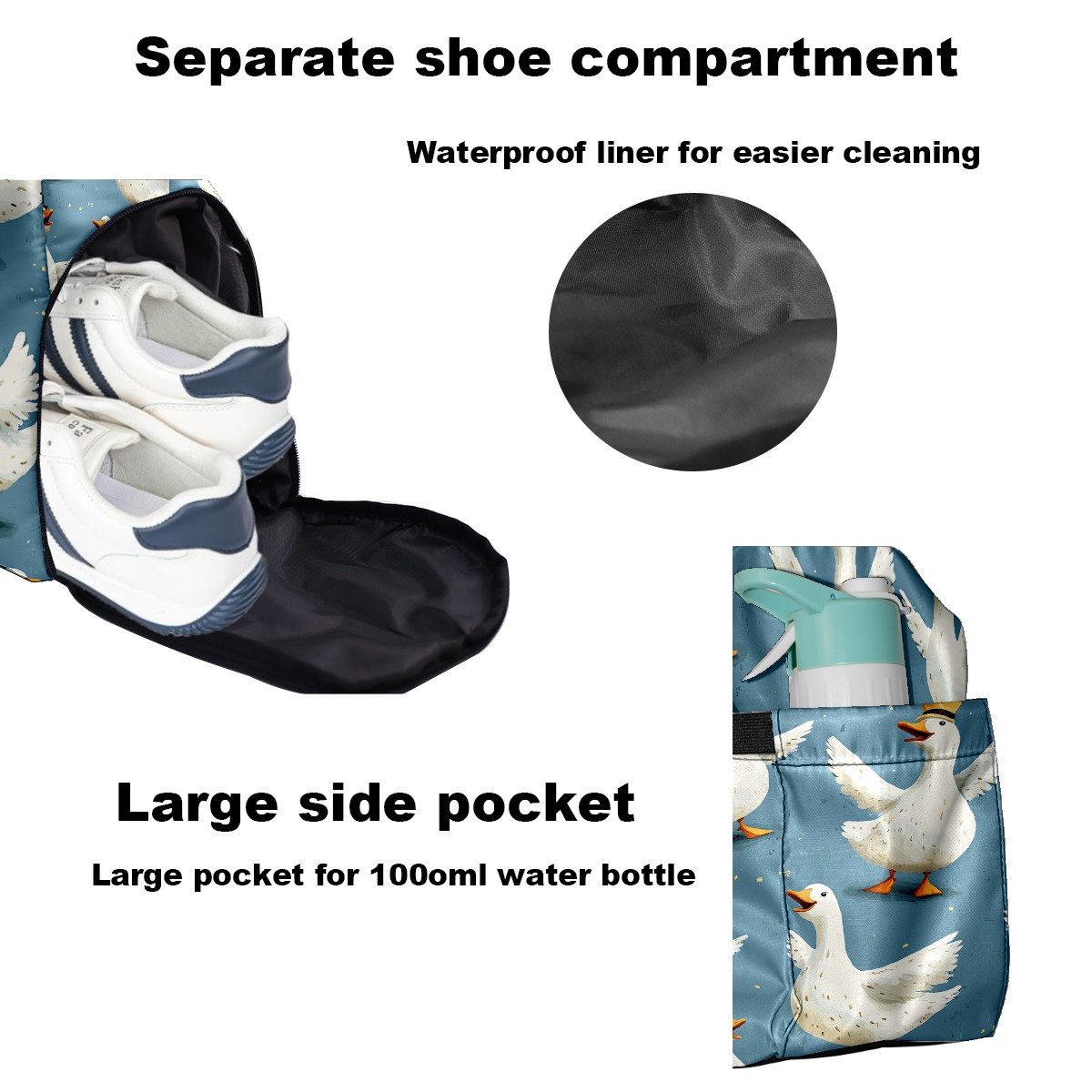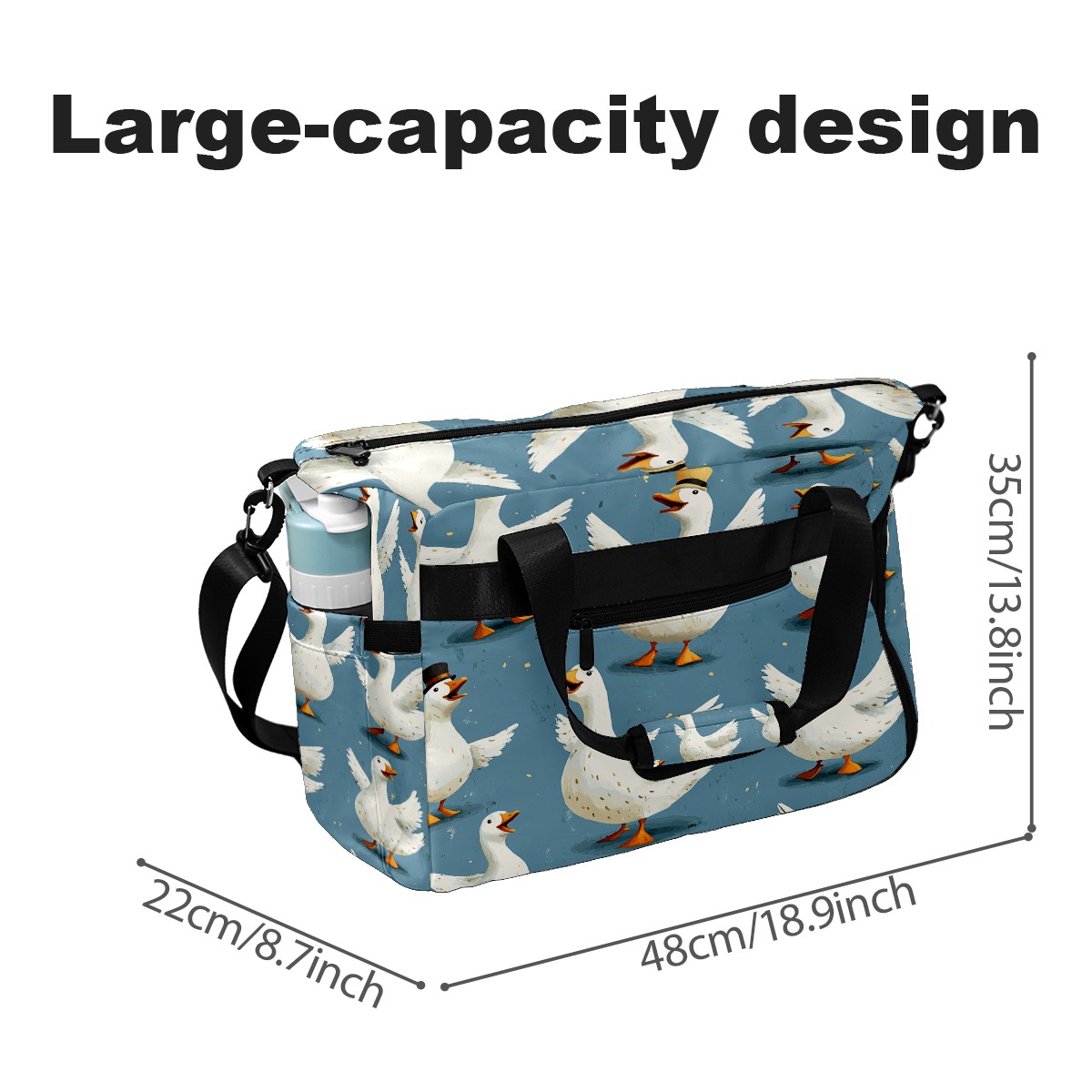 Large Gym Bag with Shoe Compartment, Water-Resistant Duffle Bag for Men and Women, Blue Background Silly Geese Sports Tote for Workout Travel