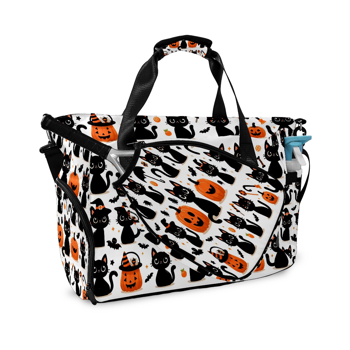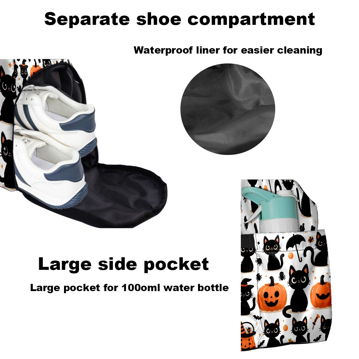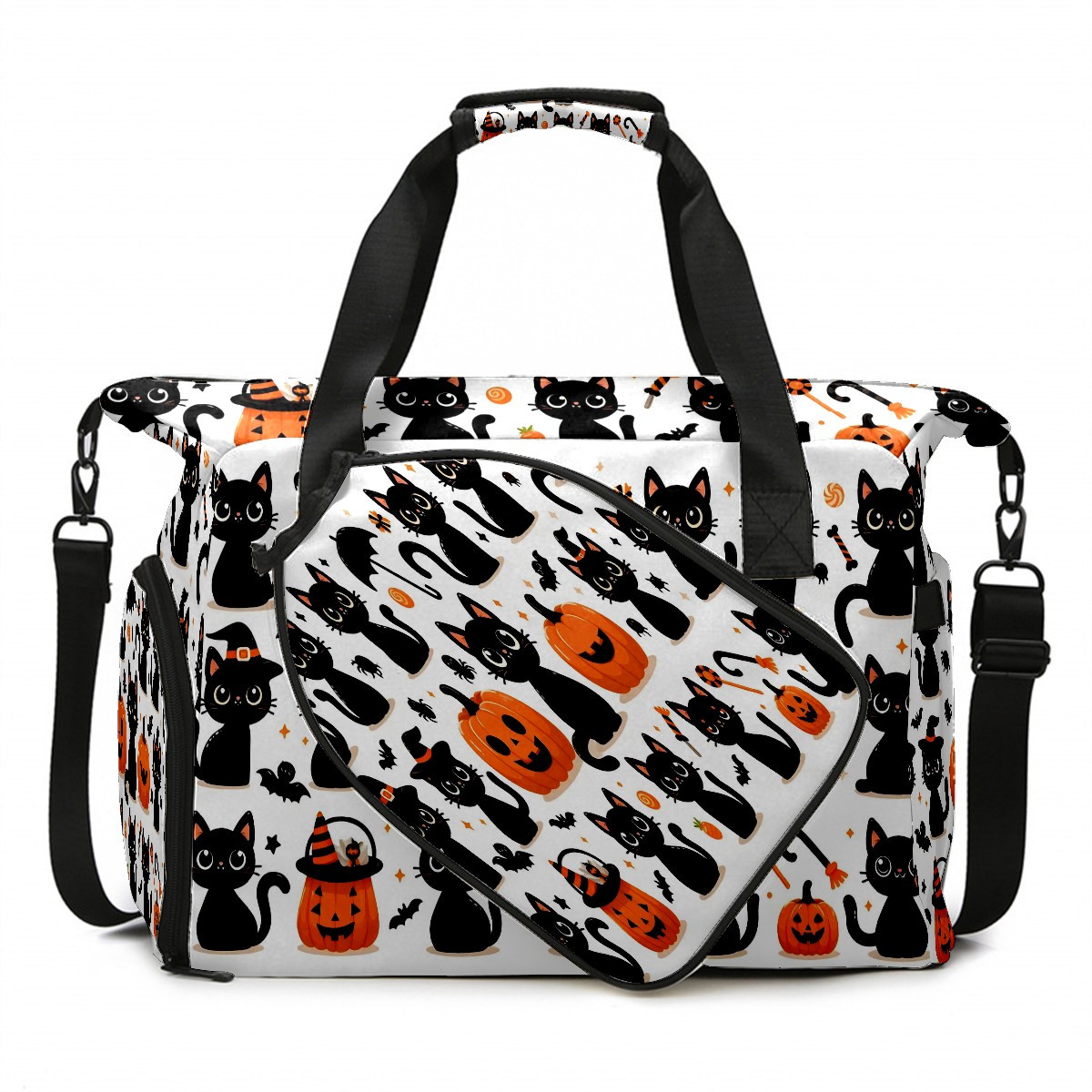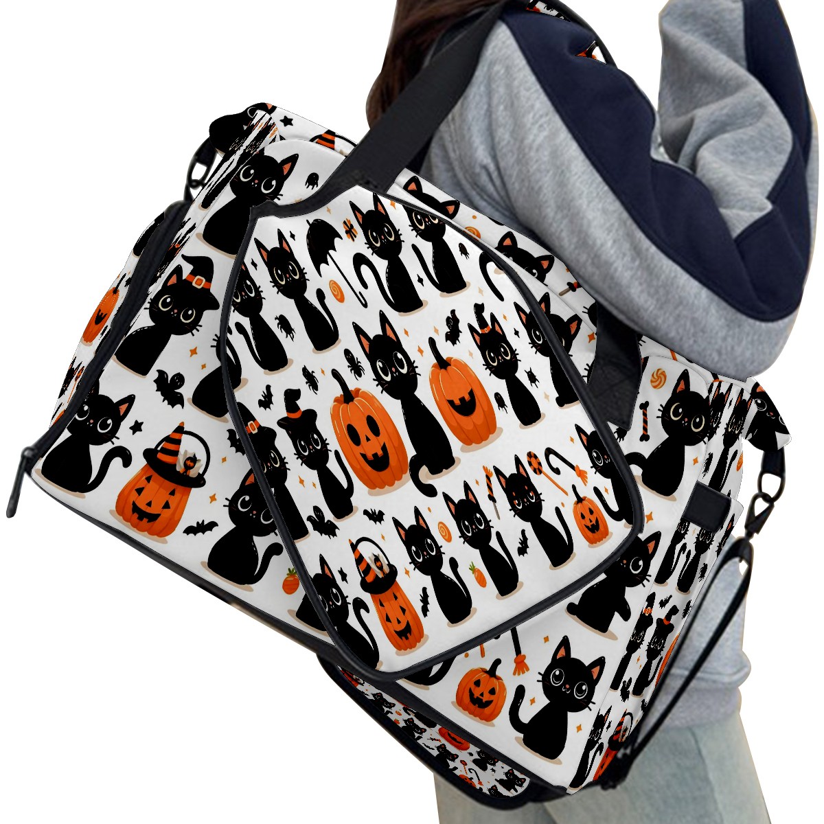 Large Gym Bag with Shoe Compartment, Water-Resistant Duffle Bag for Men and Women, Halloween Black Cats Pumpkins Horizontal Sports Tote for Workout Travel