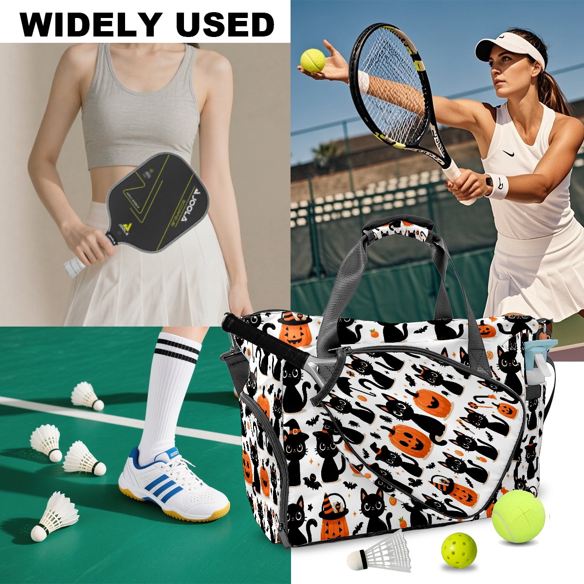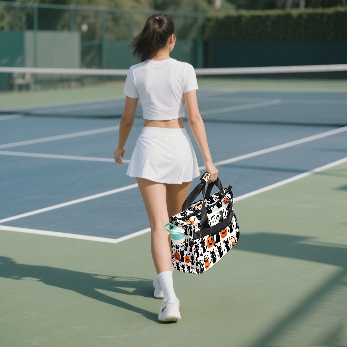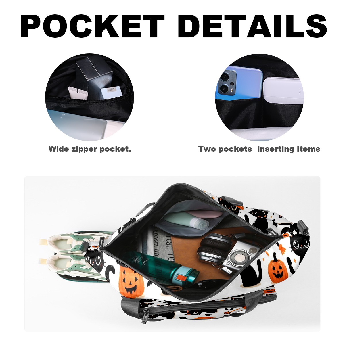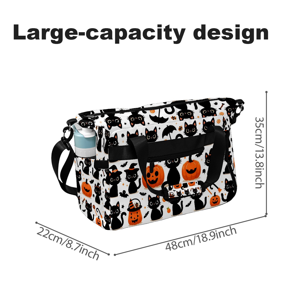 Large Gym Bag with Shoe Compartment, Water-Resistant Duffle Bag for Men and Women, Halloween Black Cats Pumpkins Horizontal Sports Tote for Workout Travel