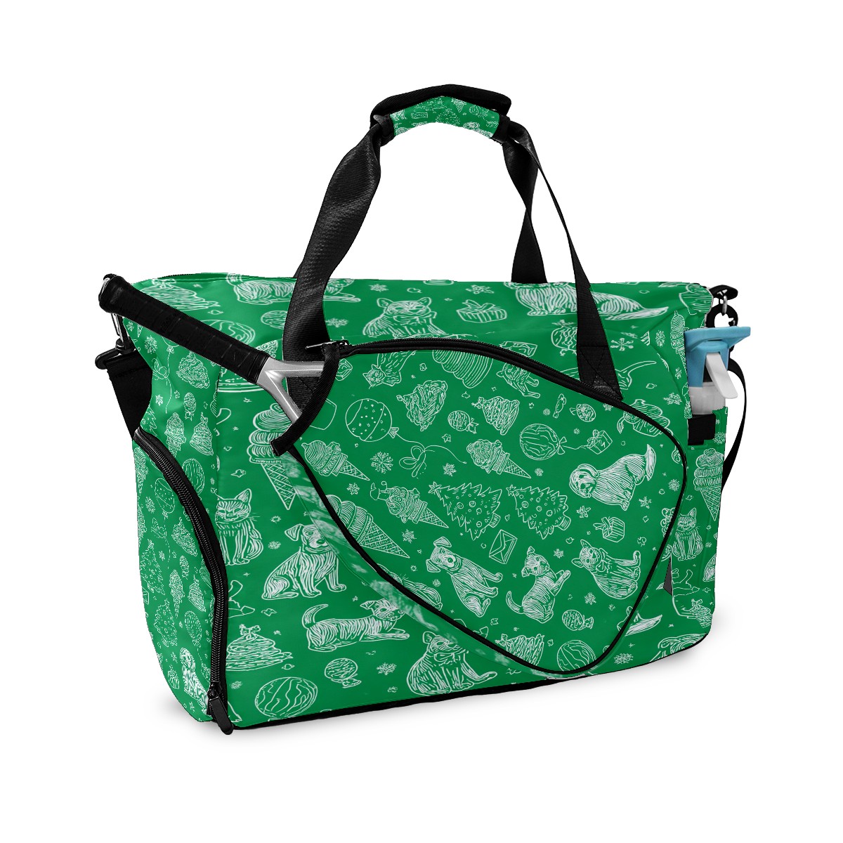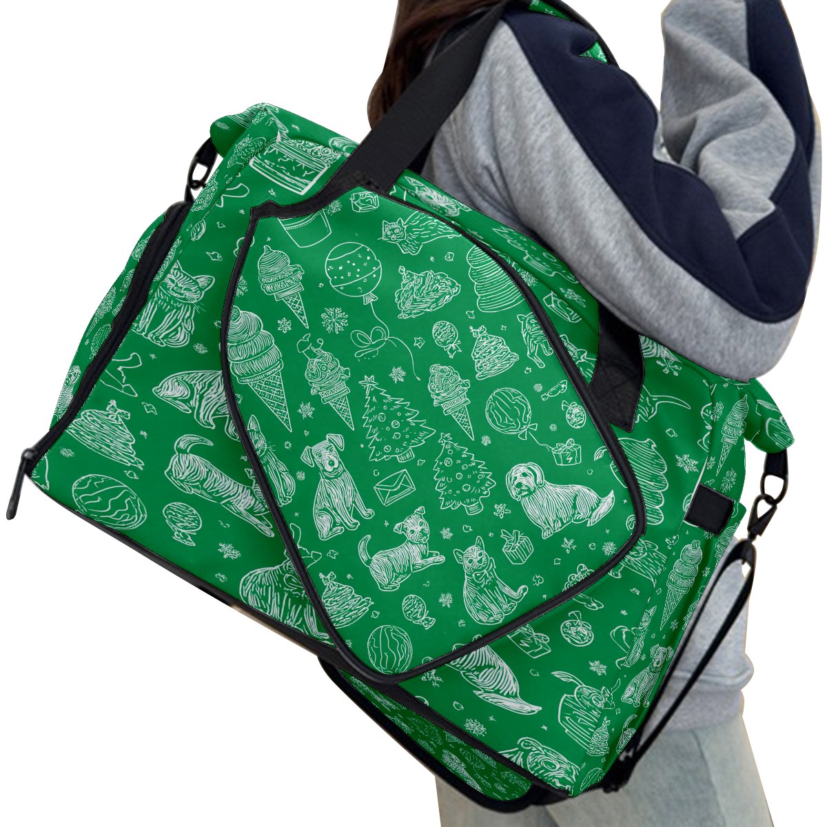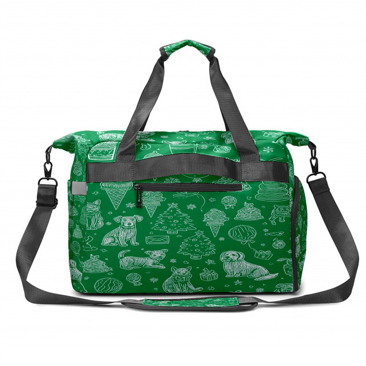Large Gym Bag with Shoe Compartment, Water-Resistant Duffle Bag for Men and Women, Green Background Pet Christmas Sports Tote for Workout Travel