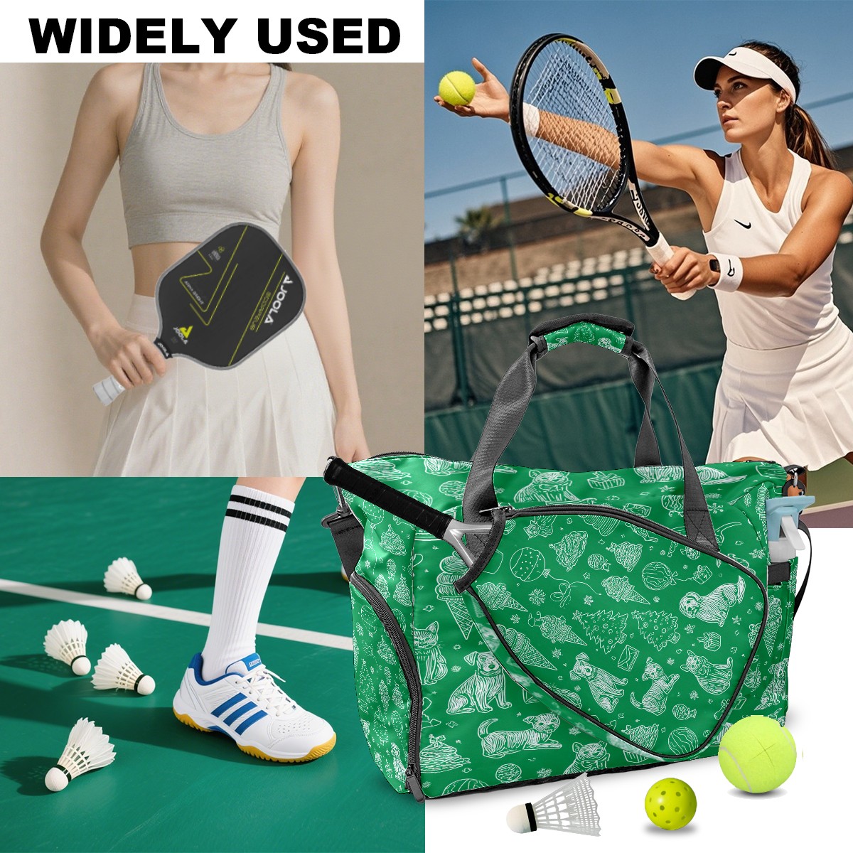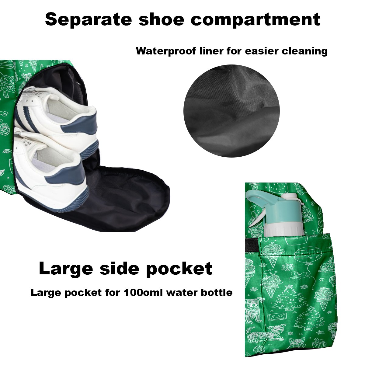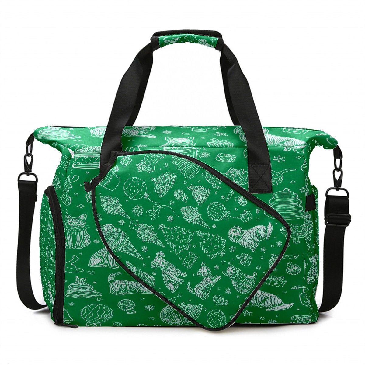 Large Gym Bag with Shoe Compartment, Water-Resistant Duffle Bag for Men and Women, Green Background Pet Christmas Sports Tote for Workout Travel