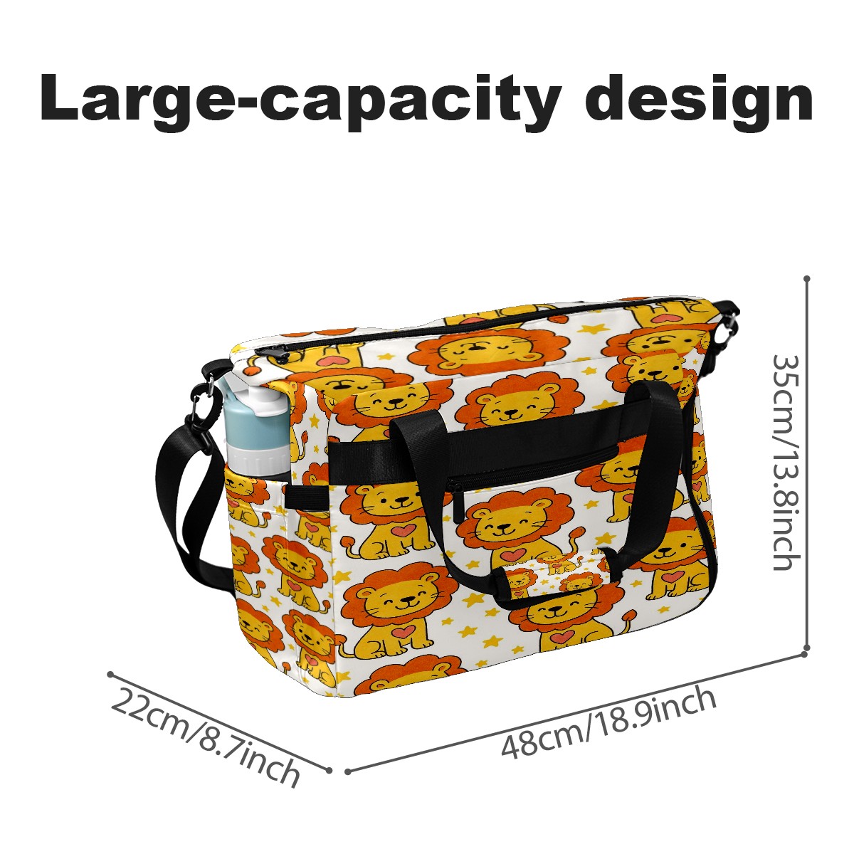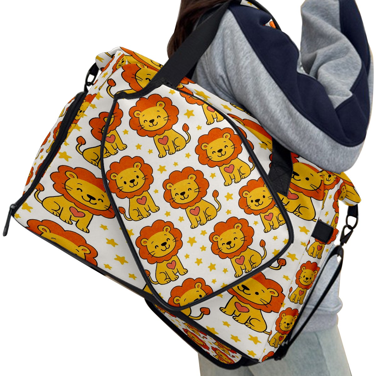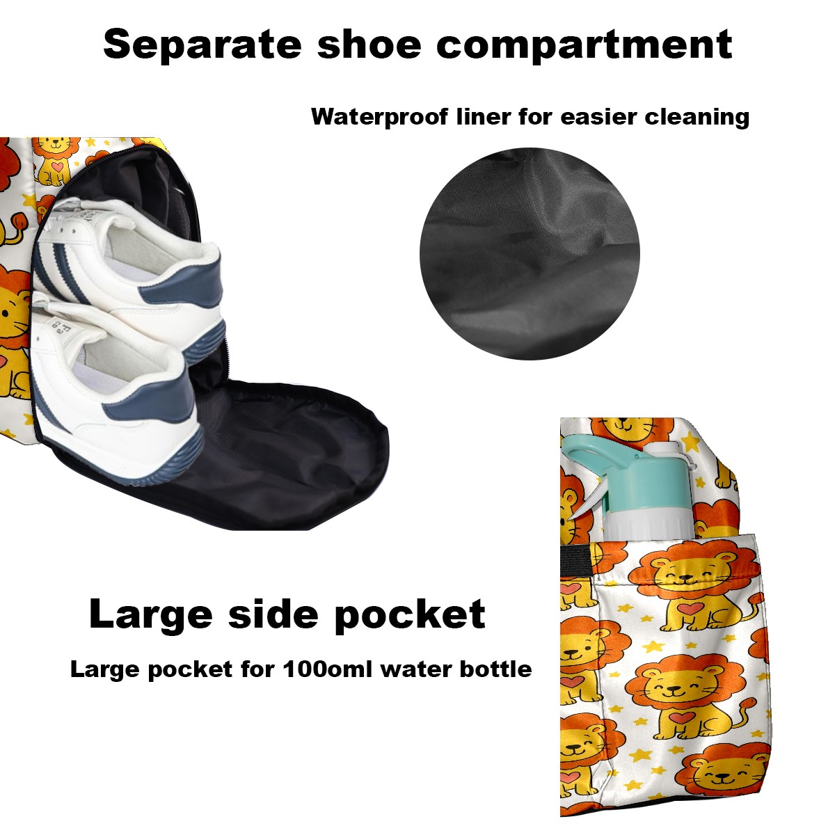 Large Gym Bag with Shoe Compartment, Water-Resistant Duffle Bag for Men and Women, Yellow Background Lion Group Sports Tote for Workout Travel