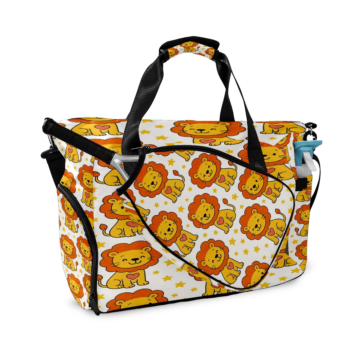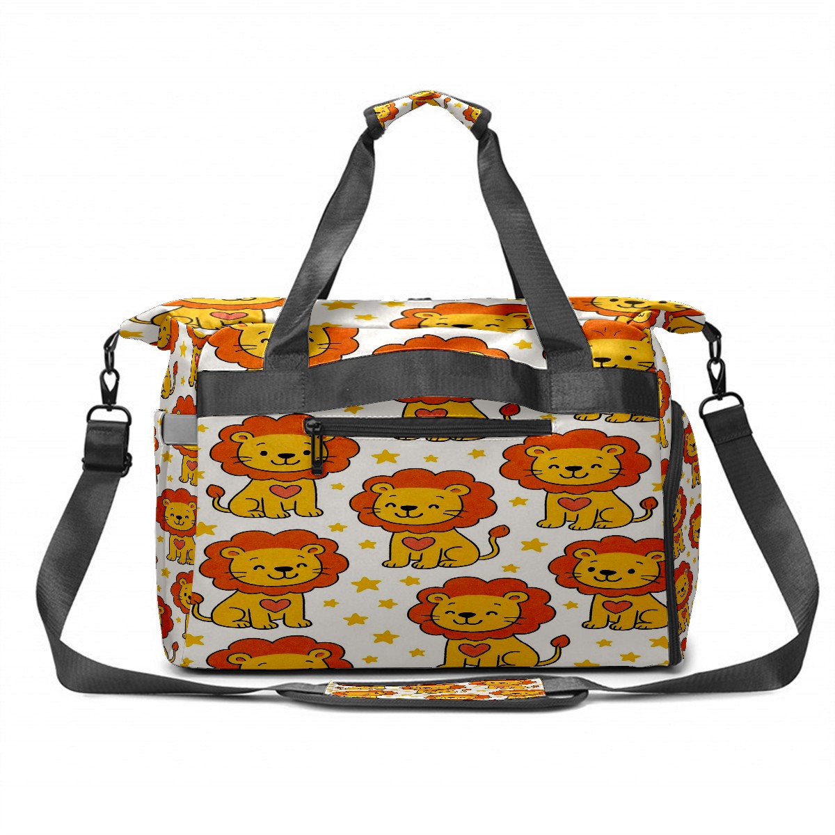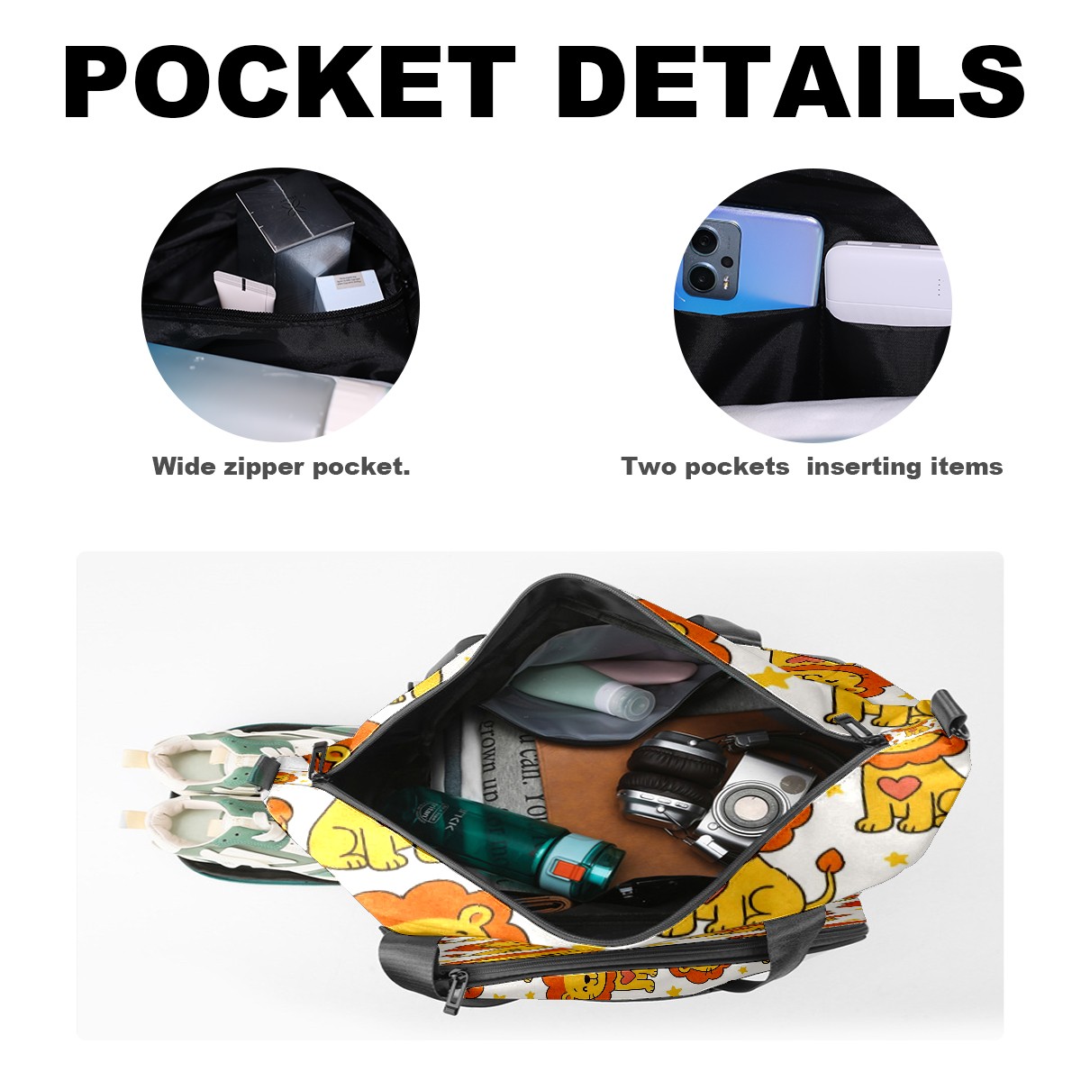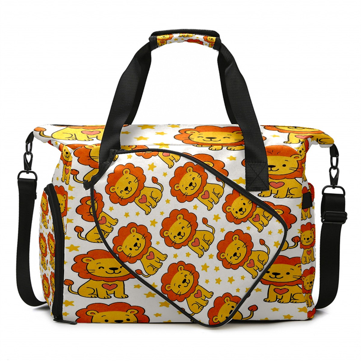 Large Gym Bag with Shoe Compartment, Water-Resistant Duffle Bag for Men and Women, Yellow Background Lion Group Sports Tote for Workout Travel