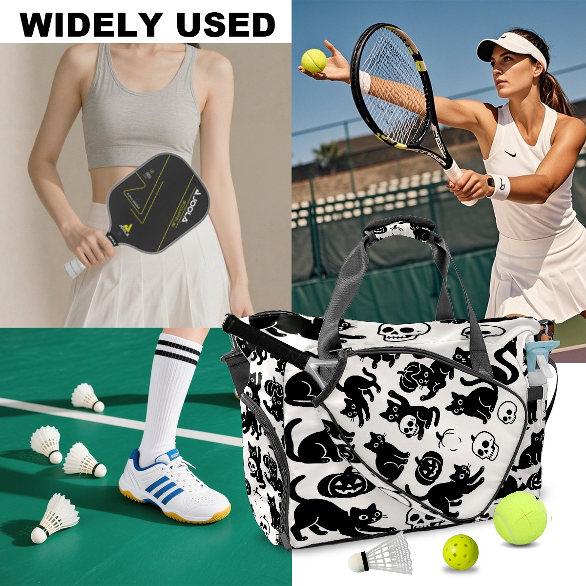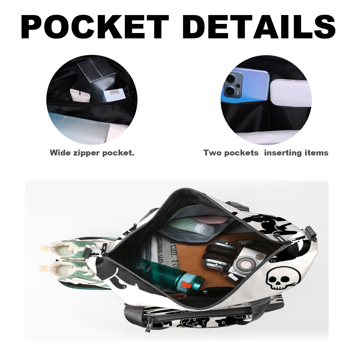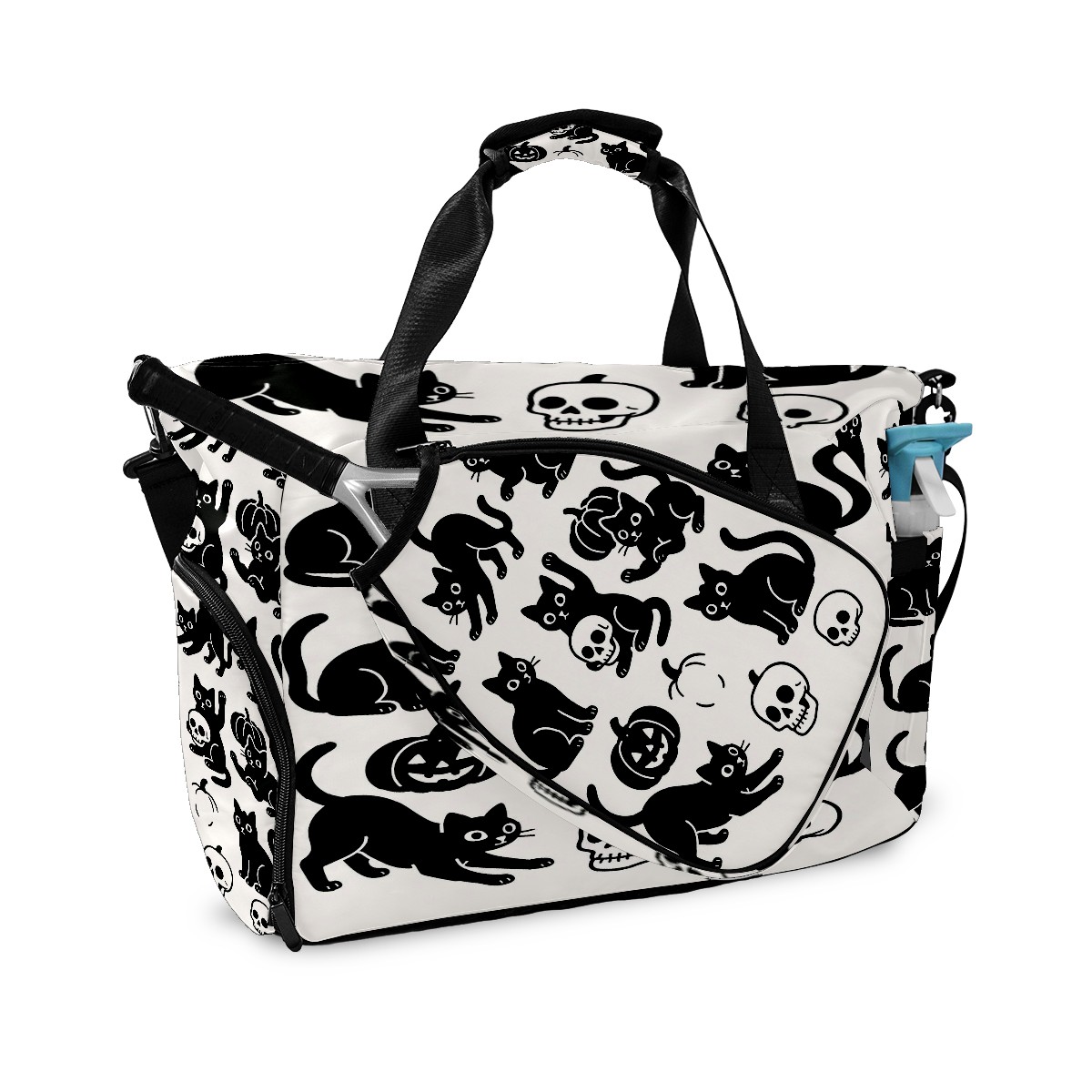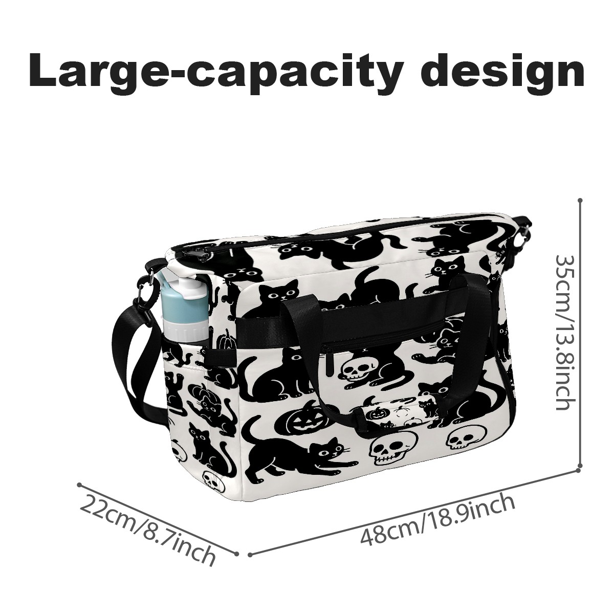 Large Gym Bag with Shoe Compartment, Water-Resistant Duffle Bag for Men and Women, Halloween Black Cats Skulls Sports Tote for Workout Travel