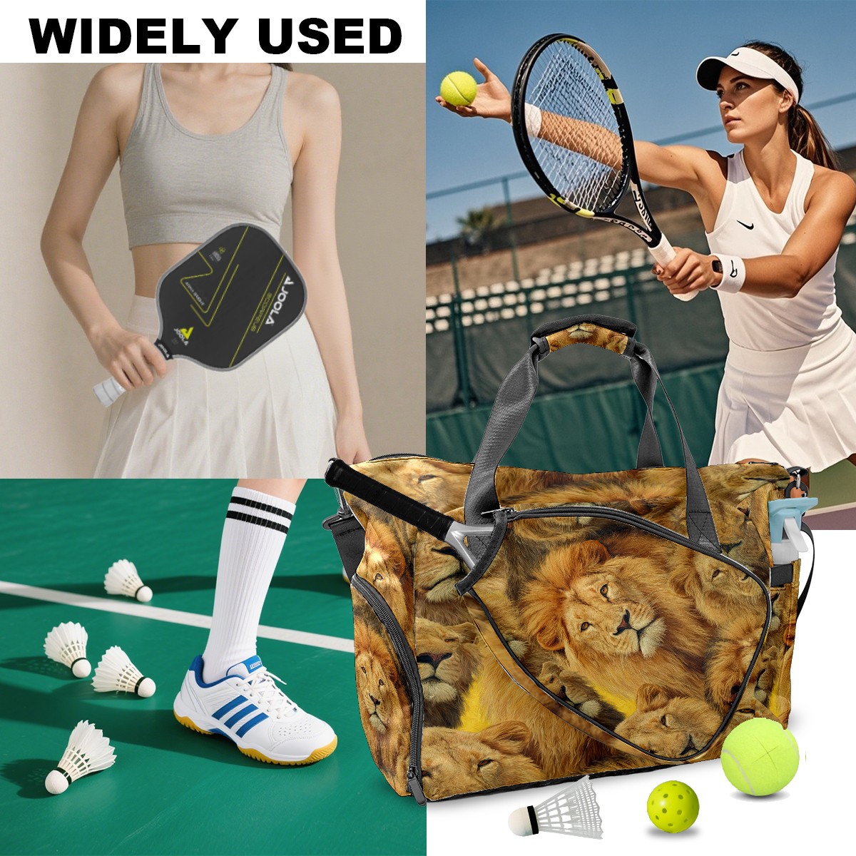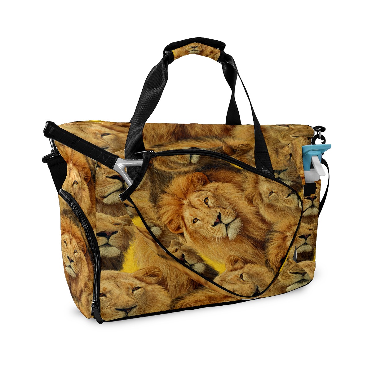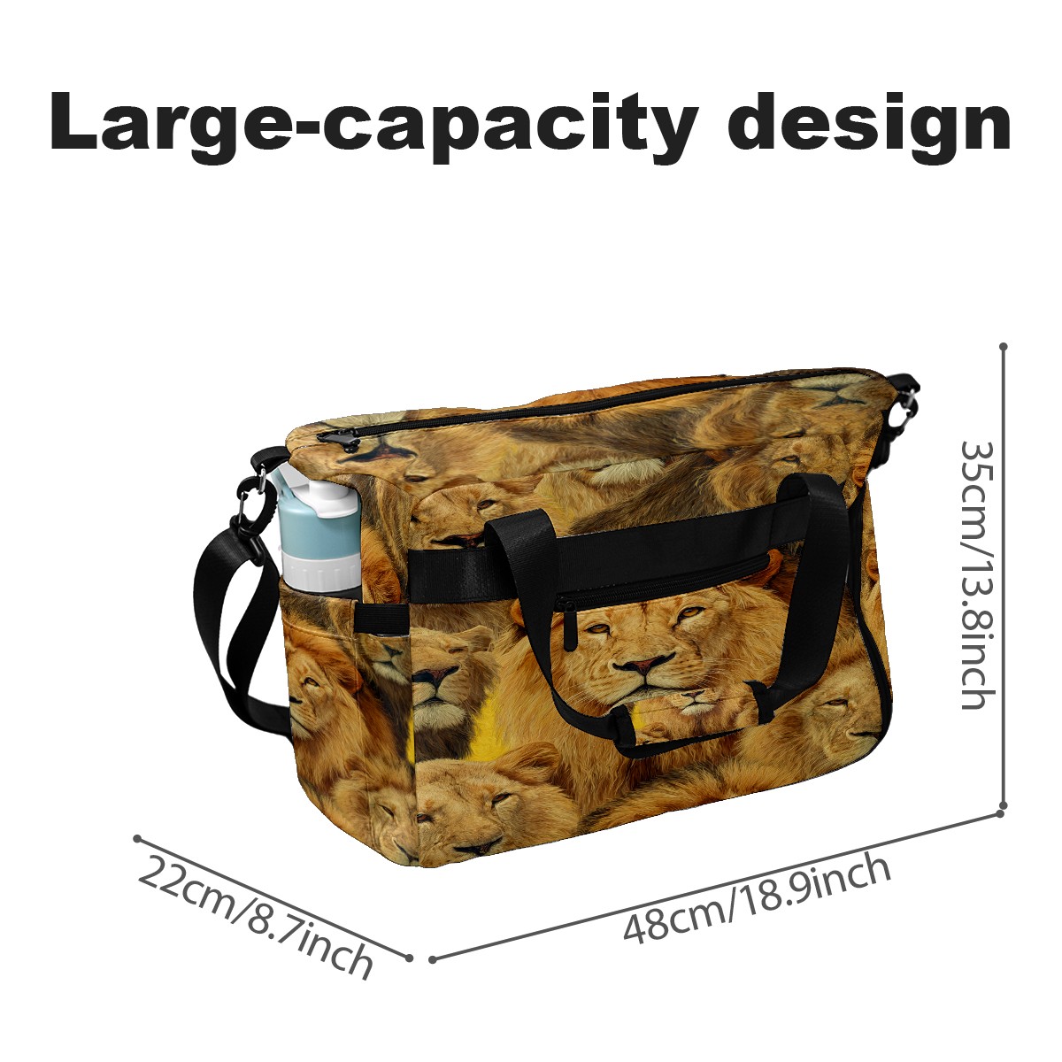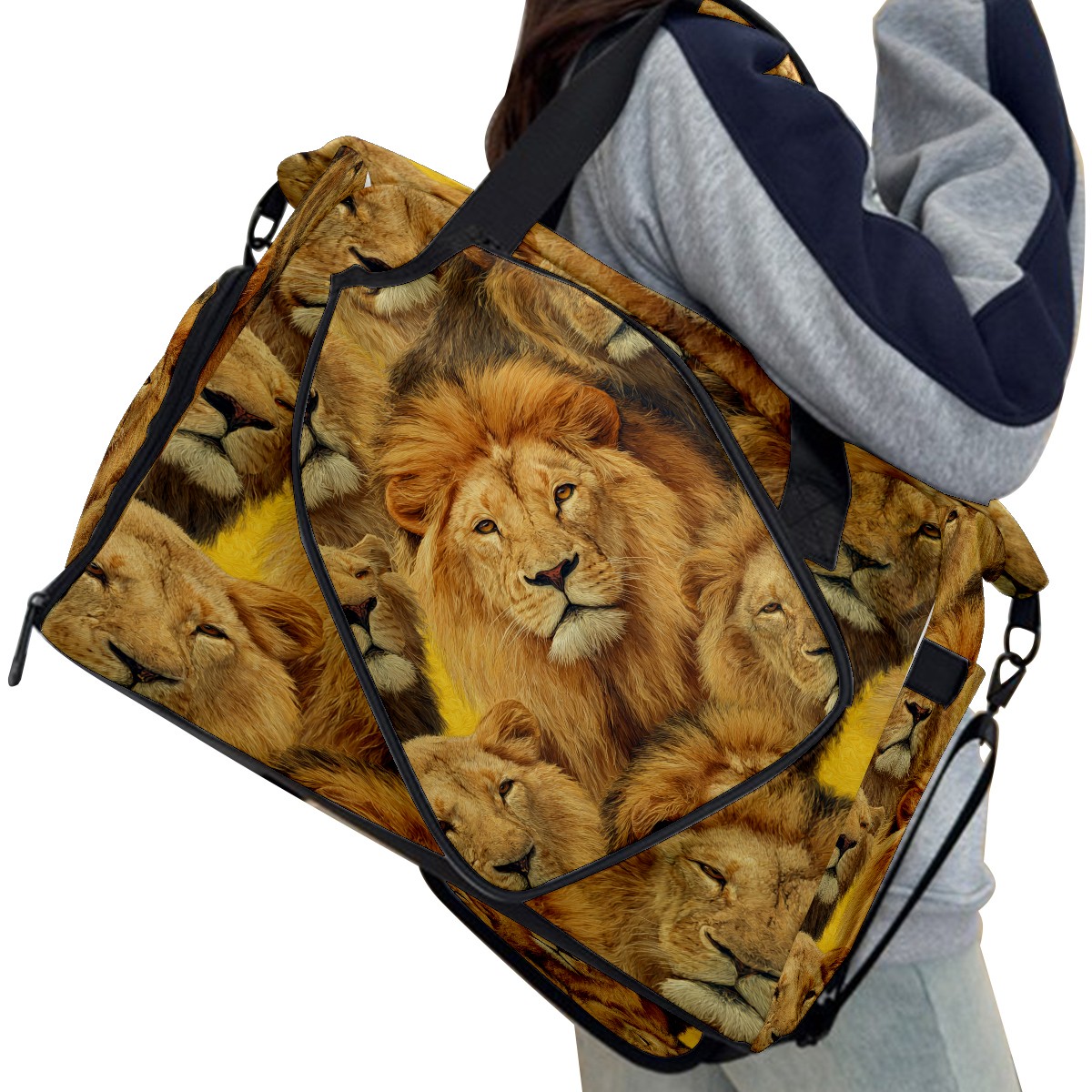 Large Gym Bag with Shoe Compartment, Water-Resistant Duffle Bag for Men and Women, Brown Background Lion Group Sports Tote for Workout Travel