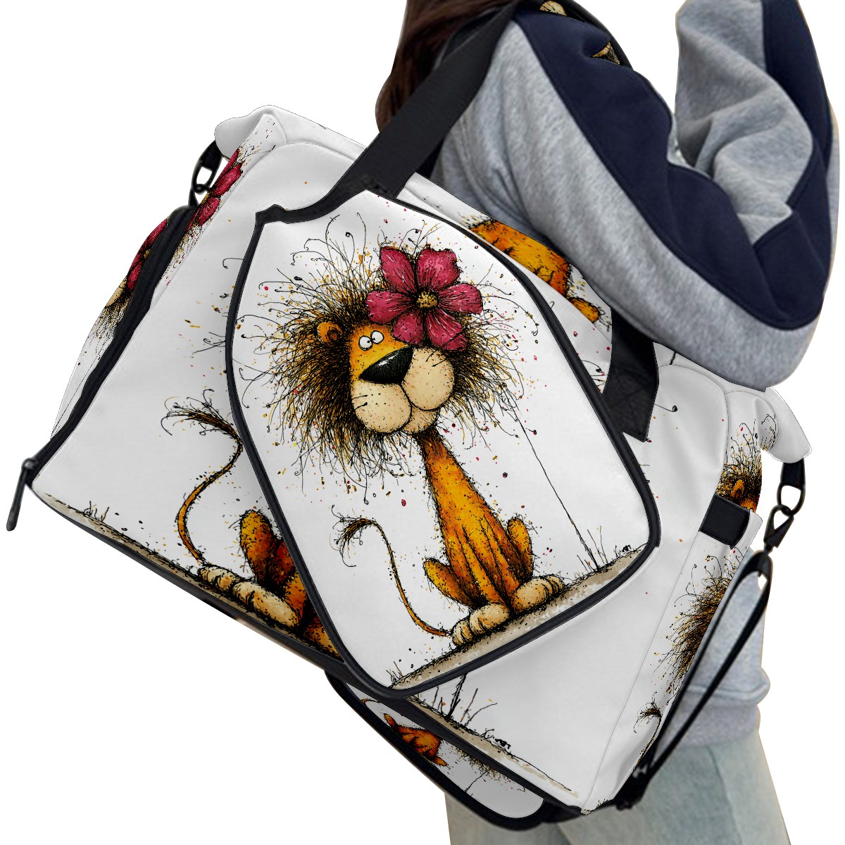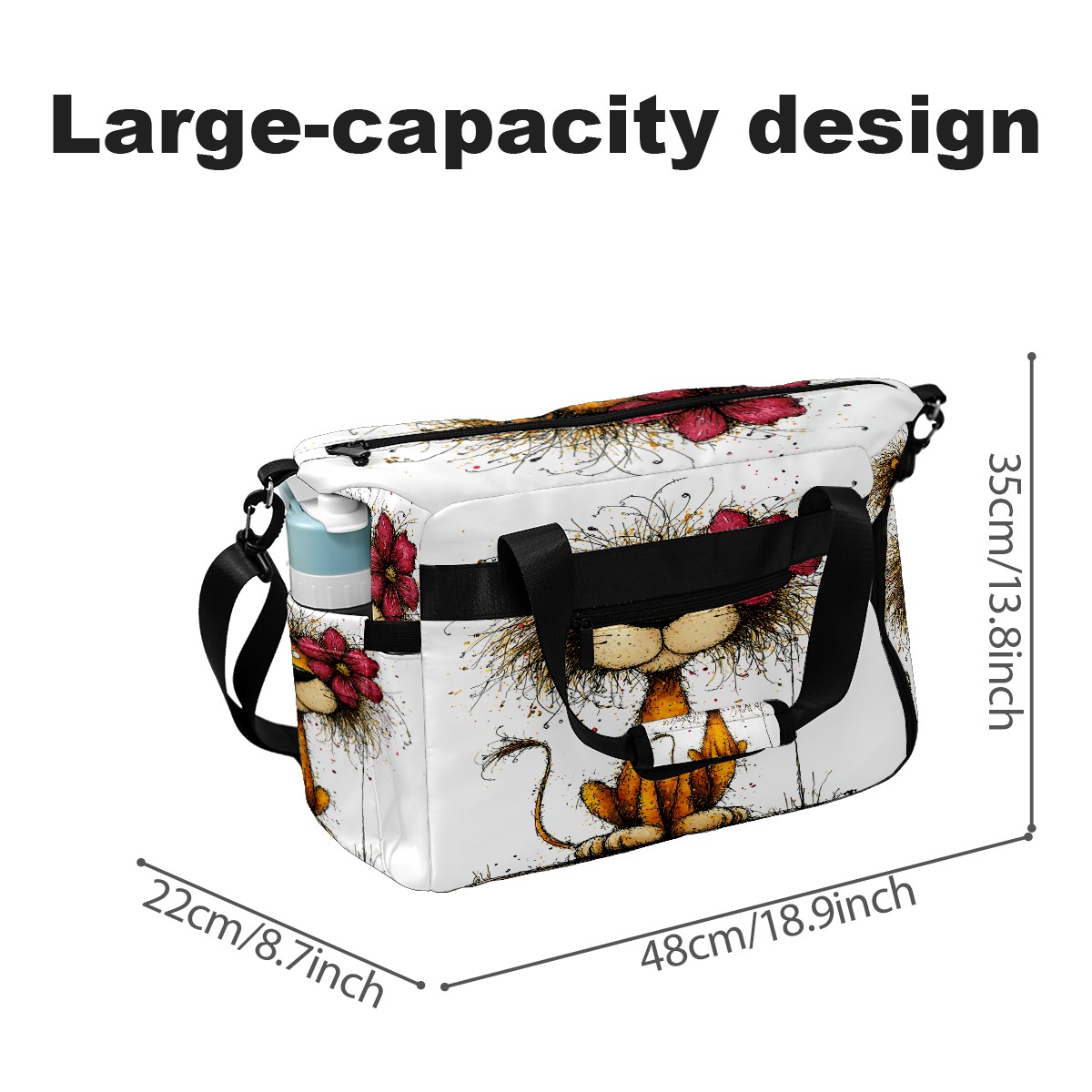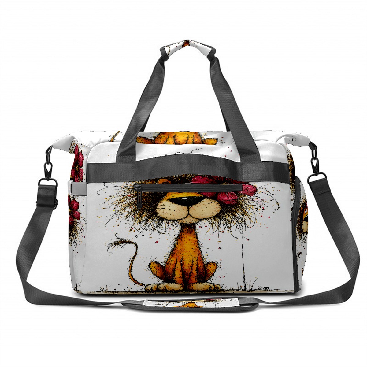 Large Gym Bag with Shoe Compartment, Water-Resistant Duffle Bag for Men and Women, Floral Lion Art Style Sports Tote for Workout Travel