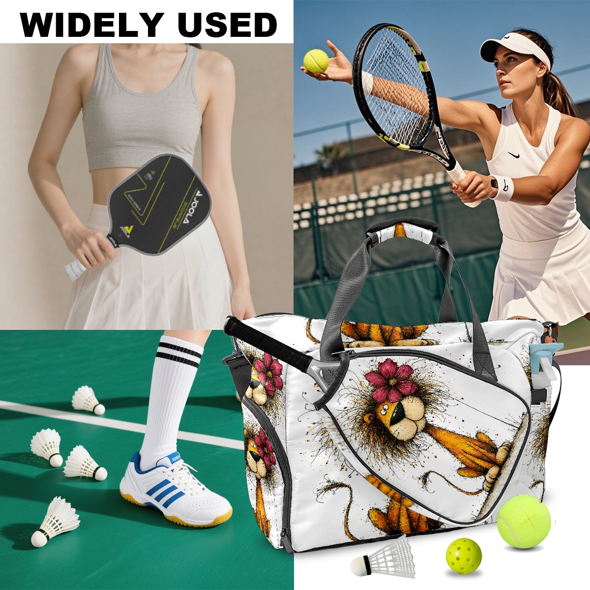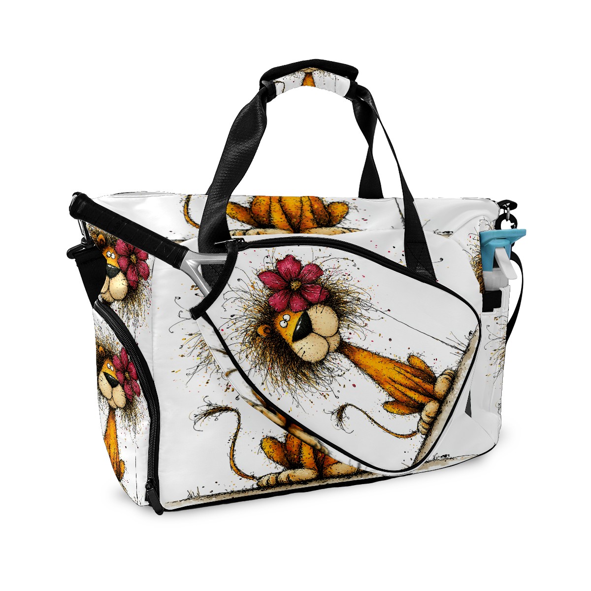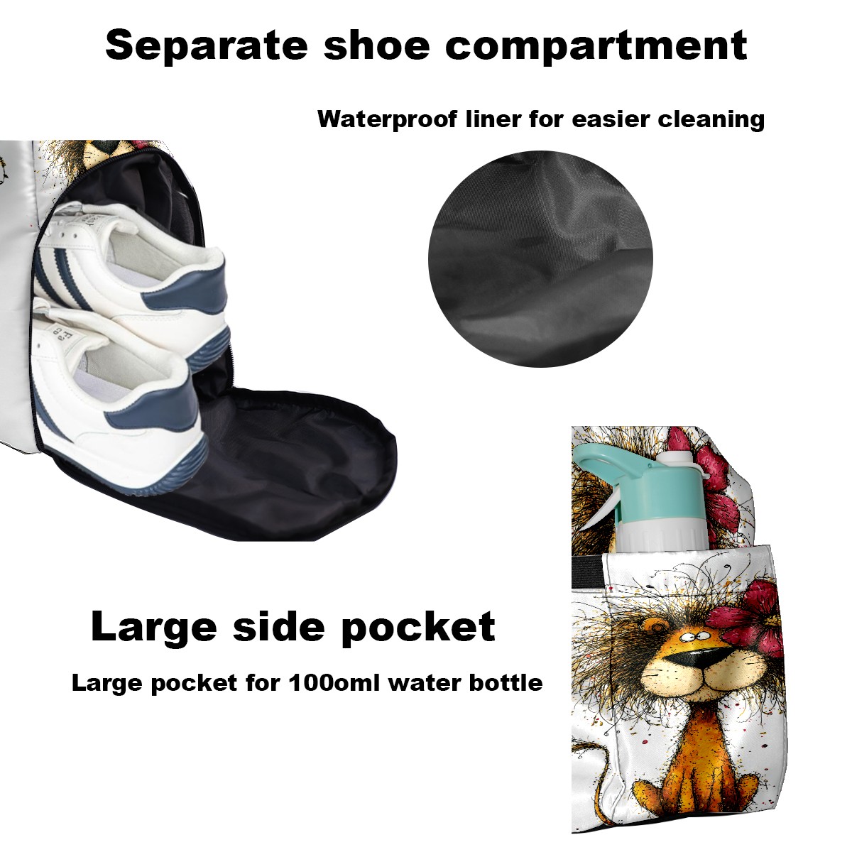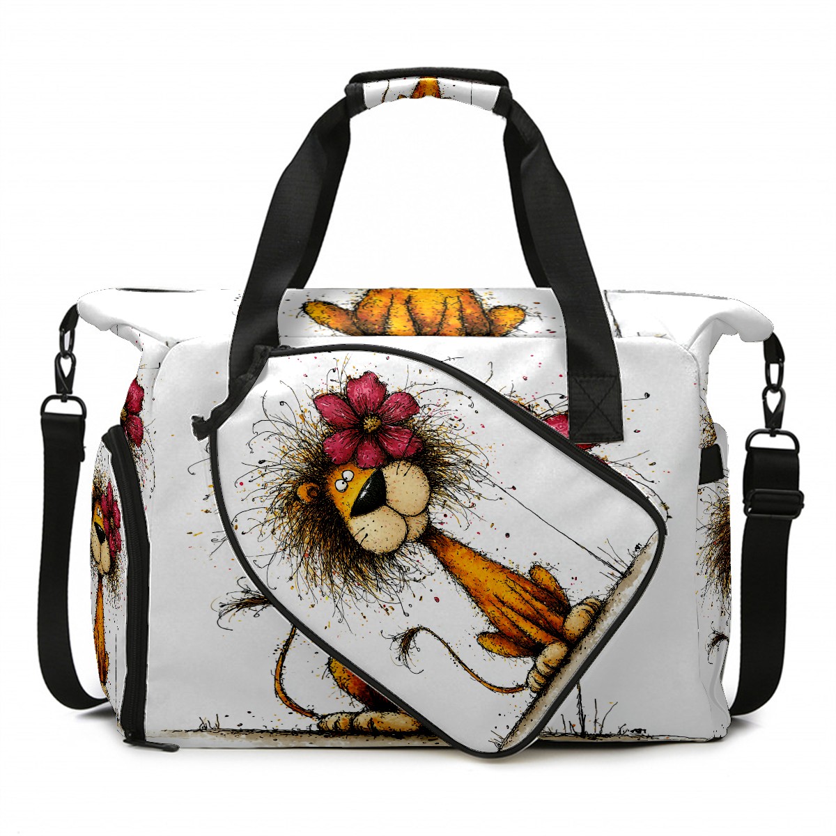 Large Gym Bag with Shoe Compartment, Water-Resistant Duffle Bag for Men and Women, Floral Lion Art Style Sports Tote for Workout Travel