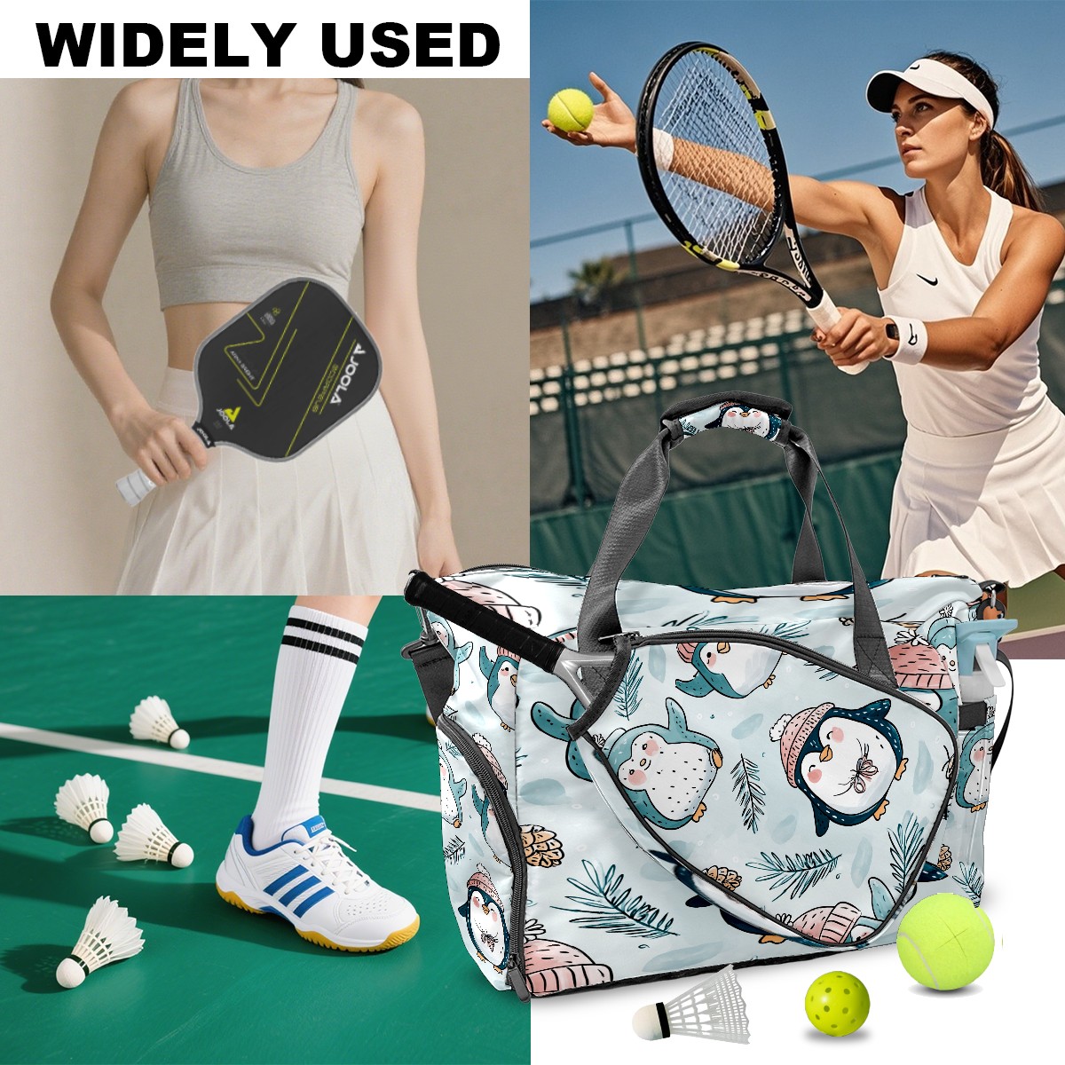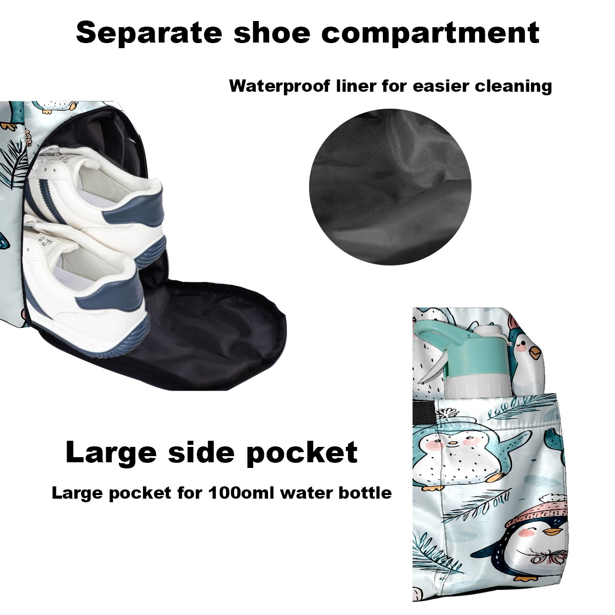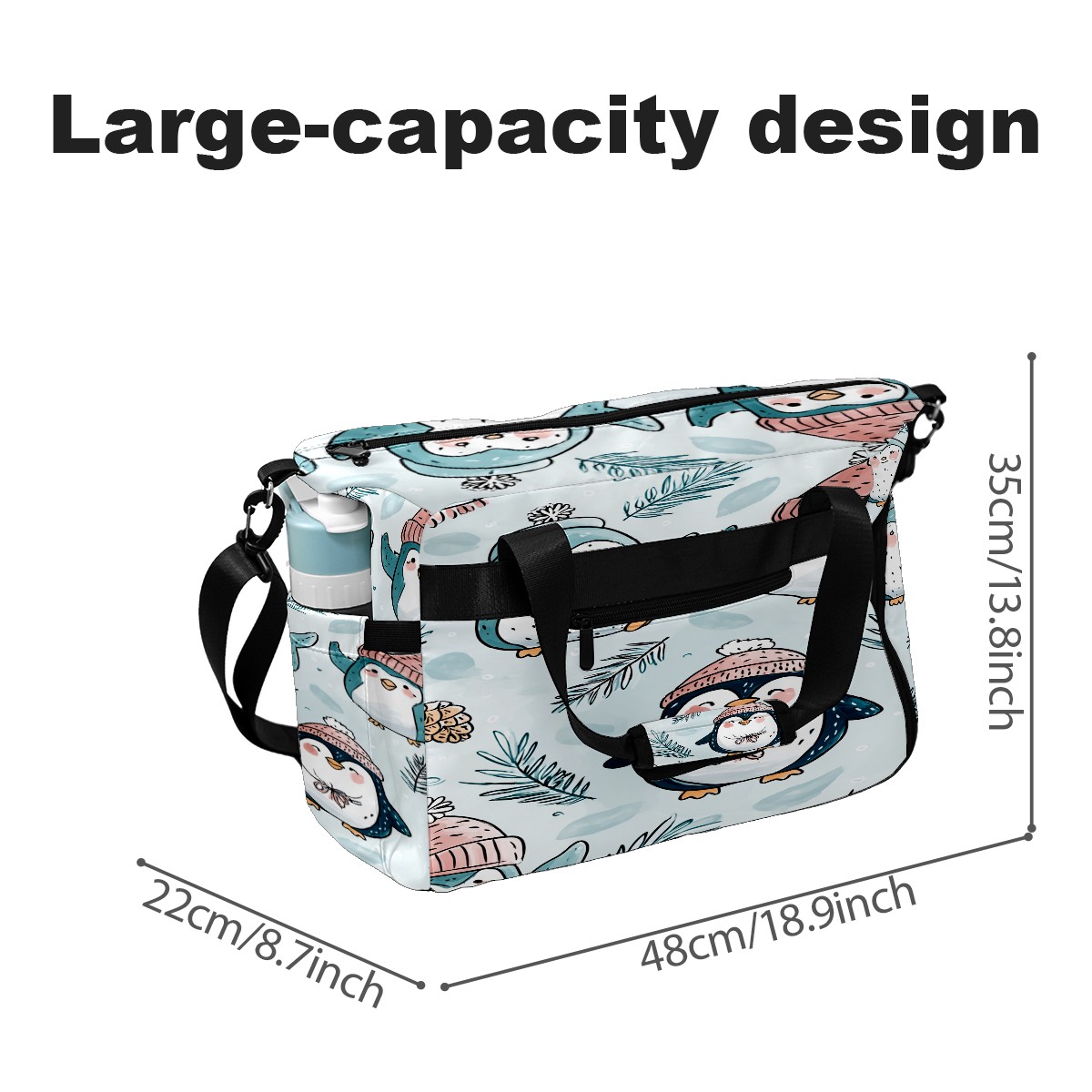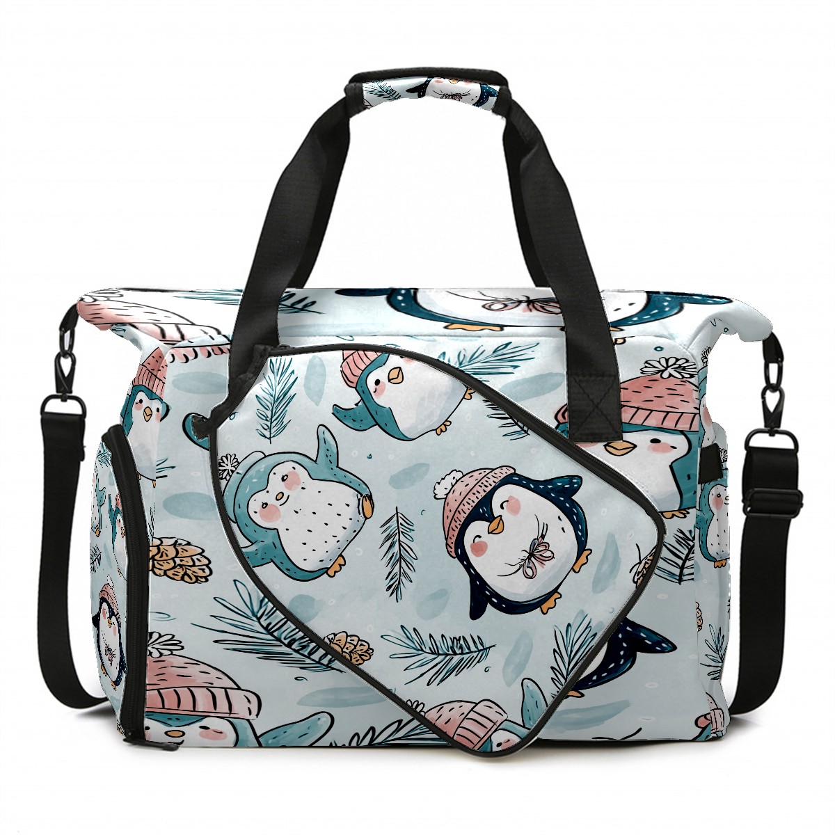 Large Gym Bag with Shoe Compartment, Water-Resistant Duffle Bag for Men and Women, Light Blue Hatted Penguins Sports Tote for Workout Travel