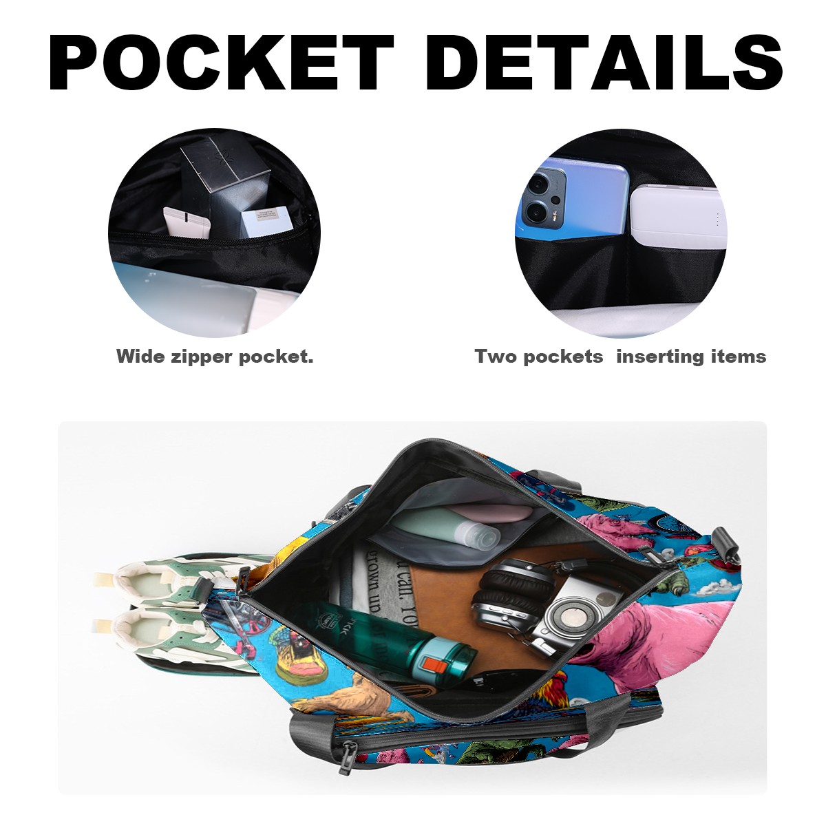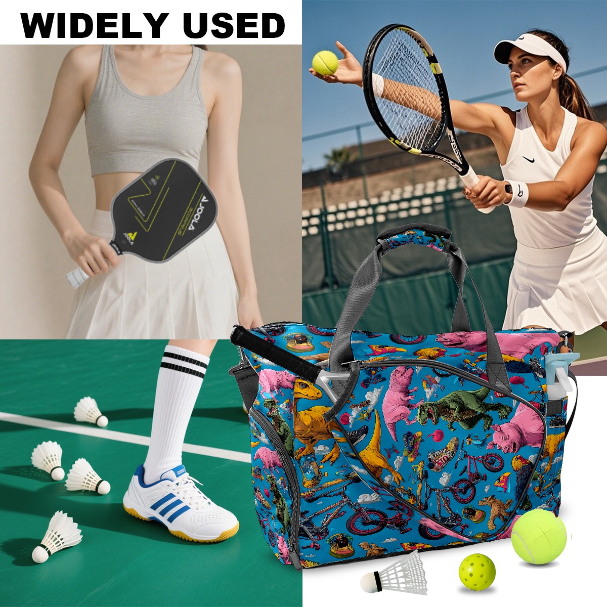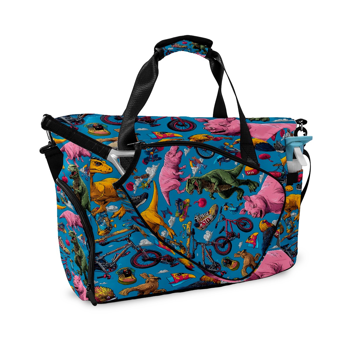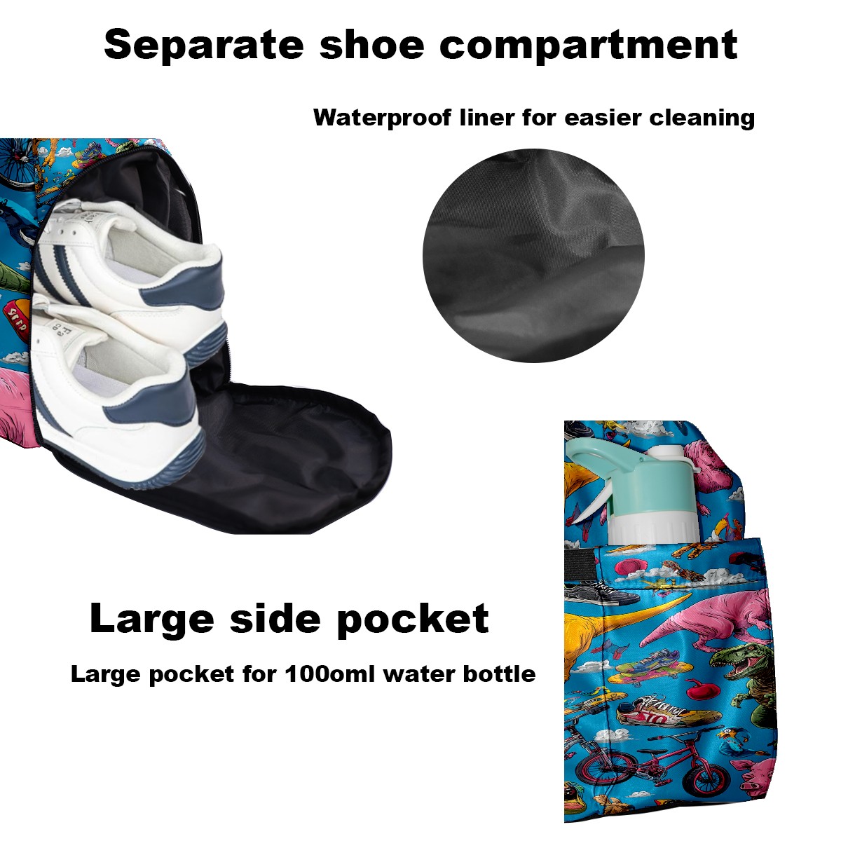 Large Gym Bag with Shoe Compartment, Water-Resistant Duffle Bag for Men and Women, Colorful Dinosaurs Blue Background Sports Tote for Workout Travel