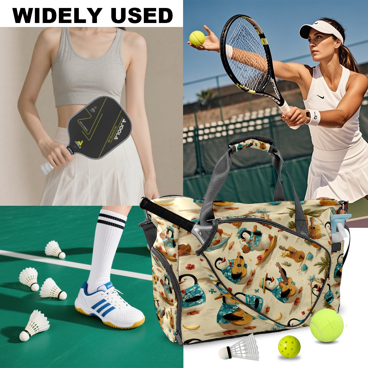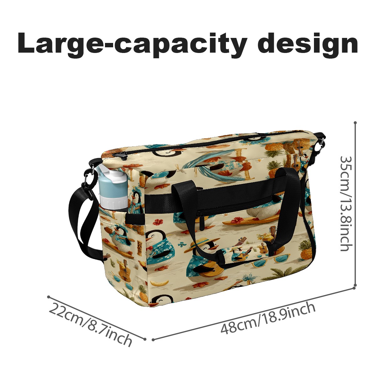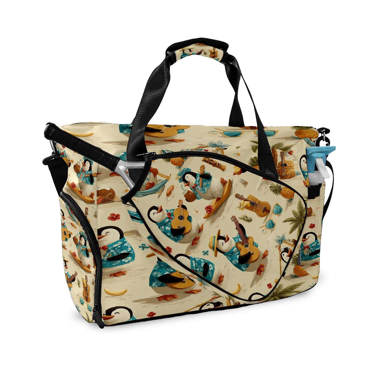 Large Gym Bag with Shoe Compartment, Water-Resistant Duffle Bag for Men and Women, Penguins Playing Instruments Light Brown Sports Tote for Workout Travel