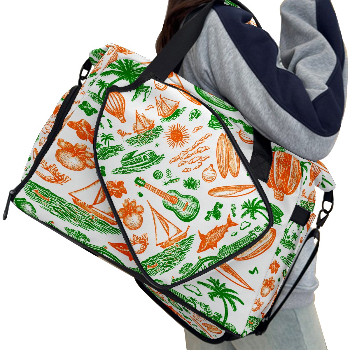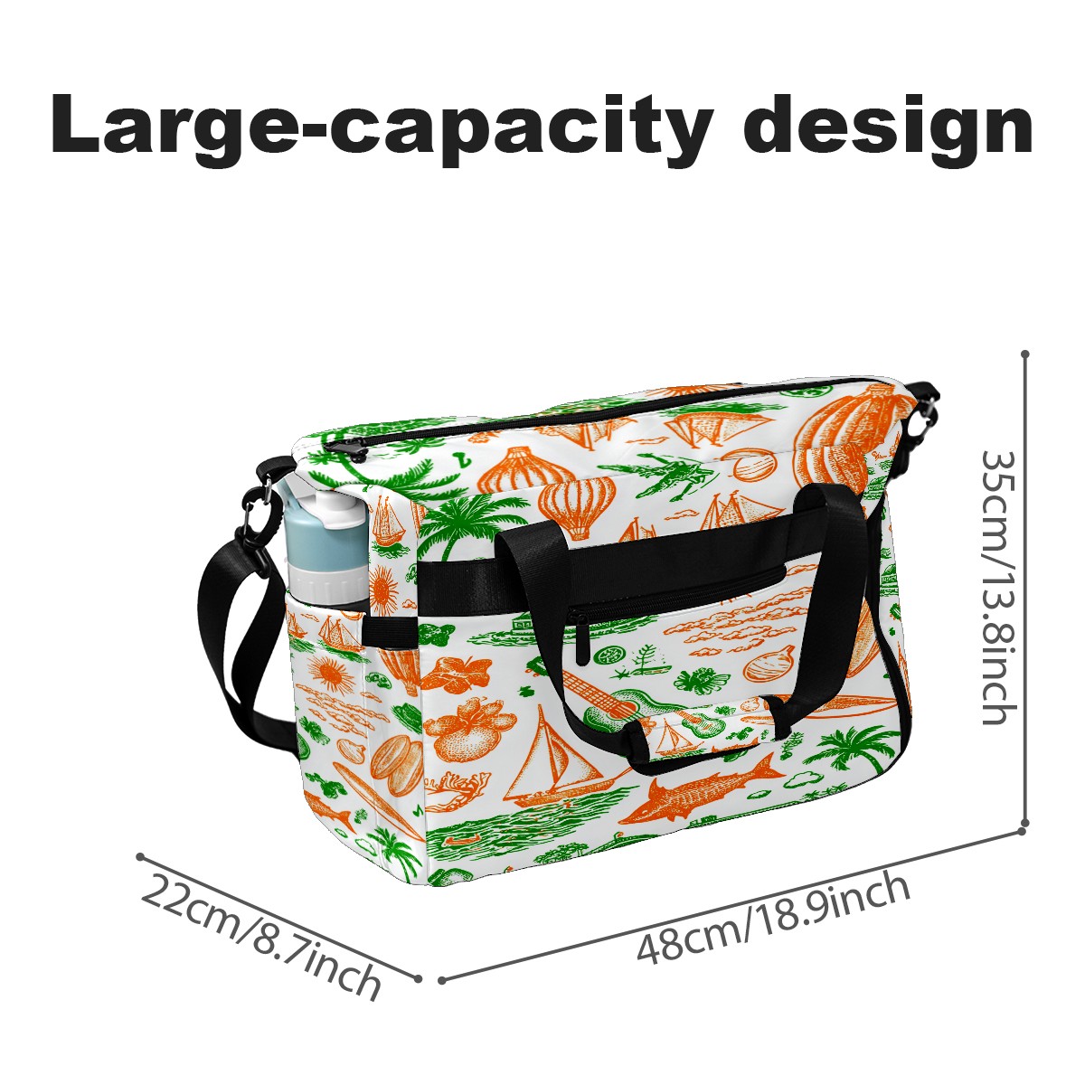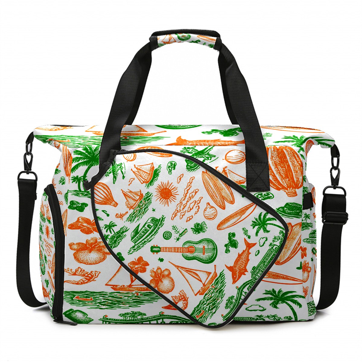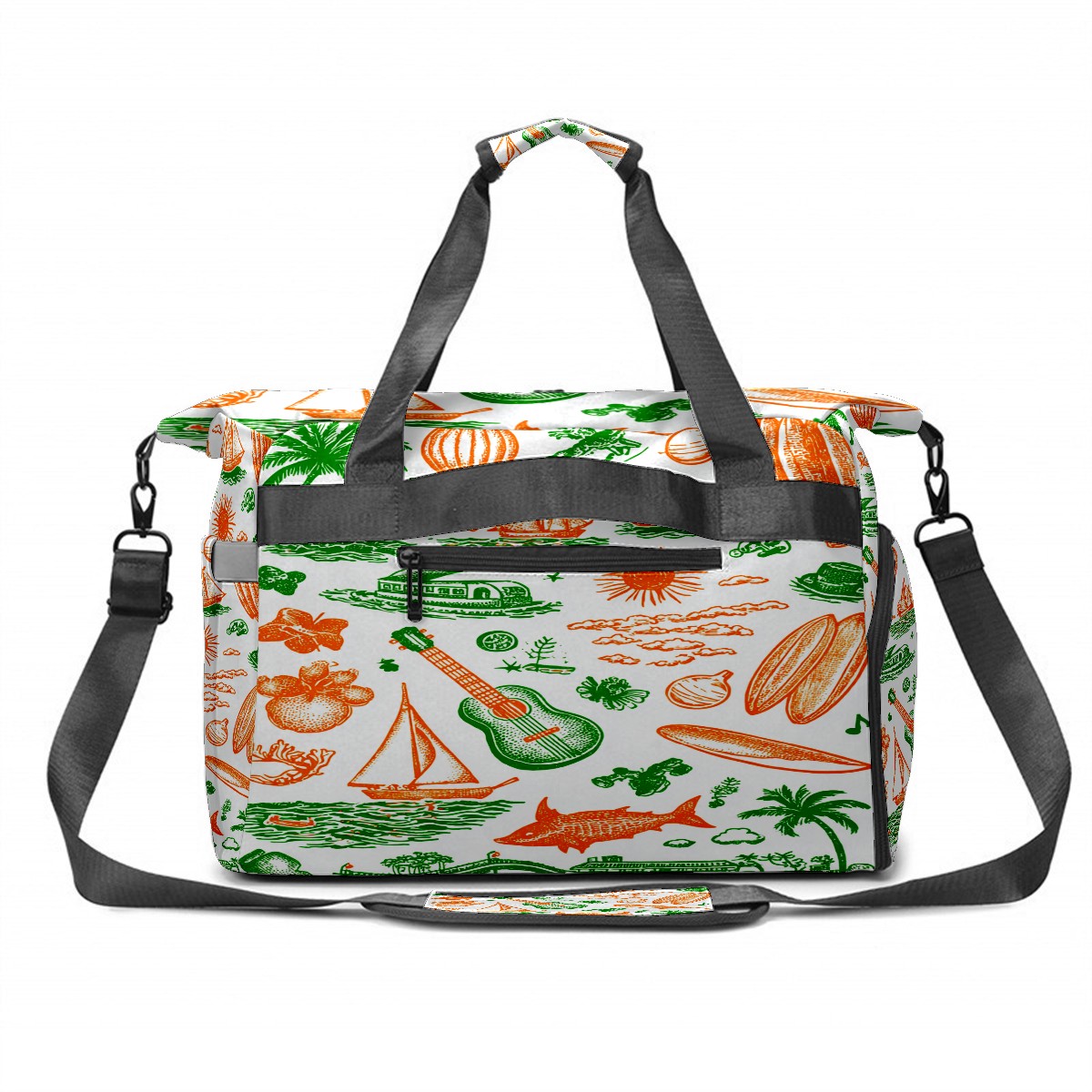 Large Gym Bag with Shoe Compartment, Water-Resistant Duffle Bag for Men and Women, Green Background Summer Elements Sports Tote for Workout Travel