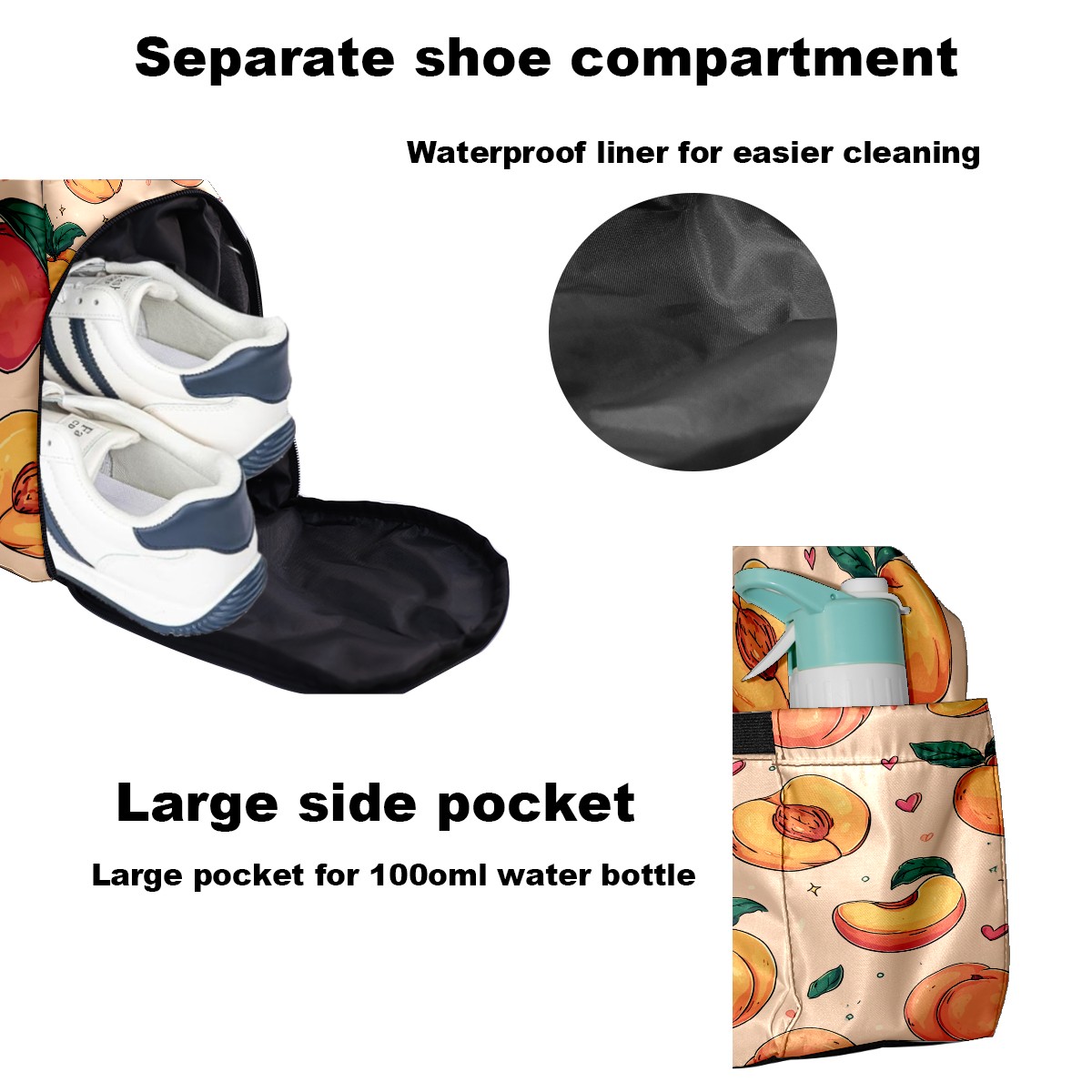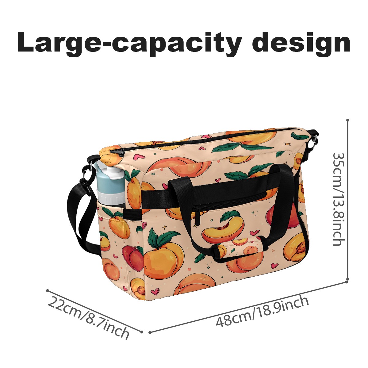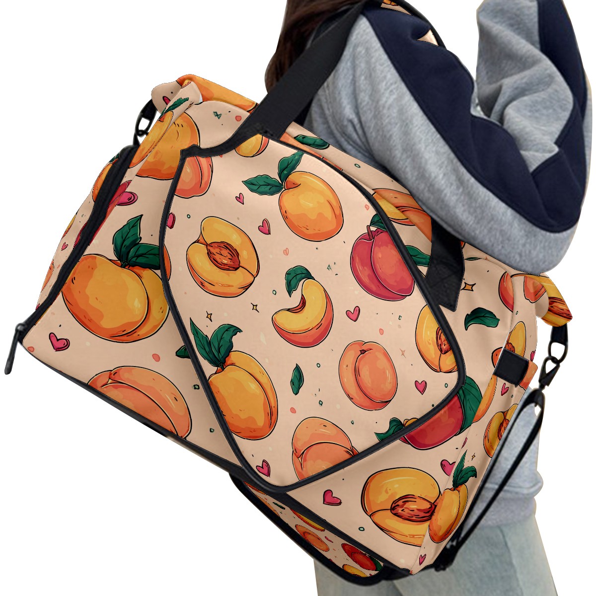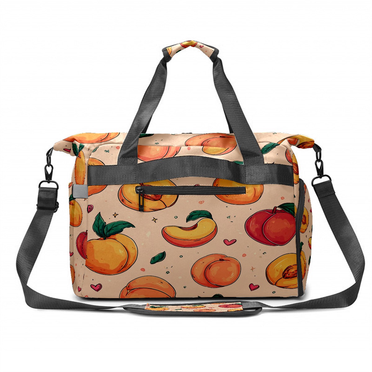Large Gym Bag with Shoe Compartment, Water-Resistant Duffle Bag for Men and Women, Peach Pattern Light Pink Background Sports Tote for Workout Travel