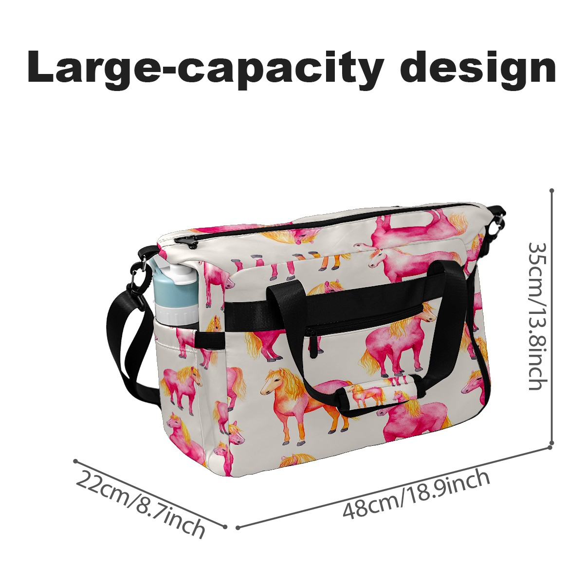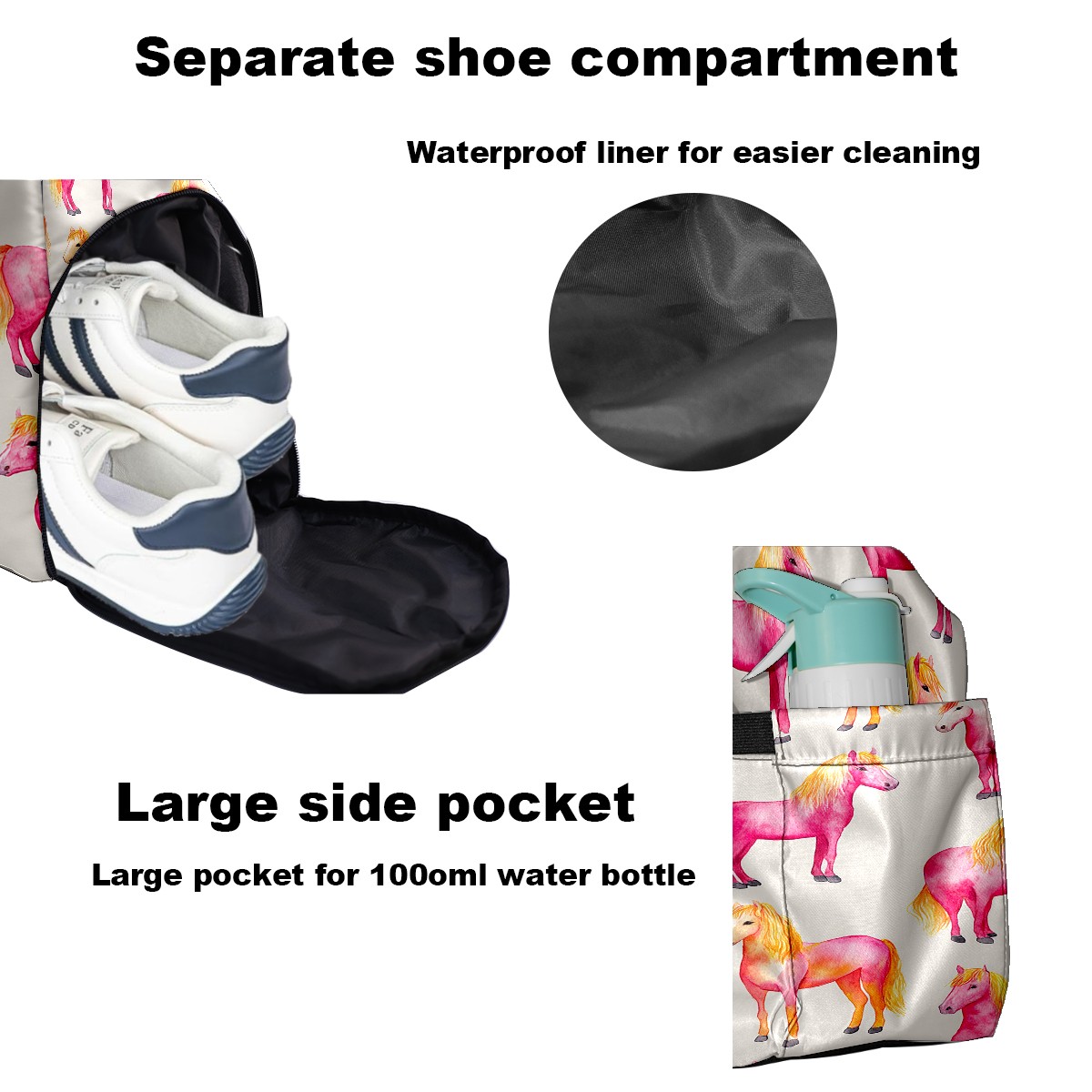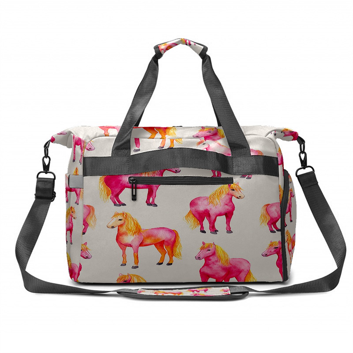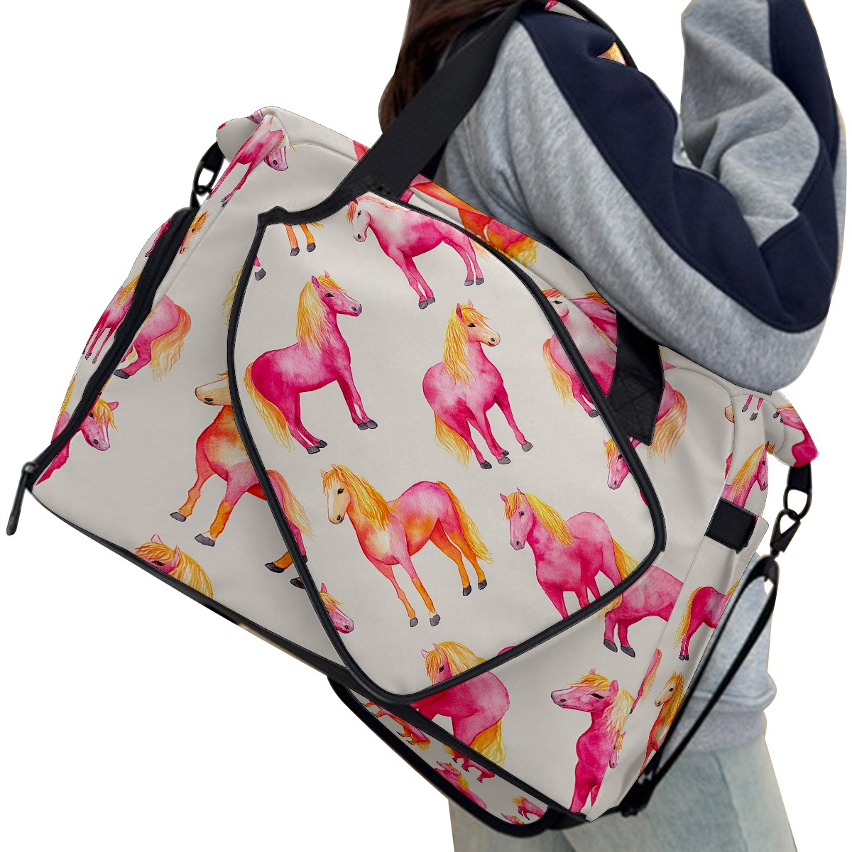 Large Gym Bag with Shoe Compartment, Water-Resistant Duffle Bag for Men and Women, Light Background Pink Horses Sports Tote for Workout Travel