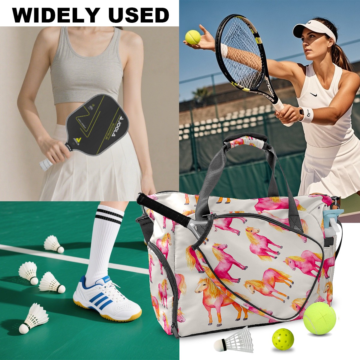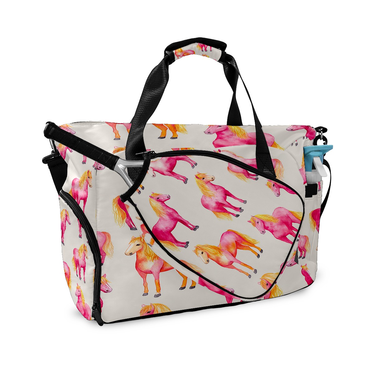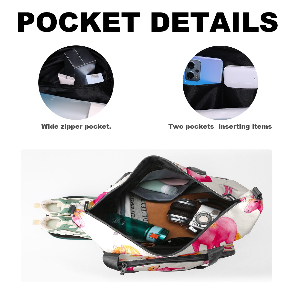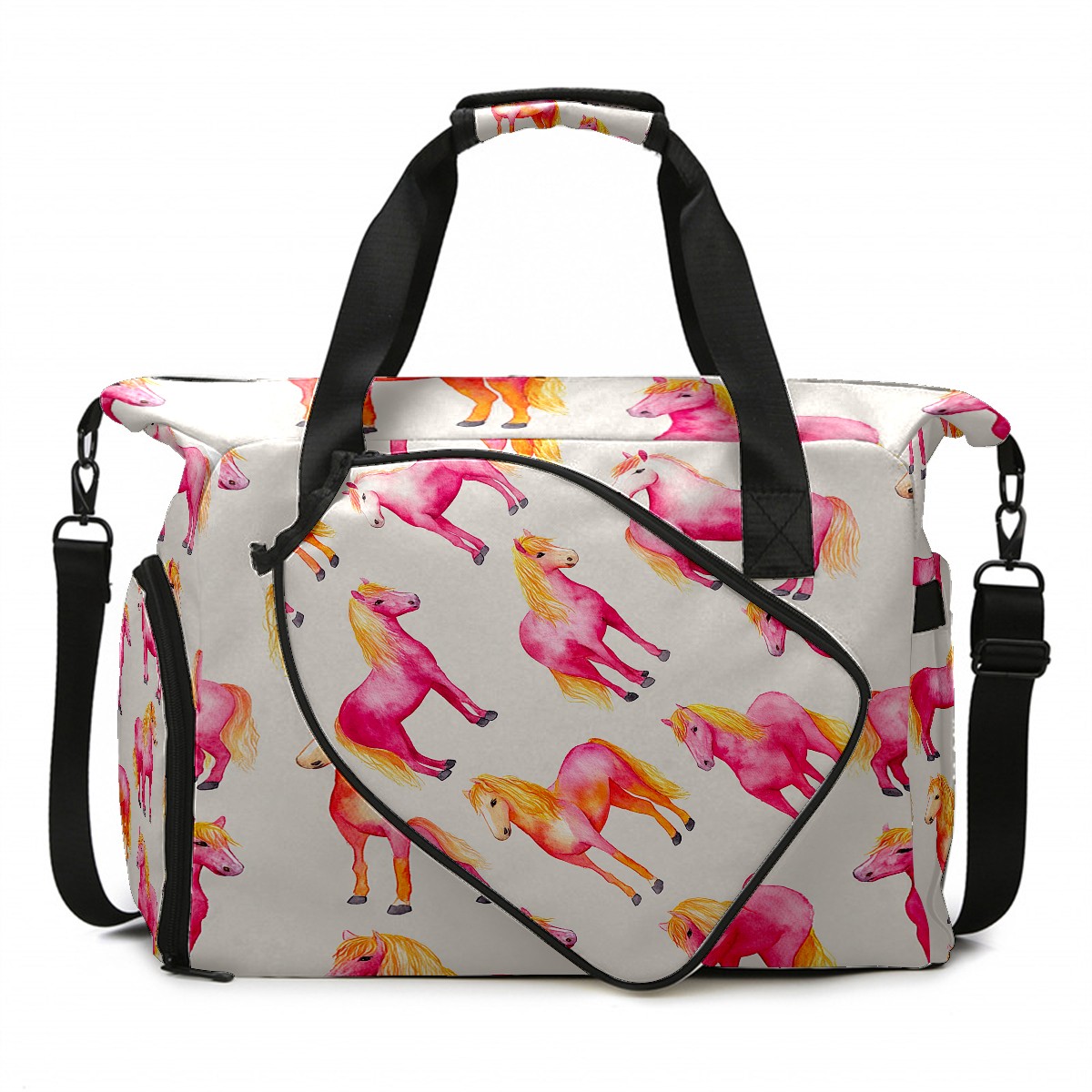Large Gym Bag with Shoe Compartment, Water-Resistant Duffle Bag for Men and Women, Light Background Pink Horses Sports Tote for Workout Travel
