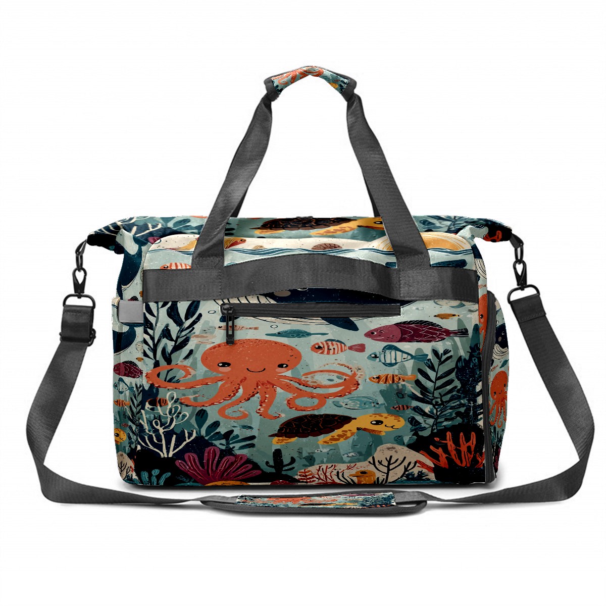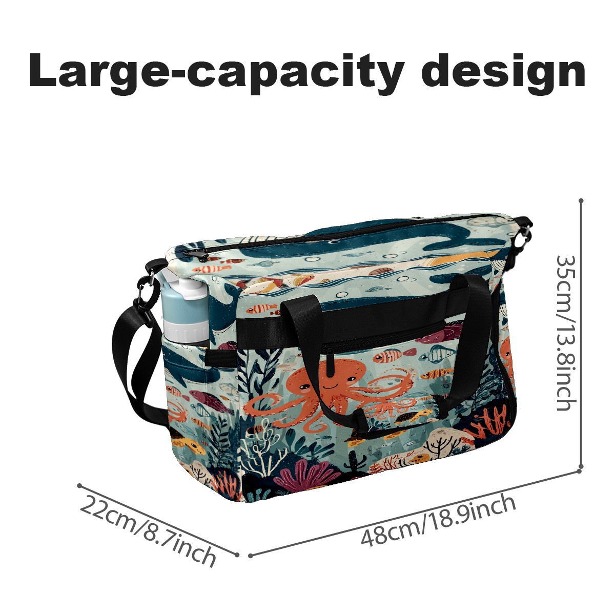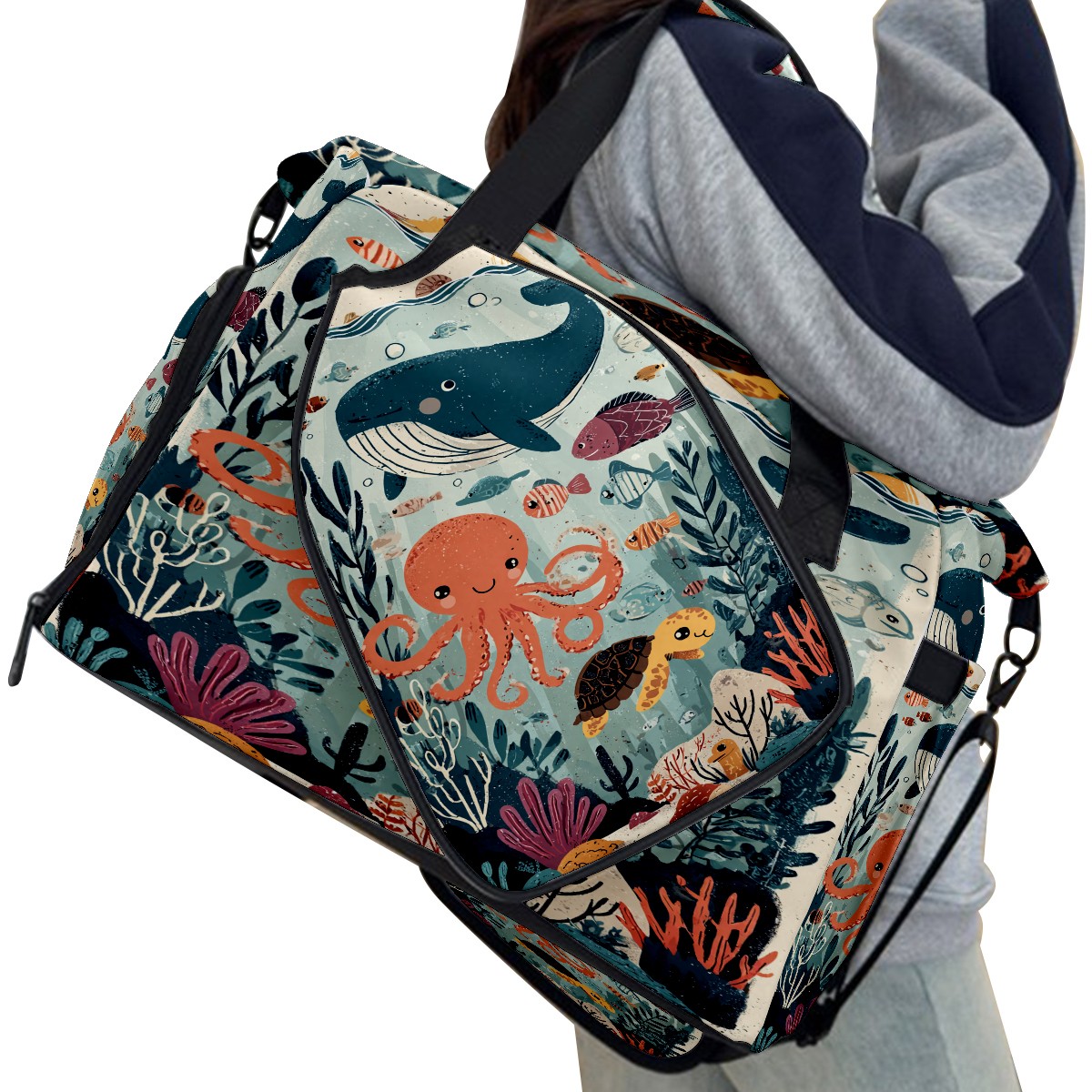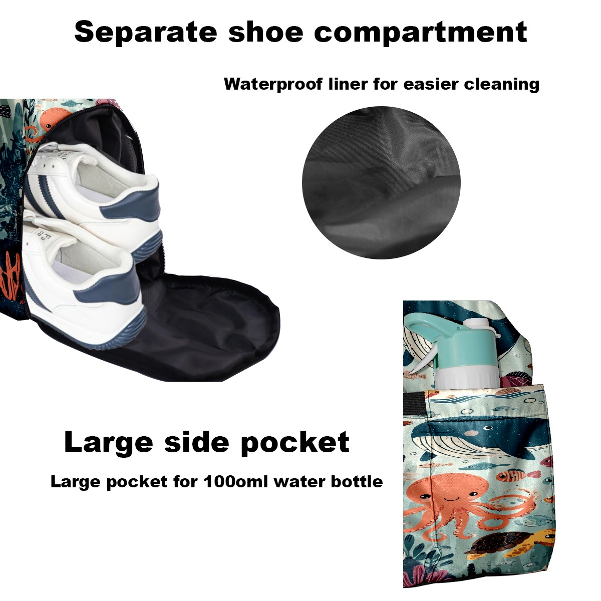 Large Gym Bag with Shoe Compartment, Water-Resistant Duffle Bag for Men and Women, Blue Ocean Whale Octopus Sports Tote for Workout Travel
