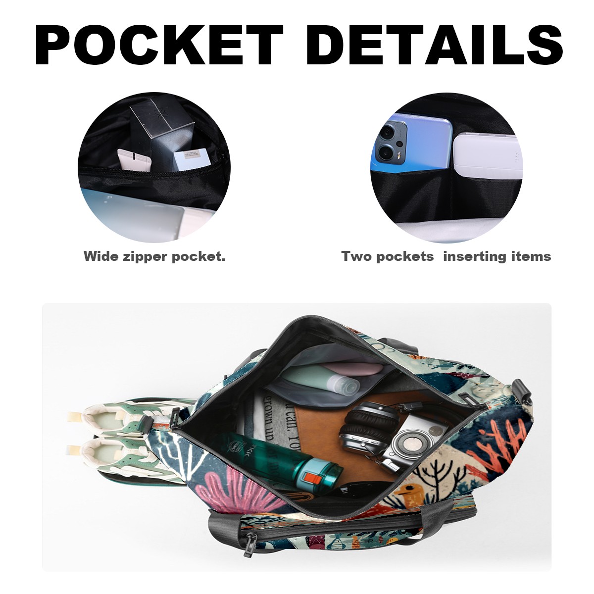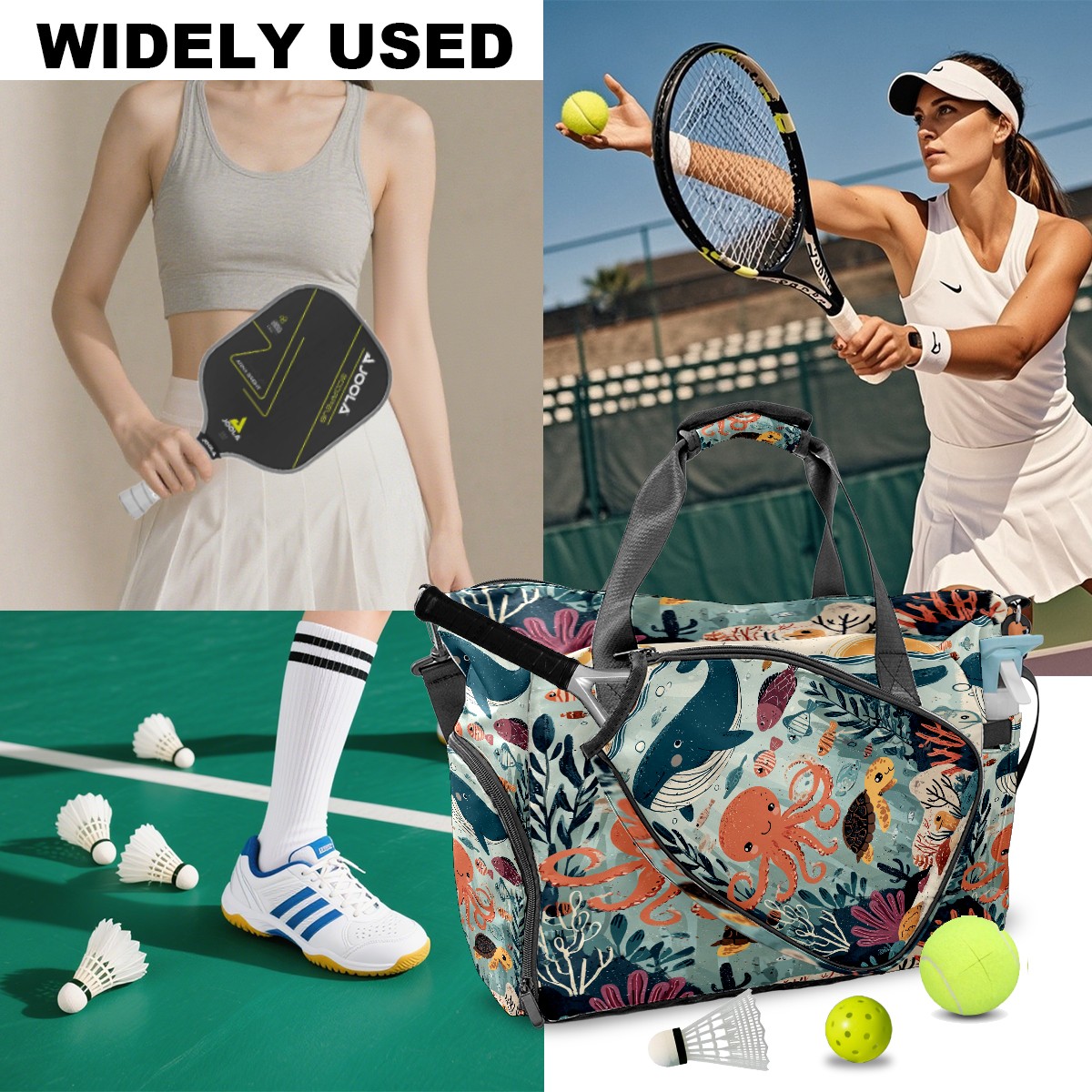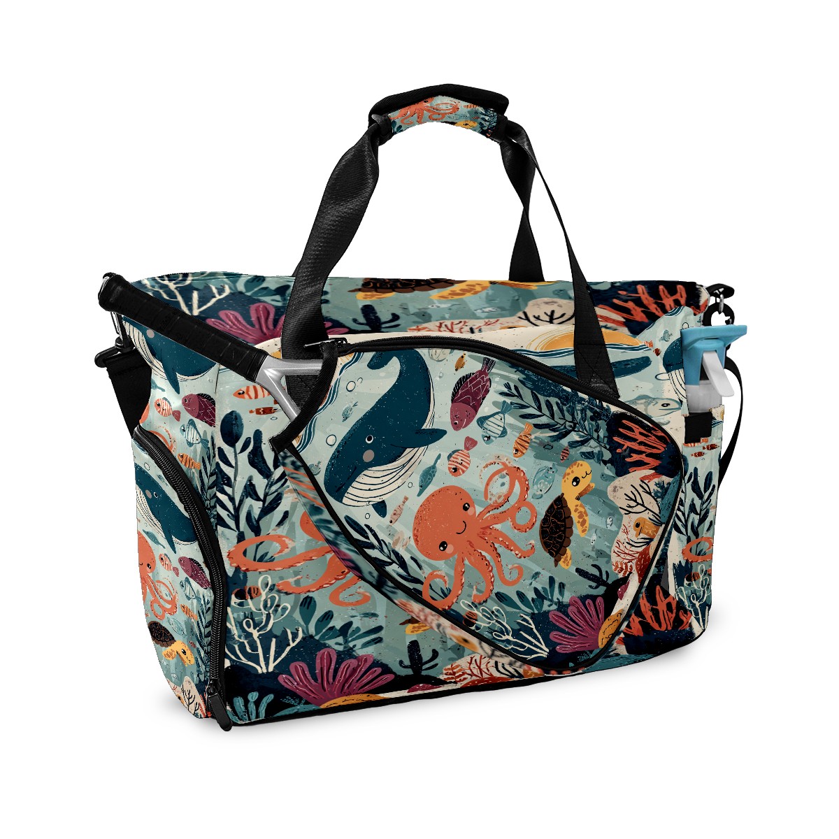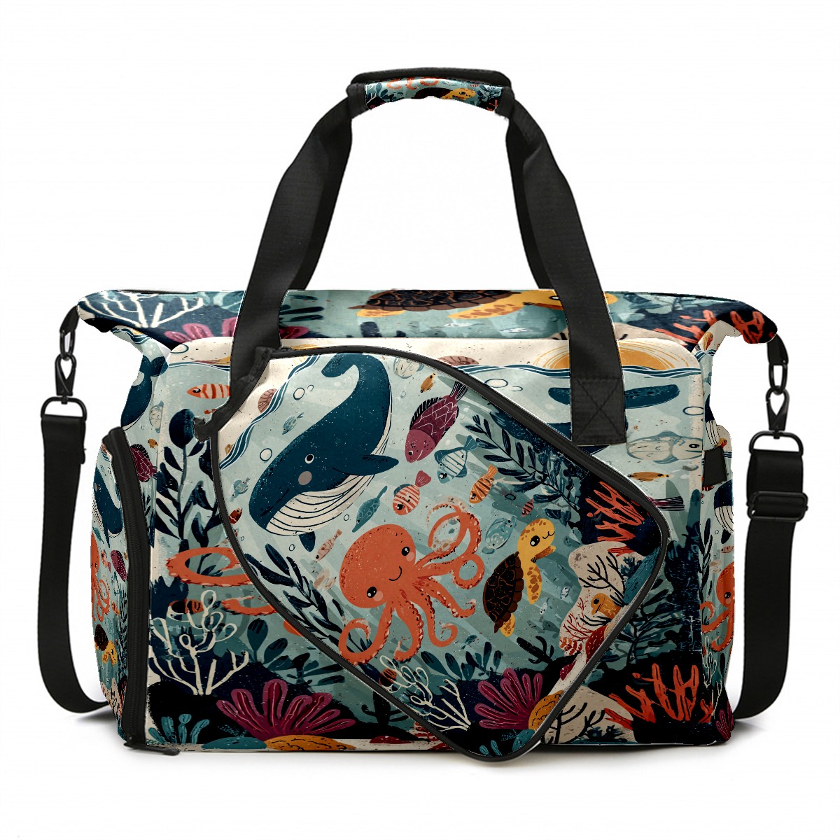 Large Gym Bag with Shoe Compartment, Water-Resistant Duffle Bag for Men and Women, Blue Ocean Whale Octopus Sports Tote for Workout Travel
