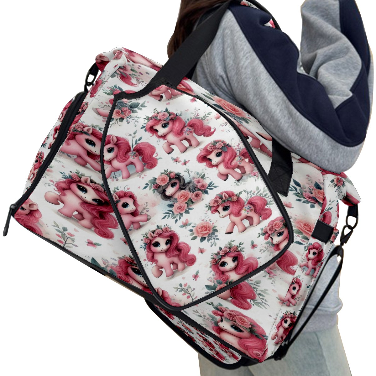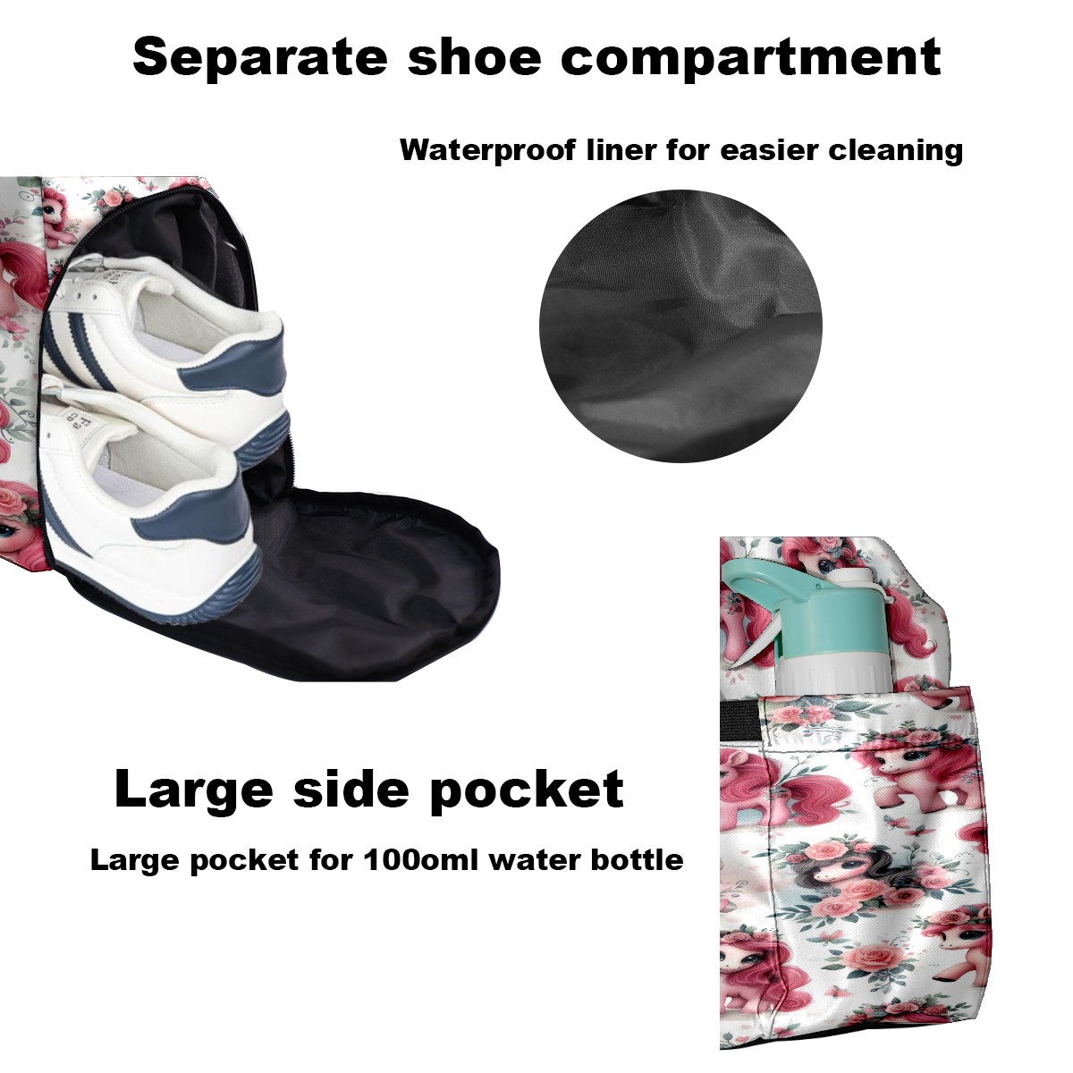 Large Gym Bag with Shoe Compartment, Water-Resistant Duffle Bag for Men and Women, Pink Piglets Pattern Sports Tote for Workout Travel