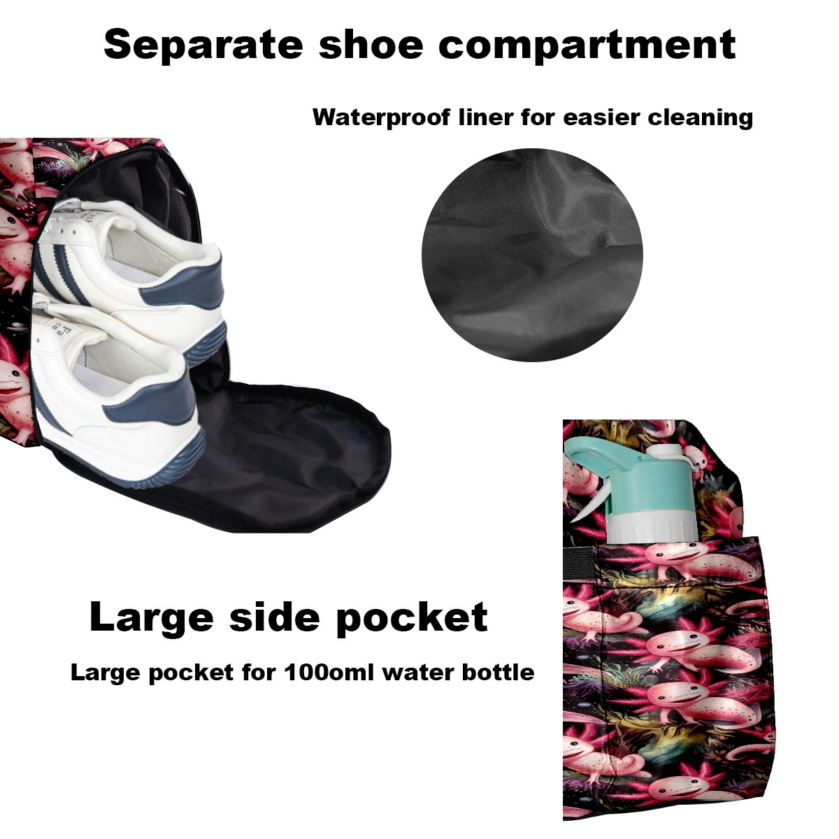 Large Gym Bag with Shoe Compartment, Water-Resistant Duffle Bag for Men and Women, Pink Flamingos Pattern Sports Tote for Workout Travel