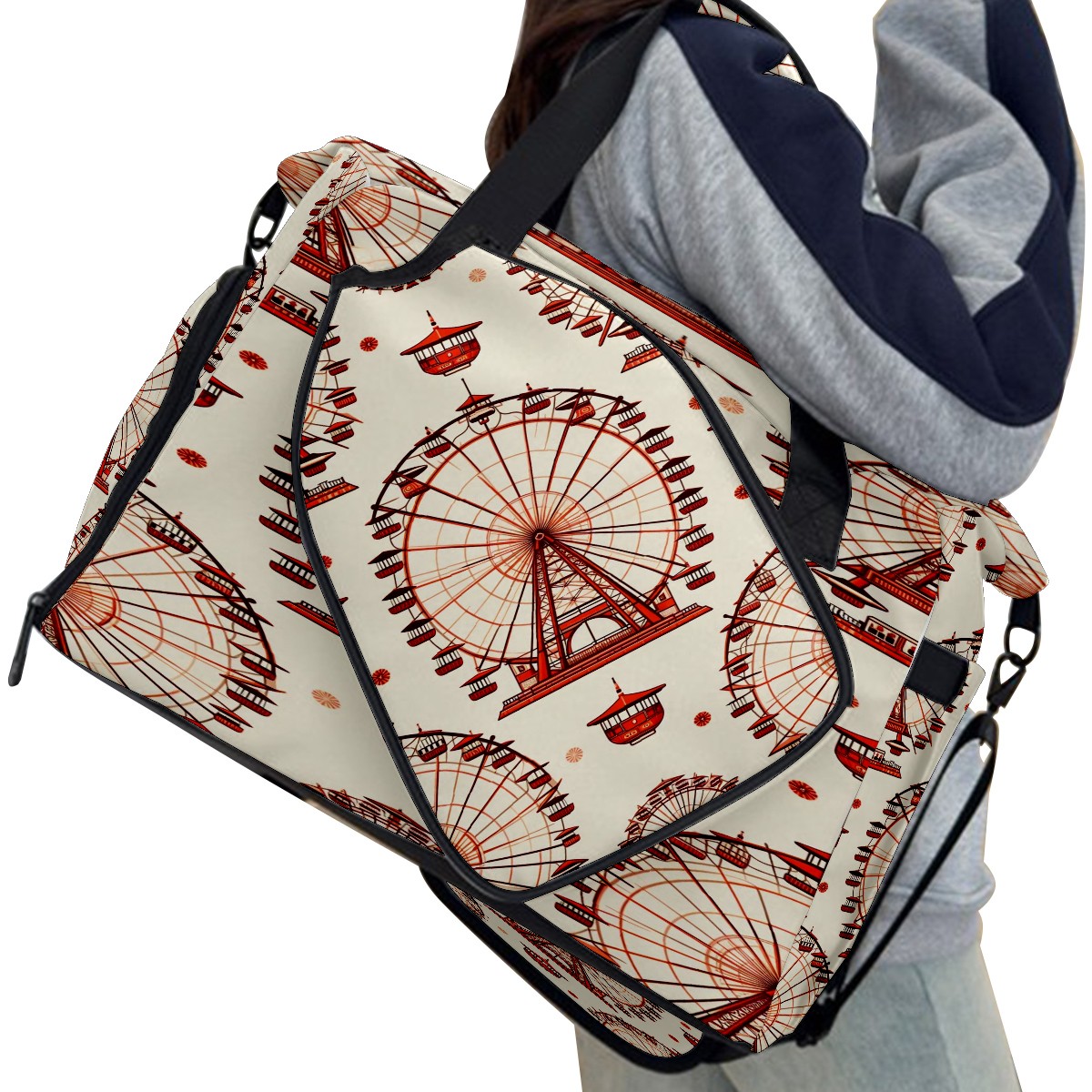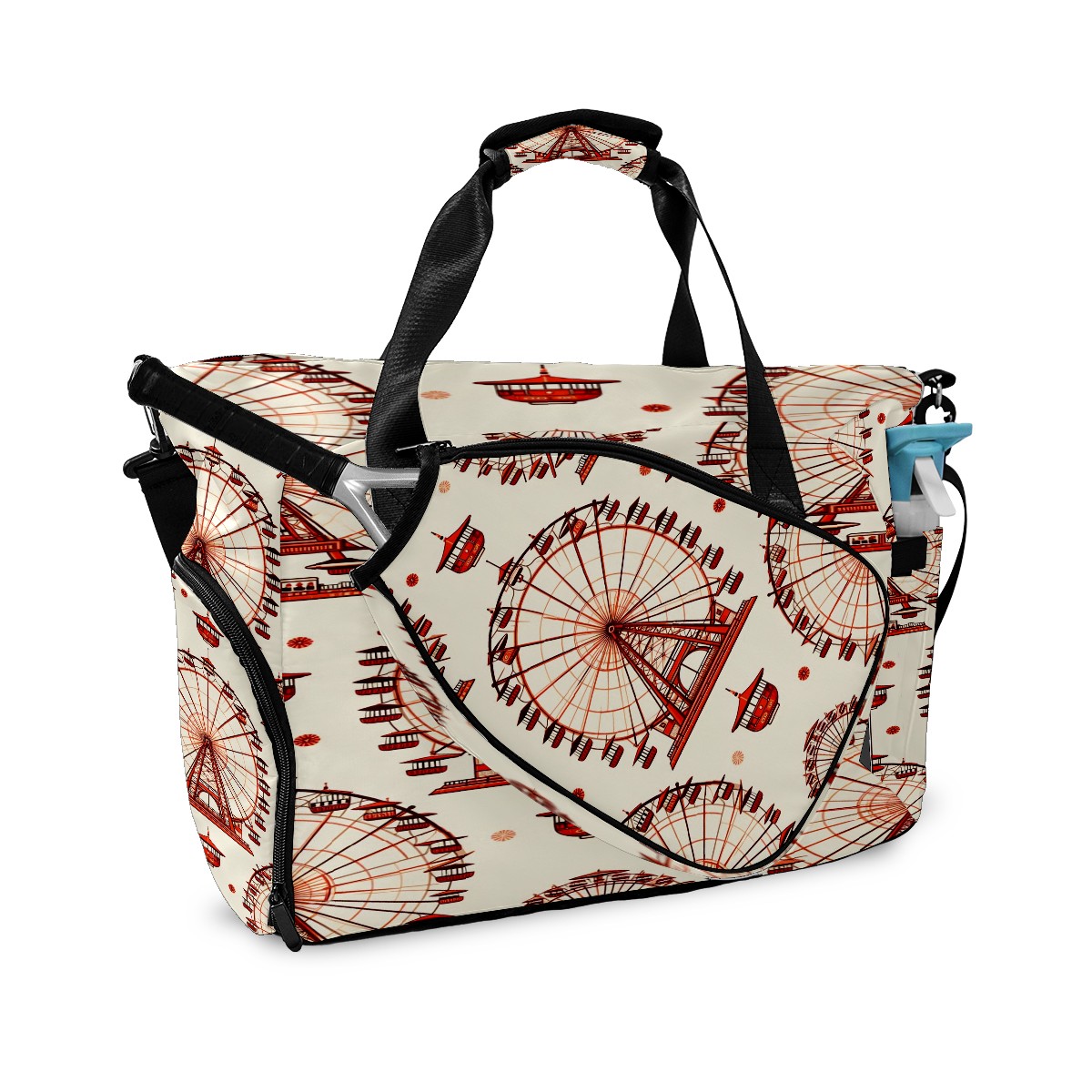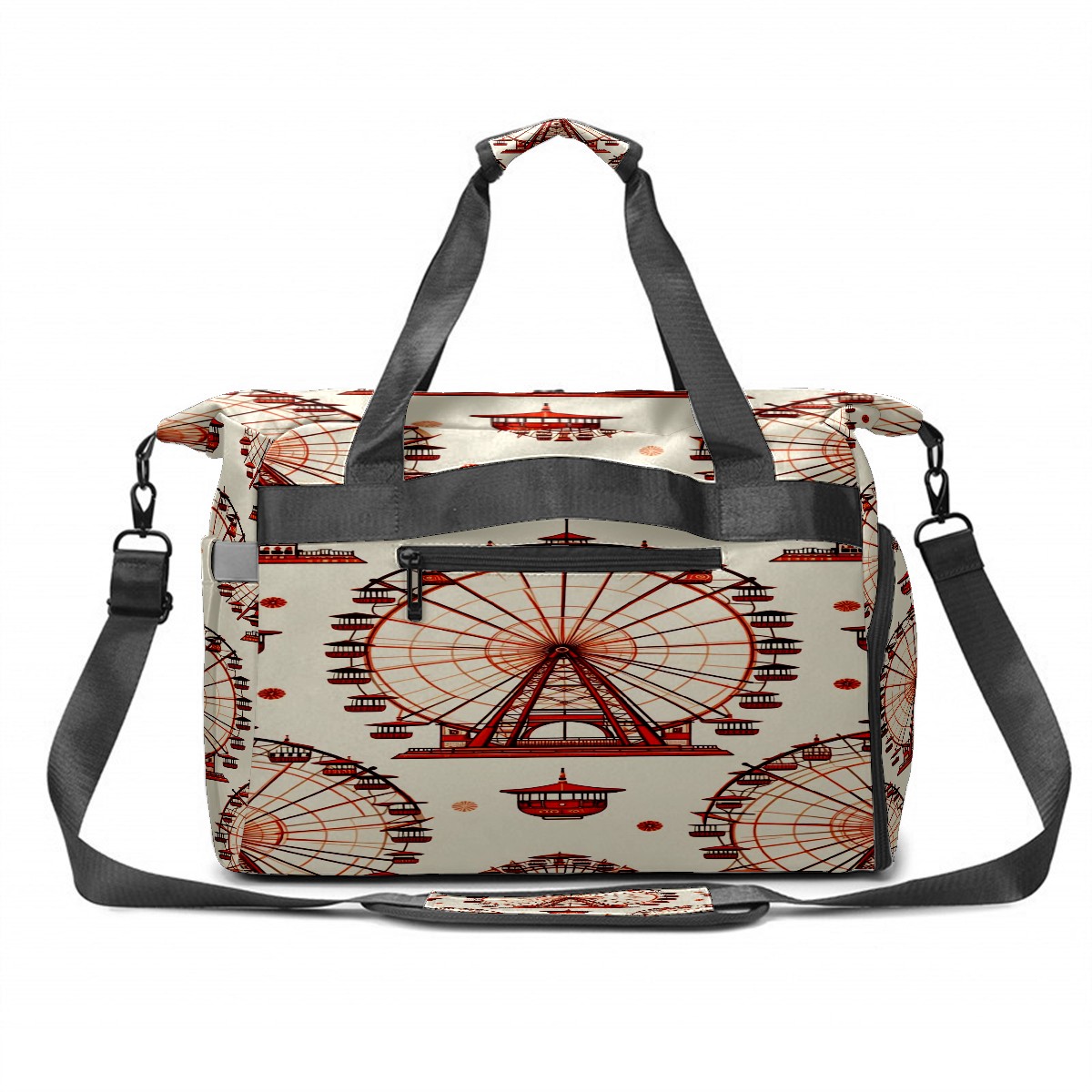 Large Gym Bag with Shoe Compartment, Water-Resistant Duffle Bag for Men and Women, Ferris Wheel Beige Sports Tote for Workout Travel