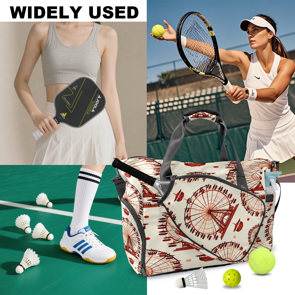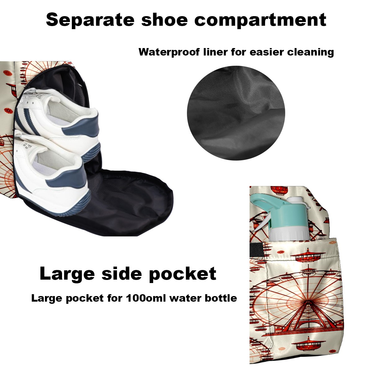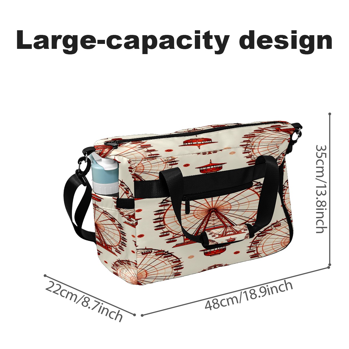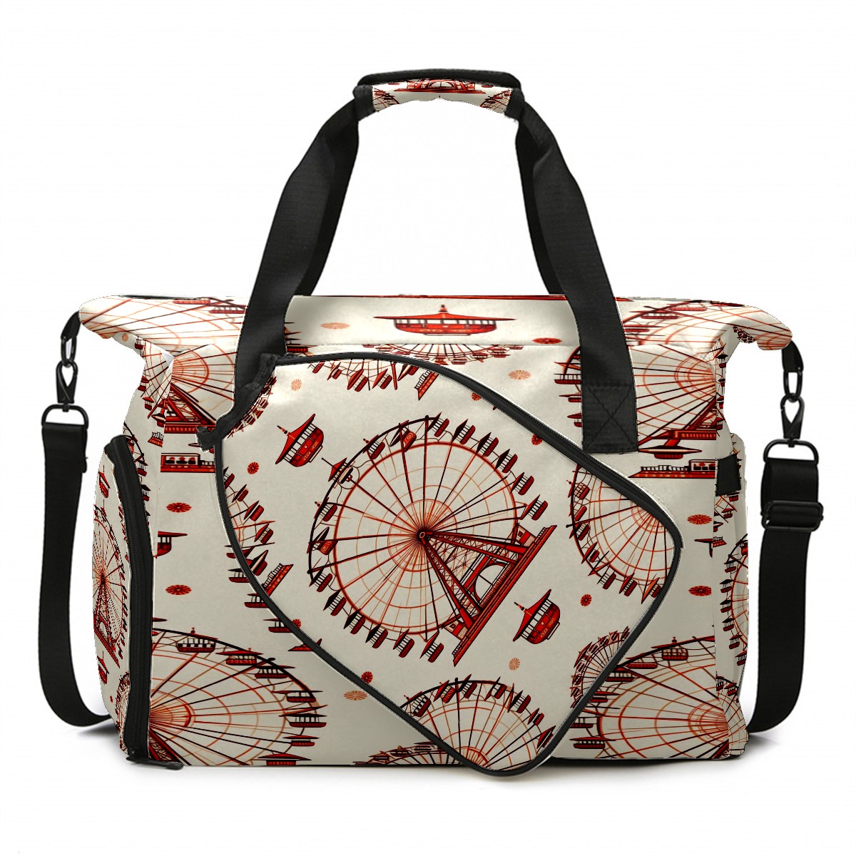 Large Gym Bag with Shoe Compartment, Water-Resistant Duffle Bag for Men and Women, Ferris Wheel Beige Sports Tote for Workout Travel