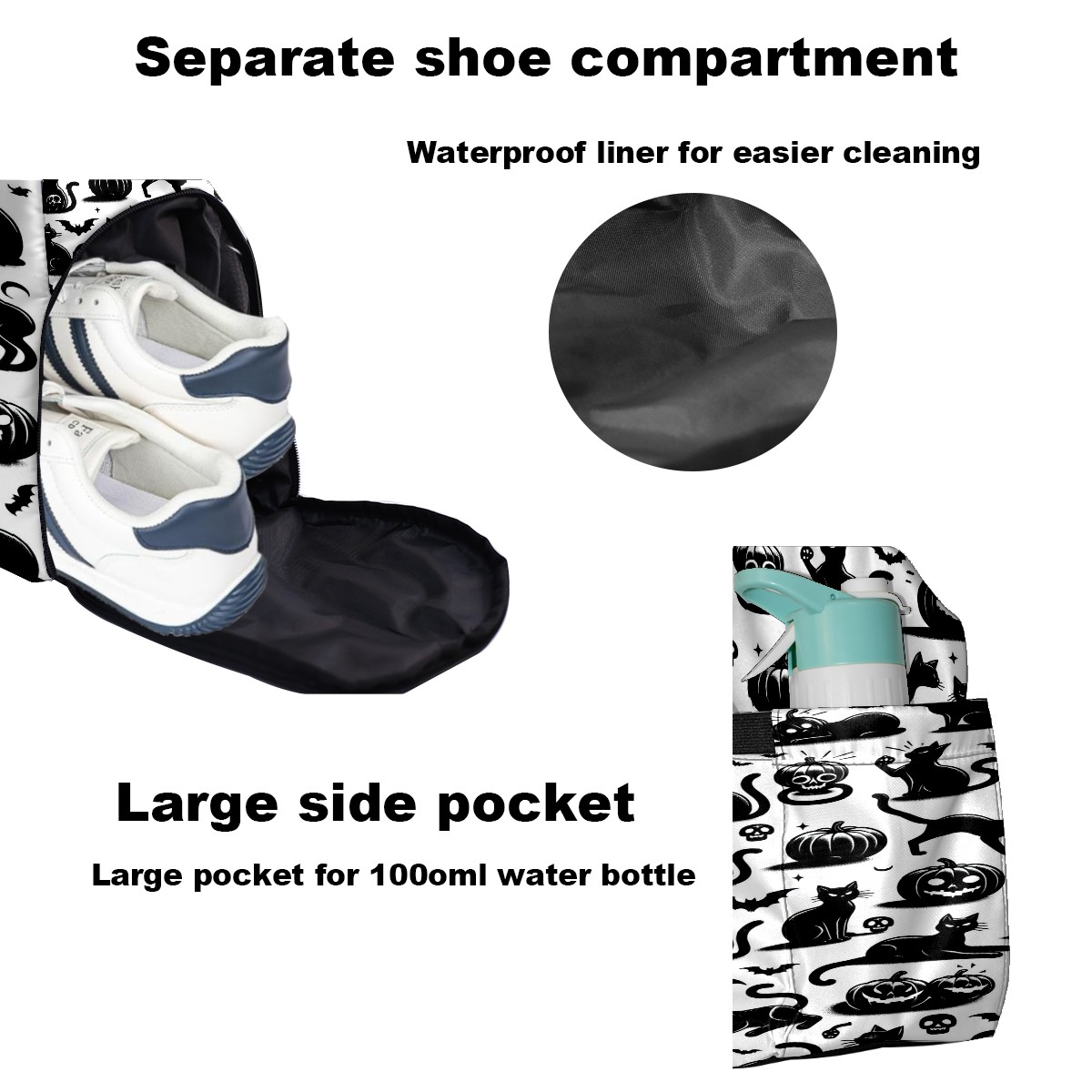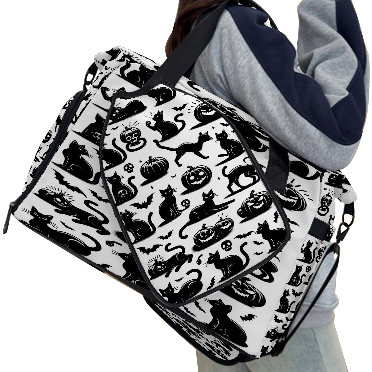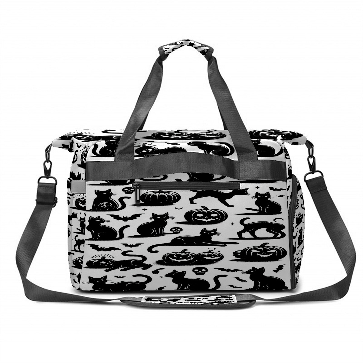 Large Gym Bag with Shoe Compartment, Water-Resistant Duffle Bag for Men and Women, Black Cats Silhouette Design Sports Tote for Workout Travel