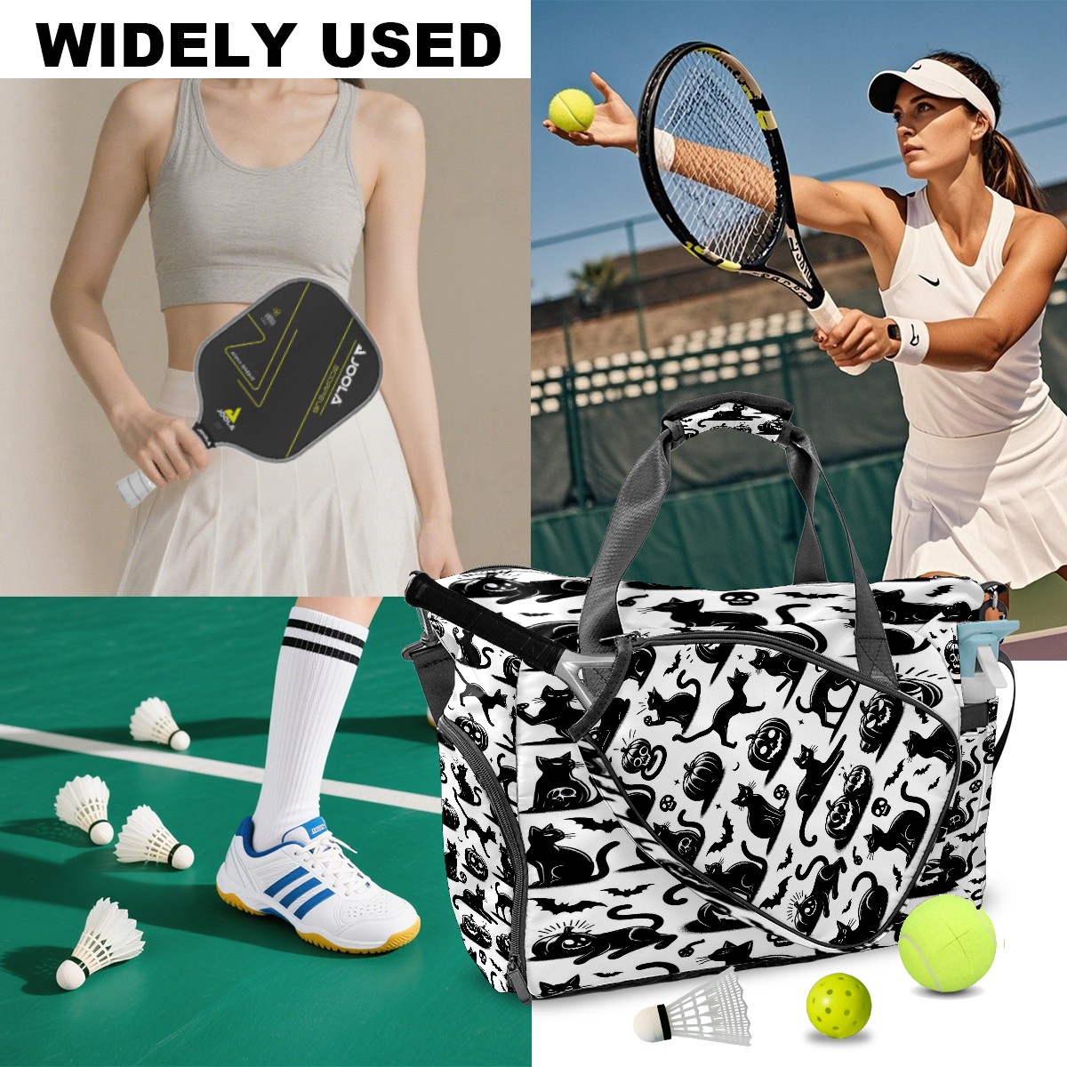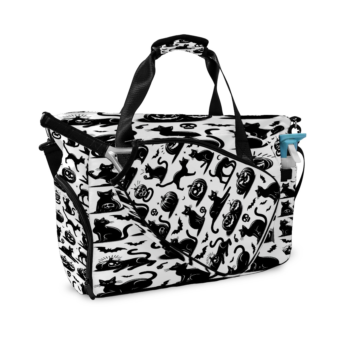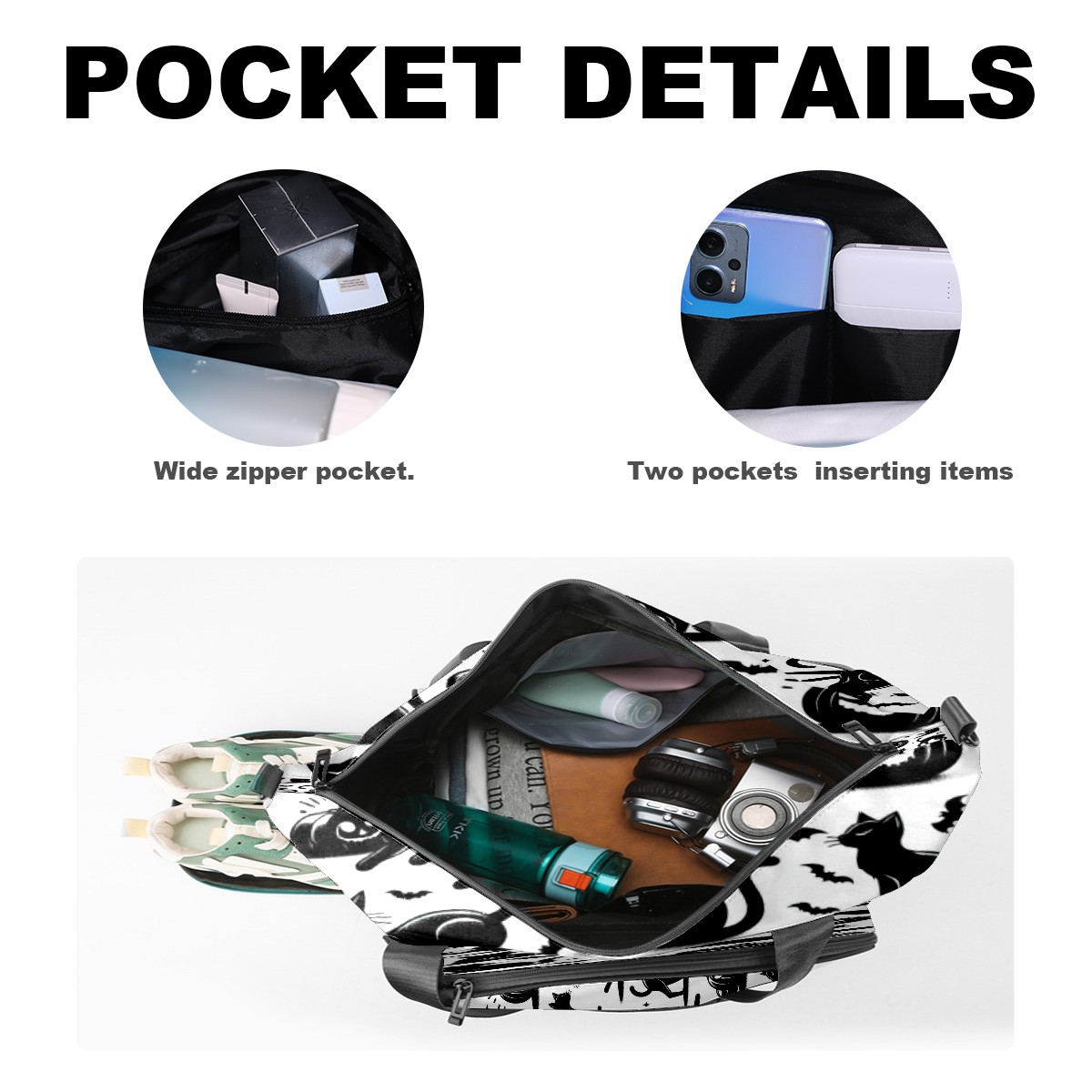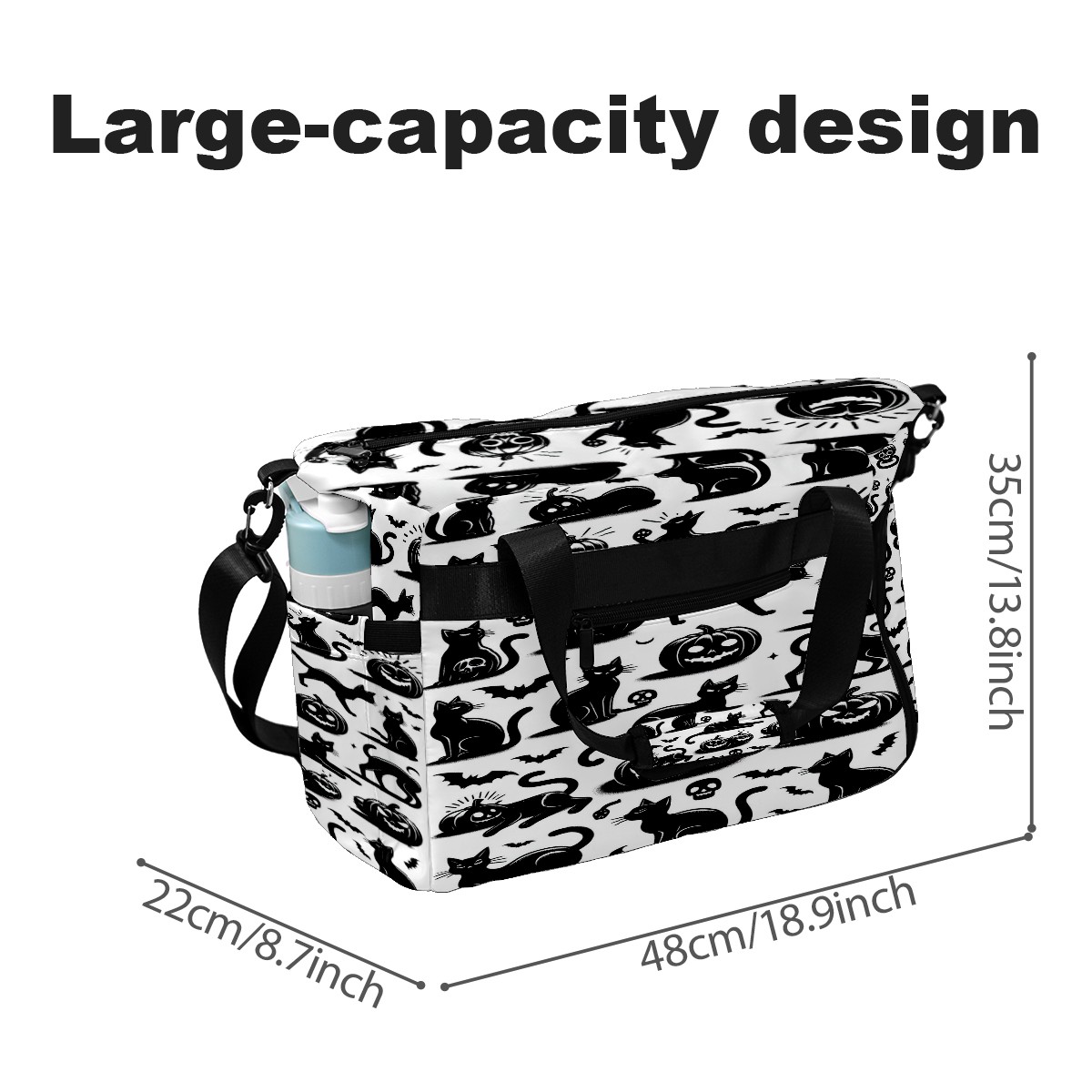 Large Gym Bag with Shoe Compartment, Water-Resistant Duffle Bag for Men and Women, Black Cats Silhouette Design Sports Tote for Workout Travel
